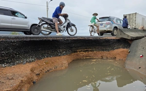 Quảng Ngãi: Đường sụp thành vực sâu, hàng trăm hộ dân bị chia cắt