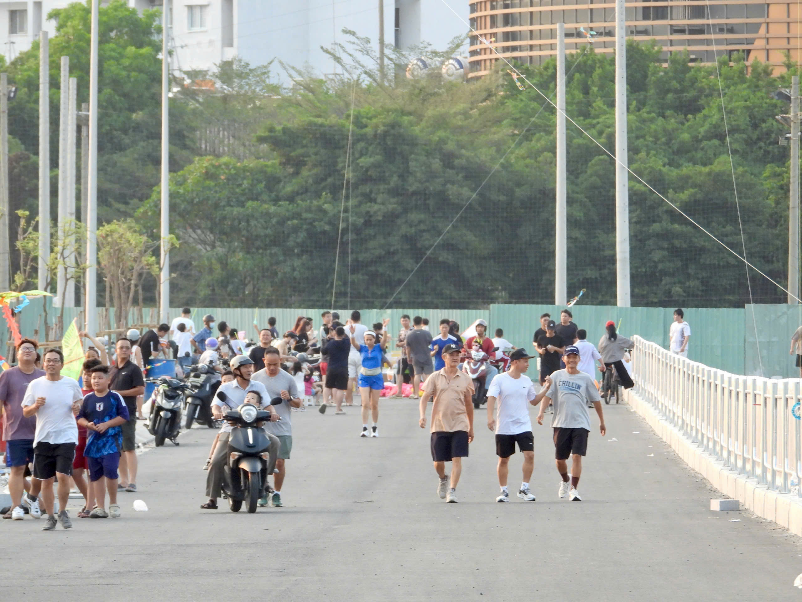 Những ngày qua, khu vực các tuyến đường mới hình thành thu hút đông người dân đến đi bộ, tập thể dục vào các buổi sáng, chiều. Nhiều gia đình đưa trẻ nhỏ đến thả diều, vui chơi trong không gian rộng rãi, thoáng đãng hiếm hoi giữa lòng thành phố.