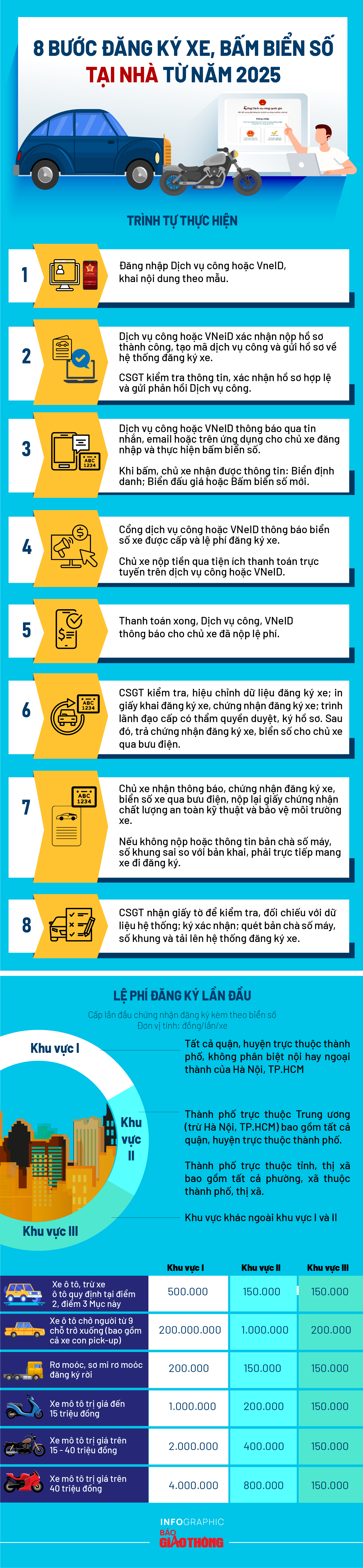 Theo Thông tư số 79/2024/TT-BCA có hiệu lực từ ngày 1/1/2025, công an các đơn vị địa phương sẽ tiếp nhận trực tuyến hồ sơ đăng ký xe lần đầu với cả xe ô tô và xe máy.