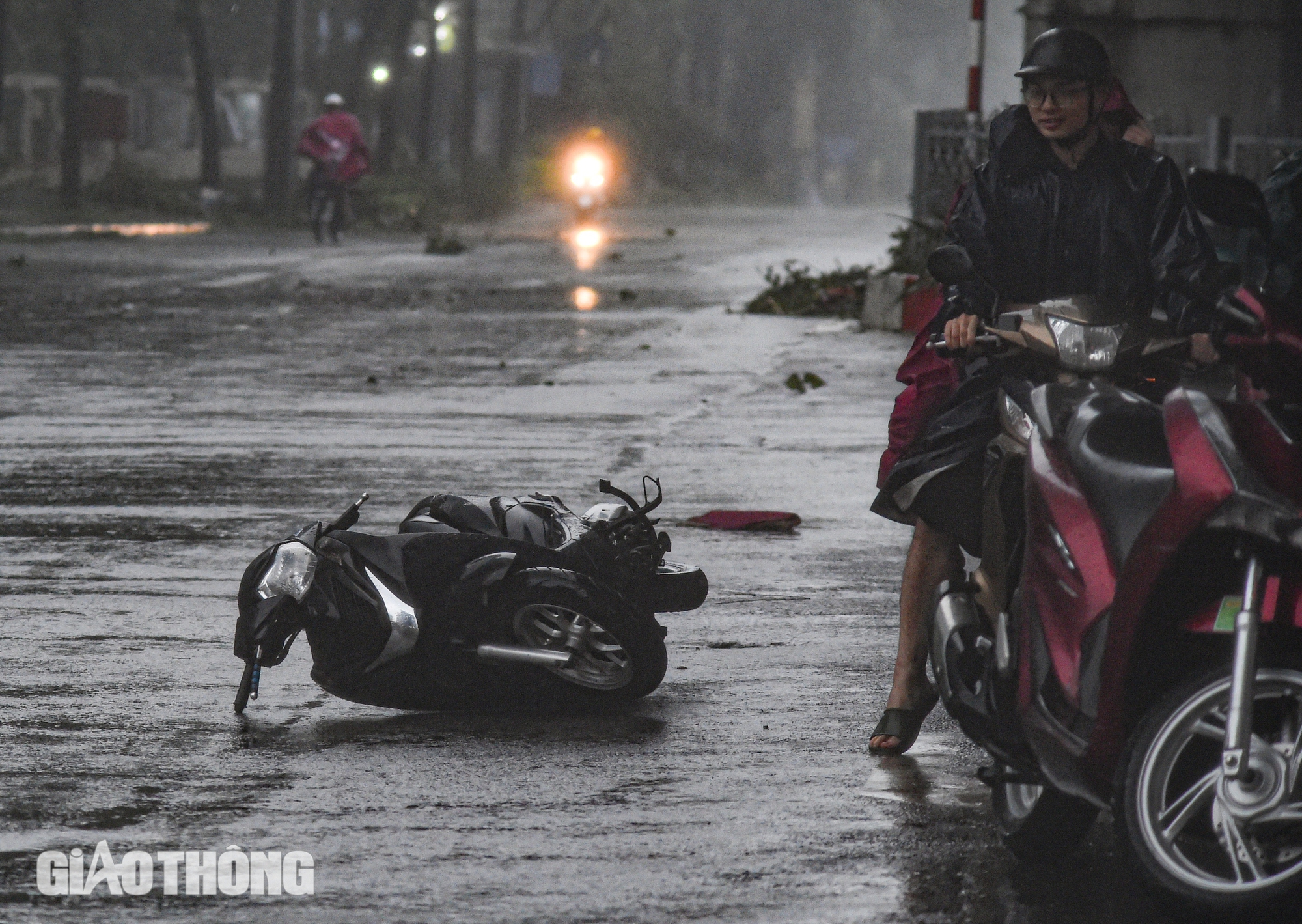 Theo ghi nhận của PV Báo Giao thông thời điểm 18h tối nay, sức mạnh của cơn bão càng thể hiện rõ với những cơn gió rít liên hồi khiến nhiều người đi xe máy trên đường bị quật ngã.