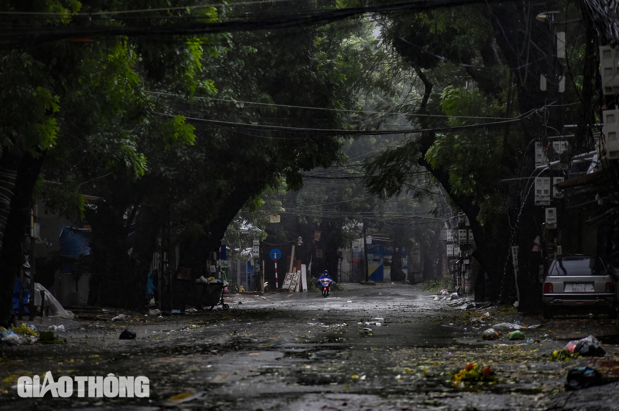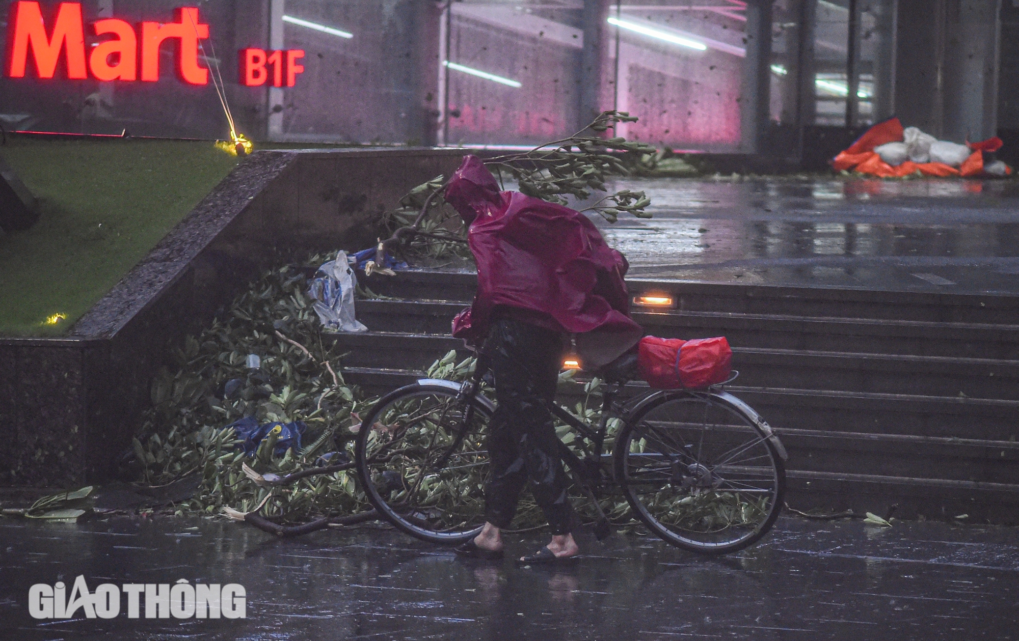 Cây xanh trên nhiều tuyến phố cũng bị cuốn nghiêng ngả, bật gốc.