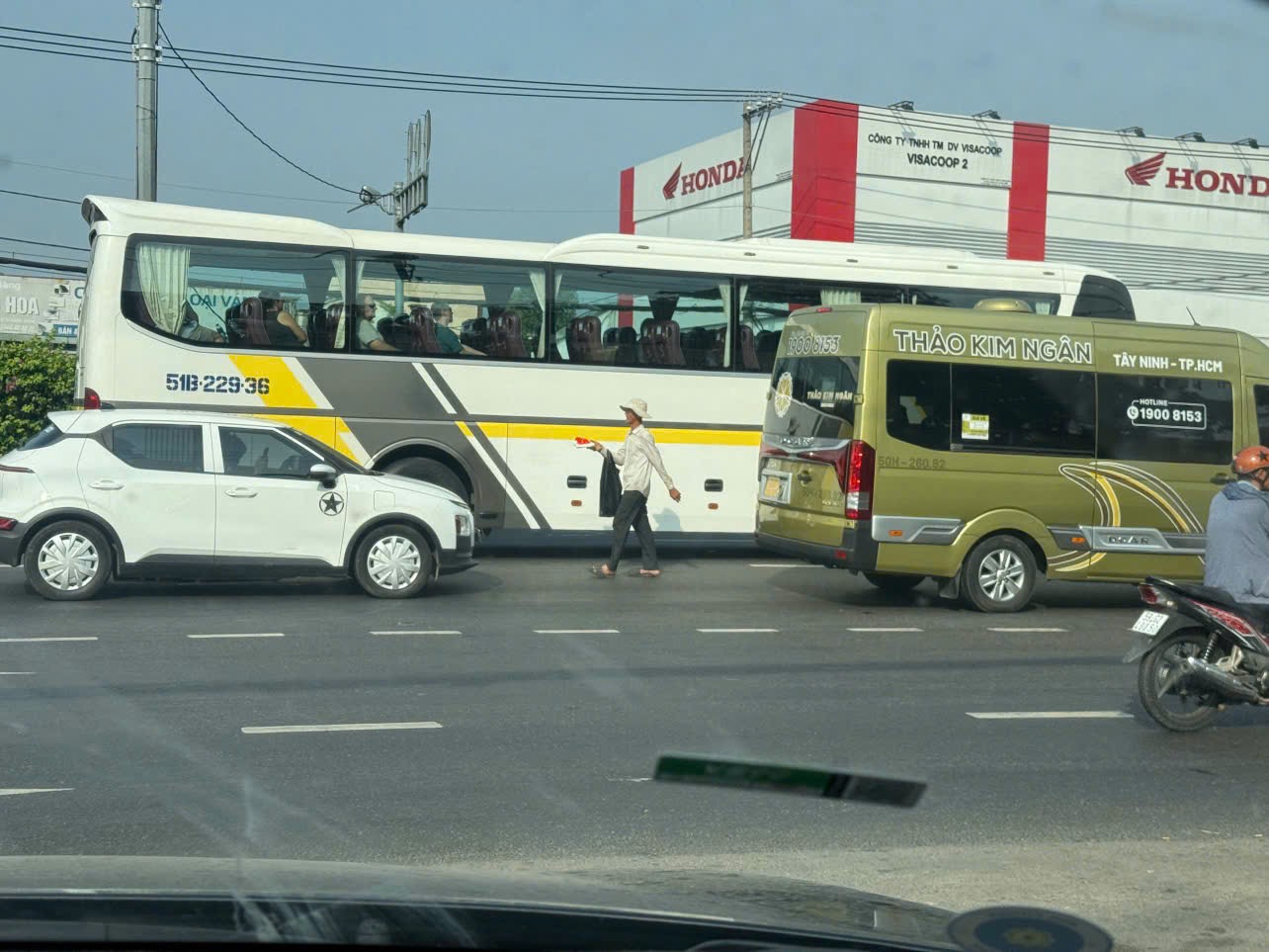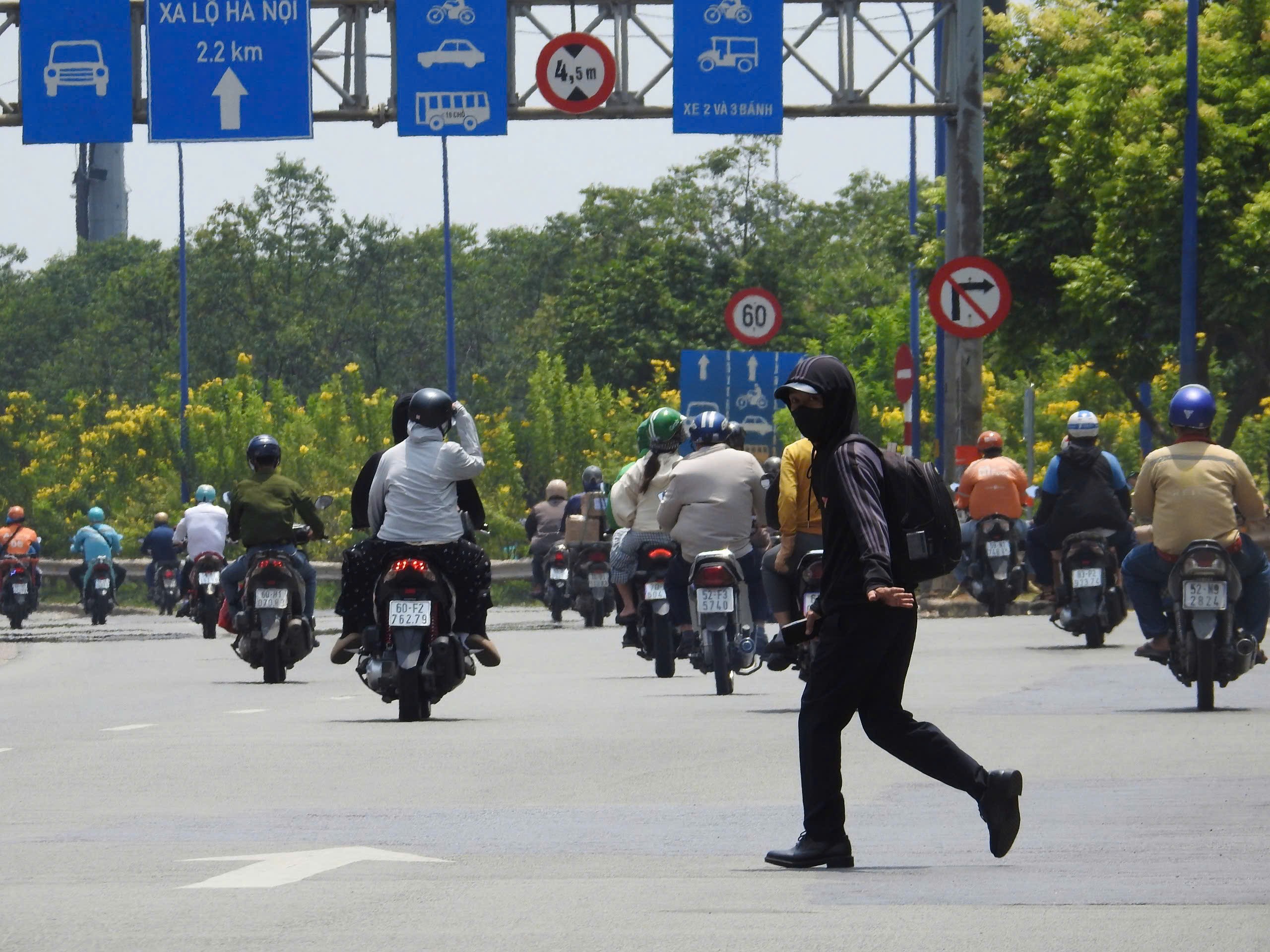 Anh Trần Văn Lực (quận 12) đưa bố đi khám bệnh chia sẻ, vì đi lên cầu vượt bất tiện với người già nên cứ đi qua đường cho nhanh. "Cứ đi chậm, giơ tay xin đường là được. Xe cộ qua khu vực này cũng đi chậm nên không sao", anh Lực nói.