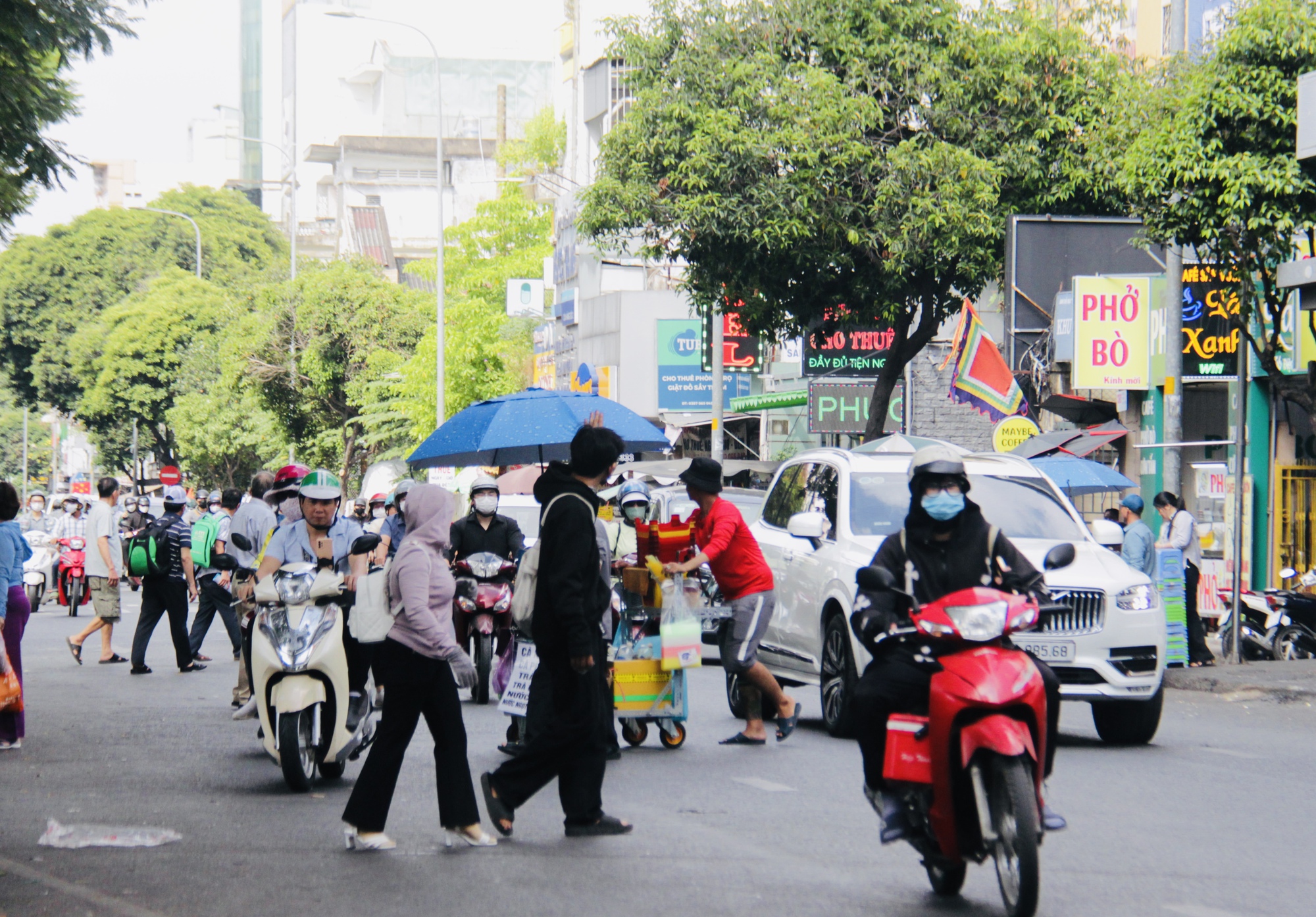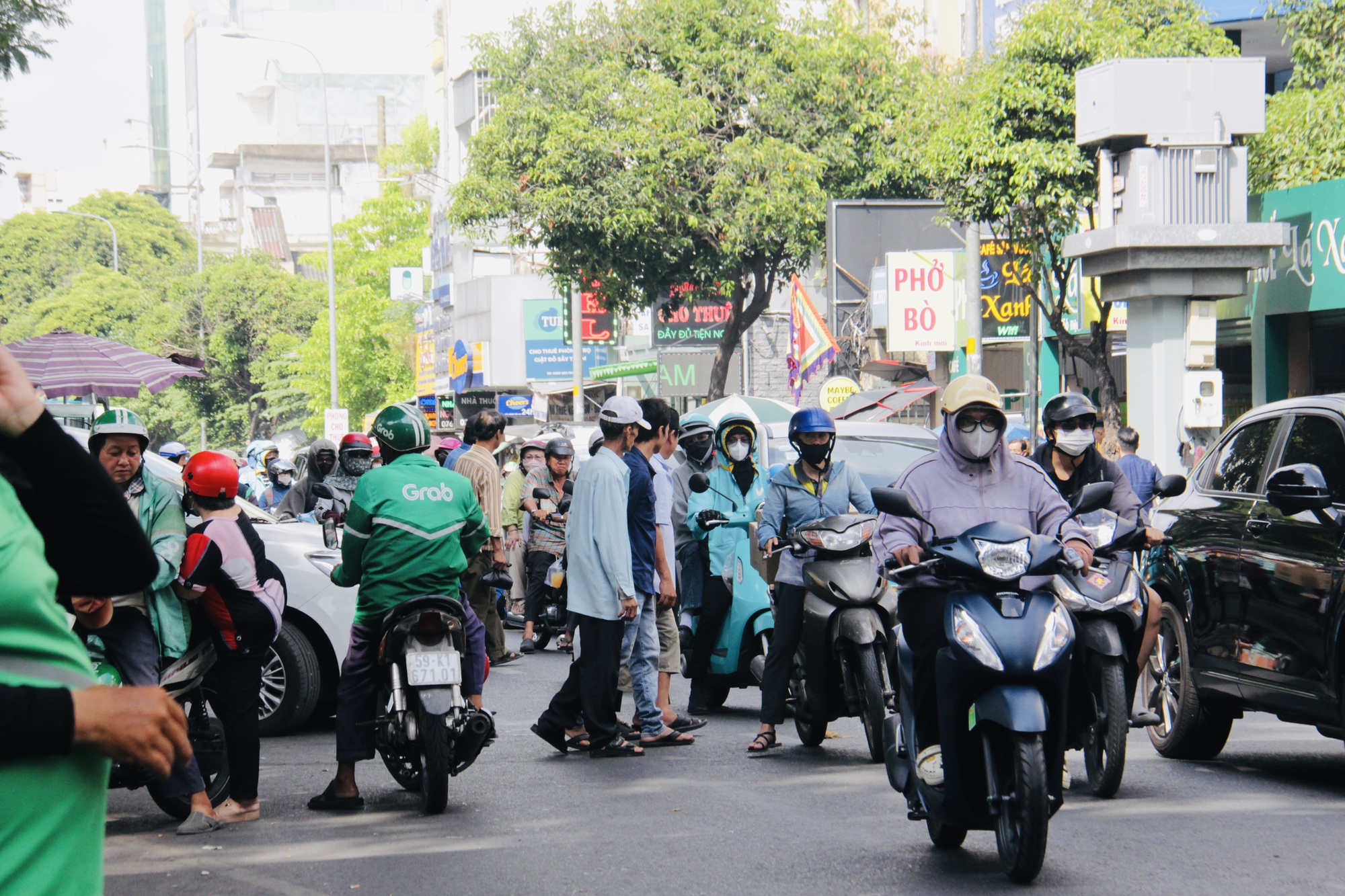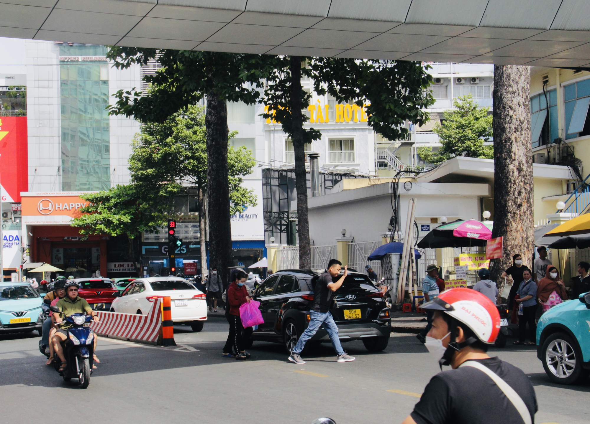 Tại khu vực trước cổng Bệnh viện Bình Dân (quận 3, TP.HCM), chỉ trong khoảng 15 phút, có hàng chục lượt người băng qua đường mặc kệ xe máy, ô tô qua lại đông đúc. Có thời điểm, cùng lúc tới 7–8 người len lỏi giữa dòng xe đông đúc để sang đường.