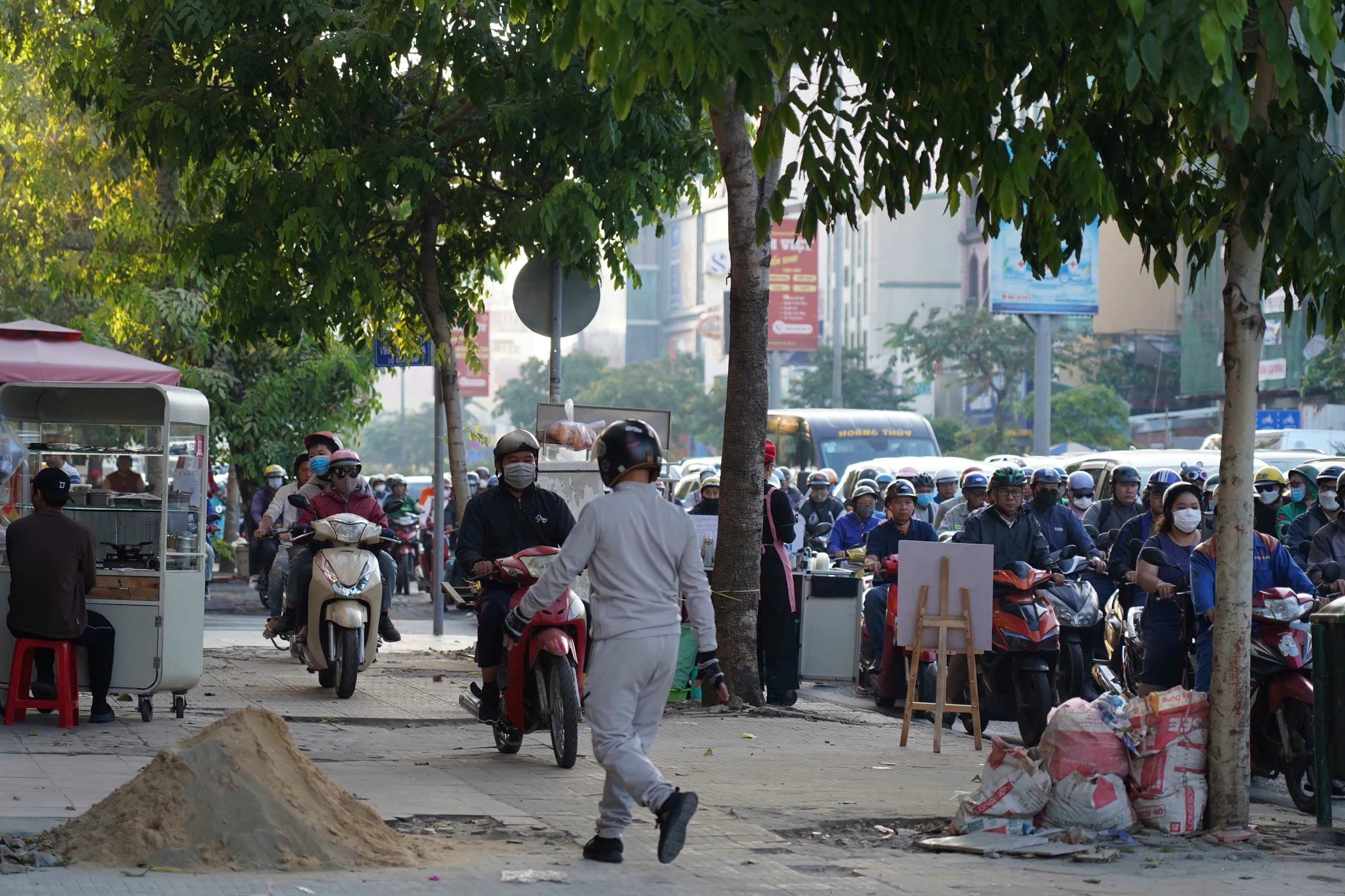 Kẹt xe quá lâu, người dân bất chấp bị phạt nặng, leo lên vỉa hè để di chuyển.