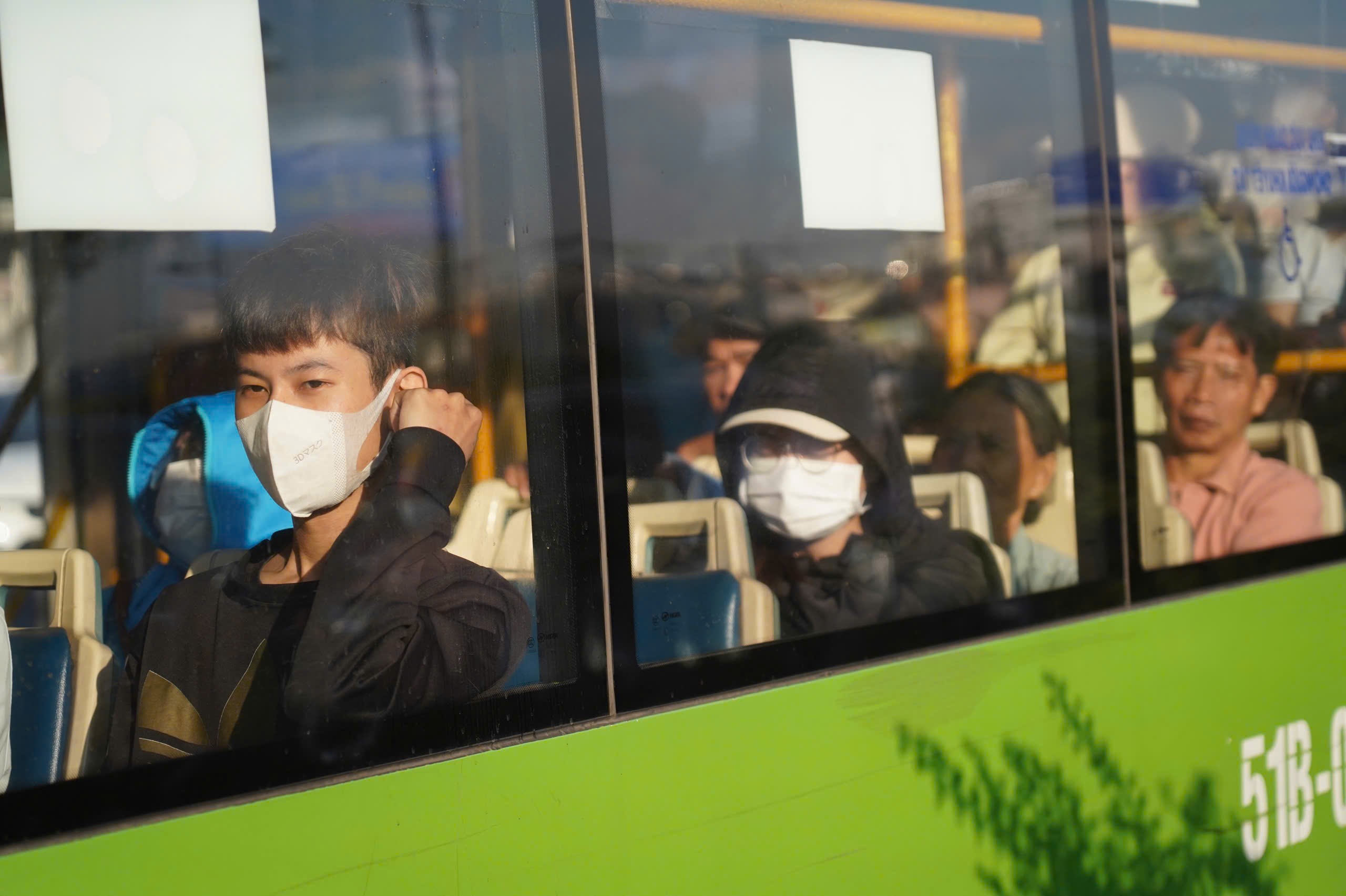 Những người ngồi trên xe buýt cũng sốt ruột vì phải chôn chân trên đường hàng chục phút.