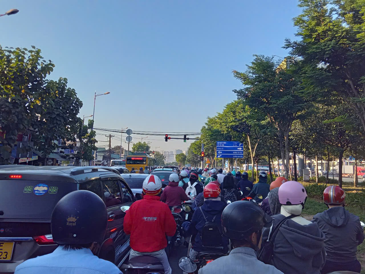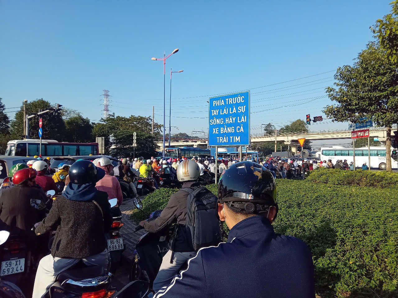 Tình trạng này cũng tương tự ở cửa ngõ phía đông TP.HCM, trong sáng nay, người dân di chuyển trên Xa lộ Hà Nội cũng bế tắc khi kẹt xe kéo dài.