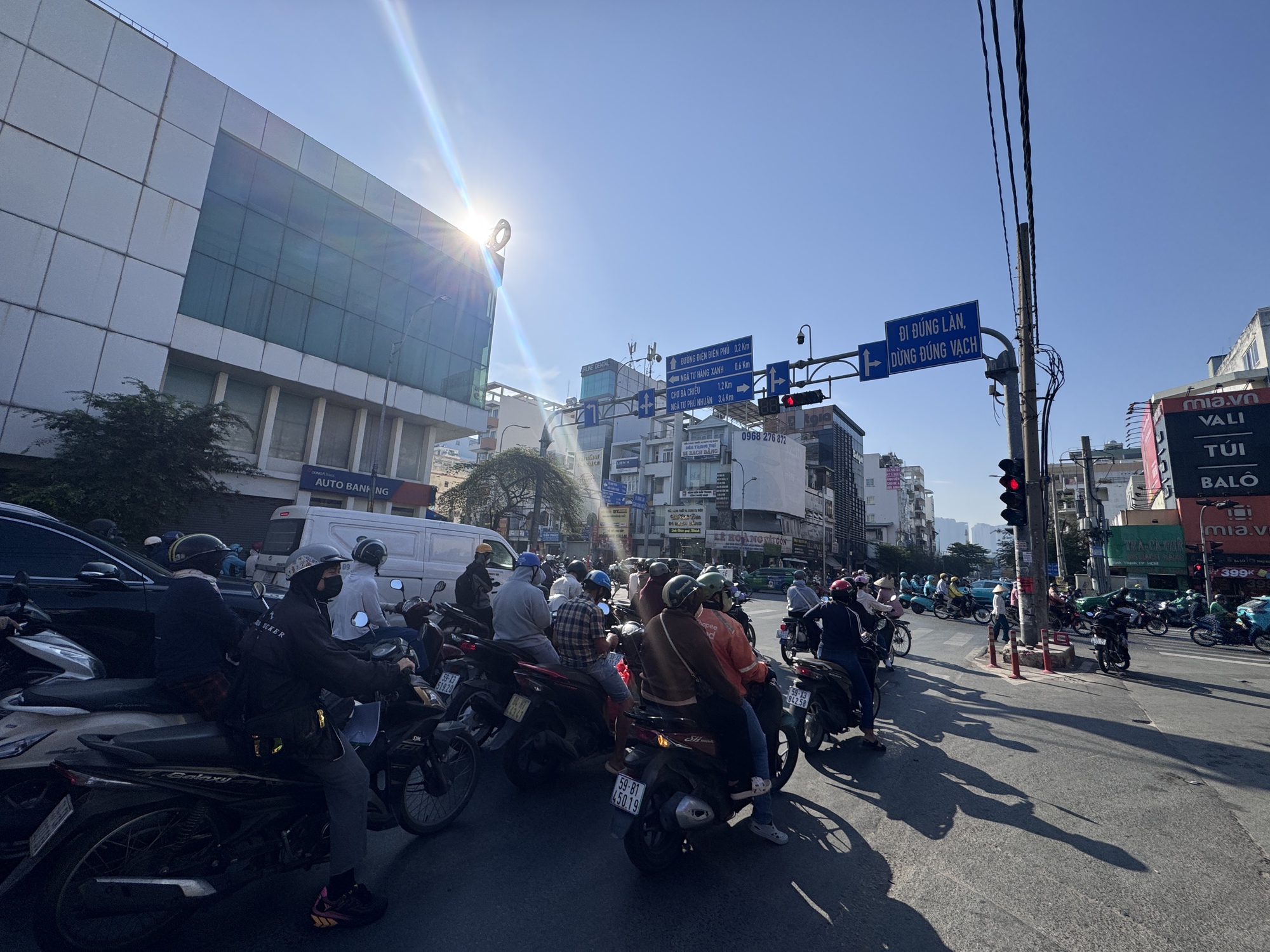 Phương tiện ùn ứ nhẹ ở khu vực trước cầu Điện Biên Phủ, hướng từ Hàng Xanh về vòng xoay Điện Biên Phủ.