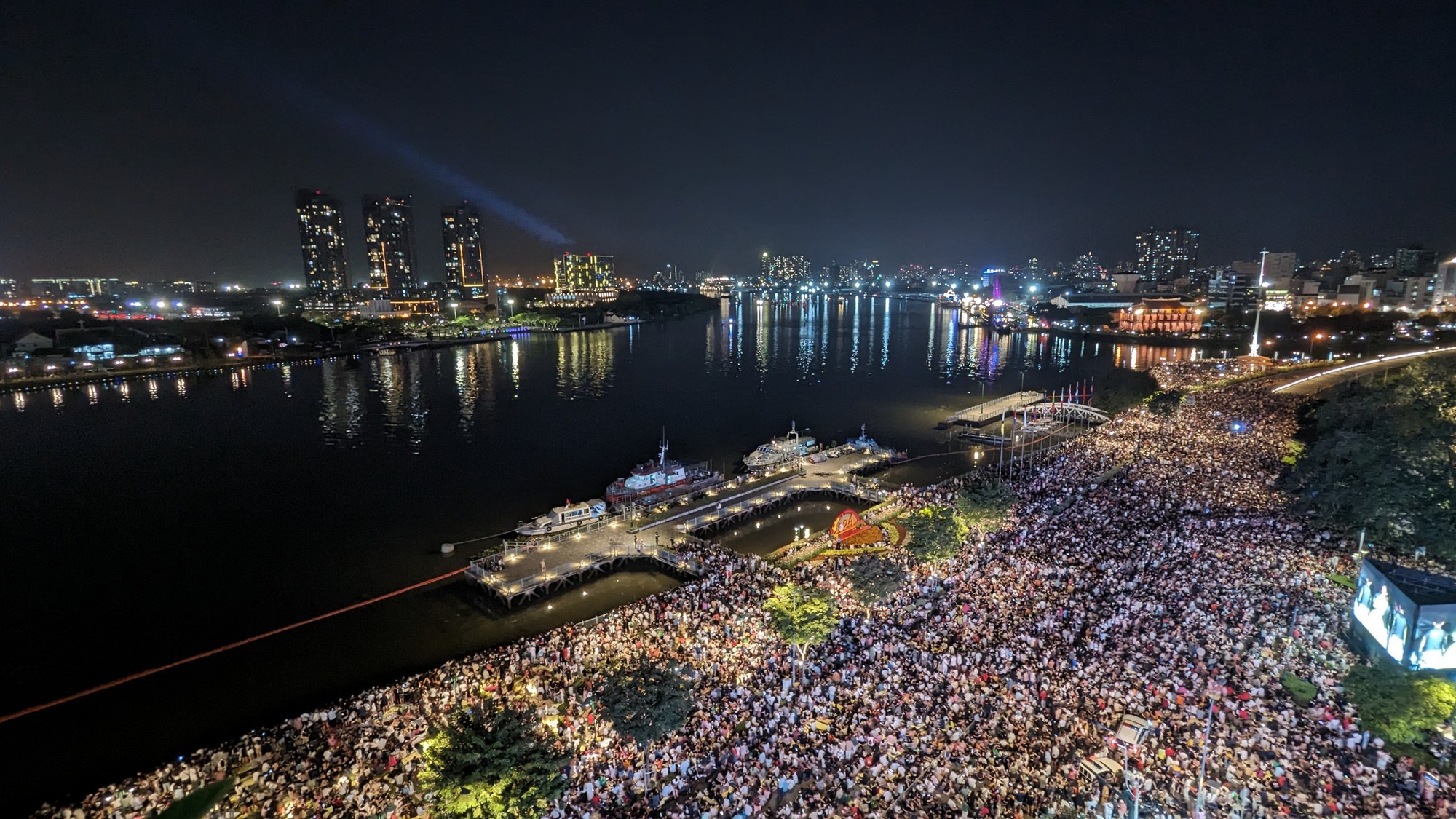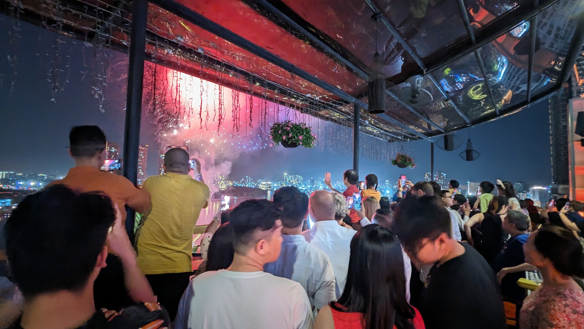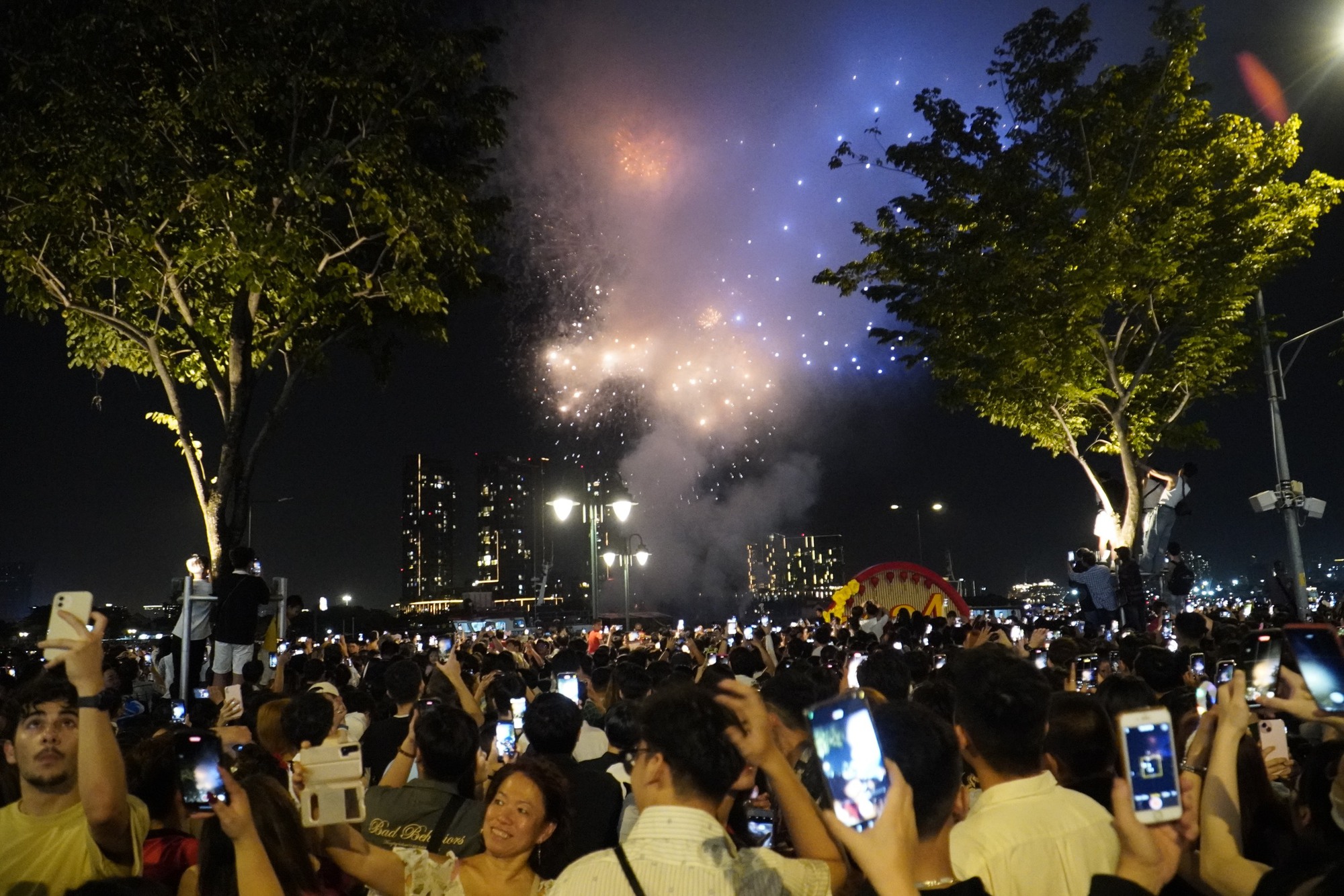 Hàng ngàn người dân TP.HCM đã cùng nhau có mặt tại Bến Bạch Đằng (quận 1) cũng như nhiều địa điểm vui chơi khác để chờ chiêm ngưỡng màn pháo hoa rực rỡ trên bầu trời.