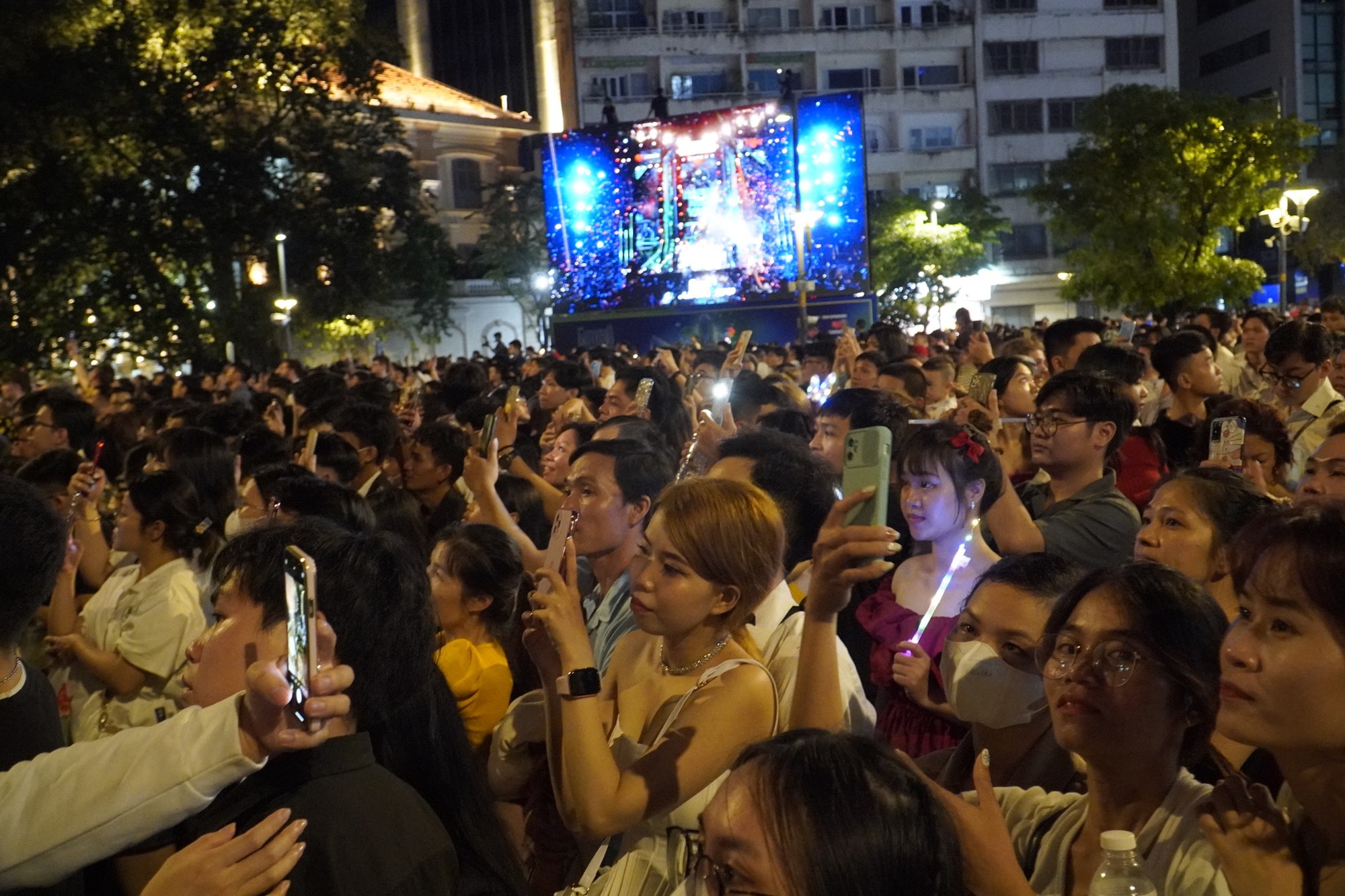 Trước đó, từ 16h ngày 31/12, phố đi bộ Nguyễn Huệ, quận 1 chật kín người. Đa số người đến đây chờ thời khắc đếm ngược, chuyển giao giữa năm cũ và năm mới.