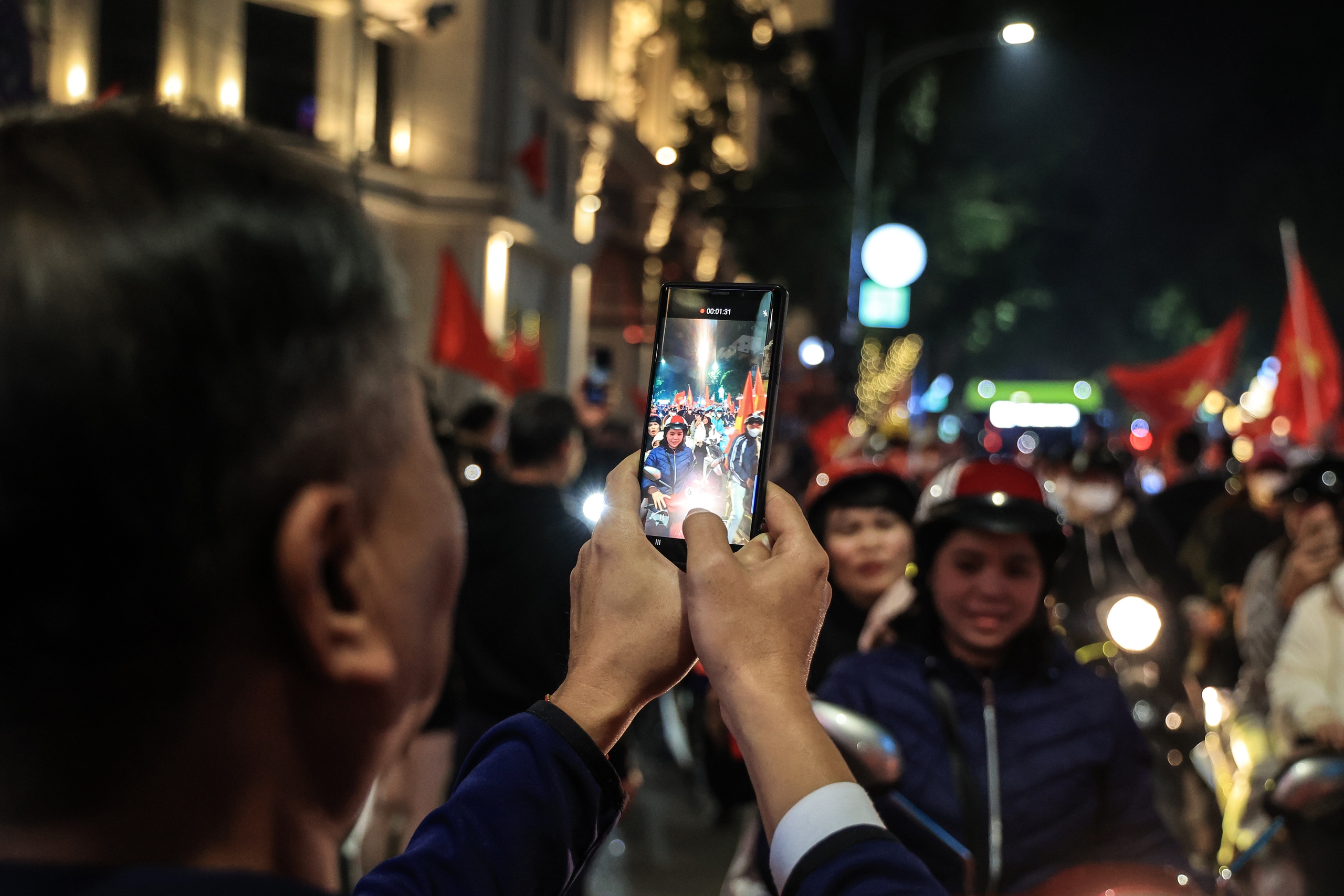 Theo ghi nhận của PV Báo Giao thông, ngay từ 22h30, lượng cổ động viên đổ về các tuyến phố trung tâm như Hai Bà Trưng, Hàng Bài, Lý Thường Kiệt (Hà Nội) mỗi lúc một đông.