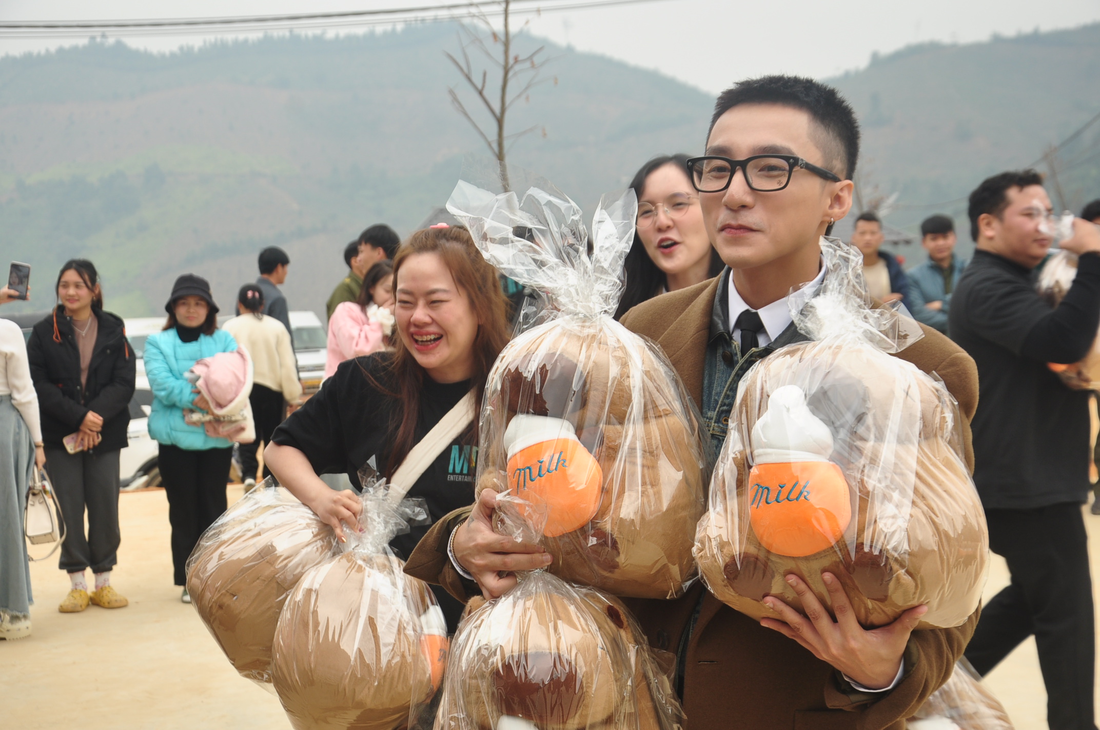 Ca sĩ Sơn Tùng M-TP tặng quà tại Làng Nủ.