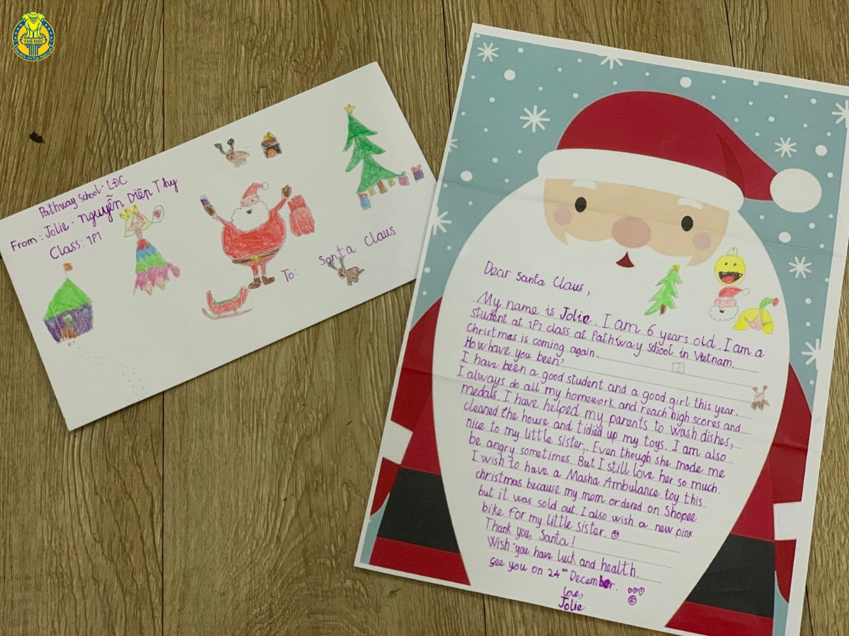 Cuối cùng, dùng bút màu đỏ để viết lời chúc Giáng sinh ở phía dưới của thiệp.