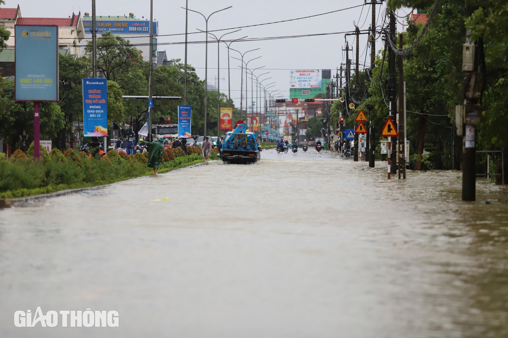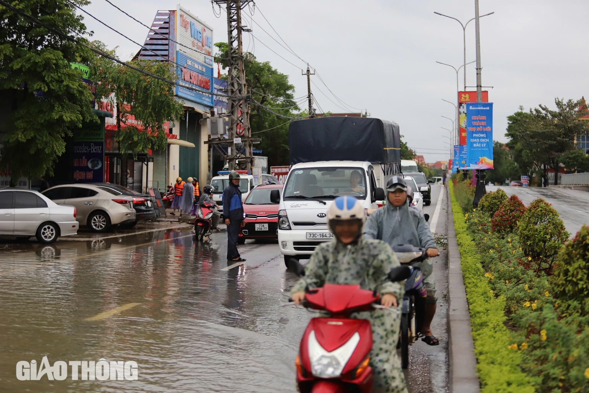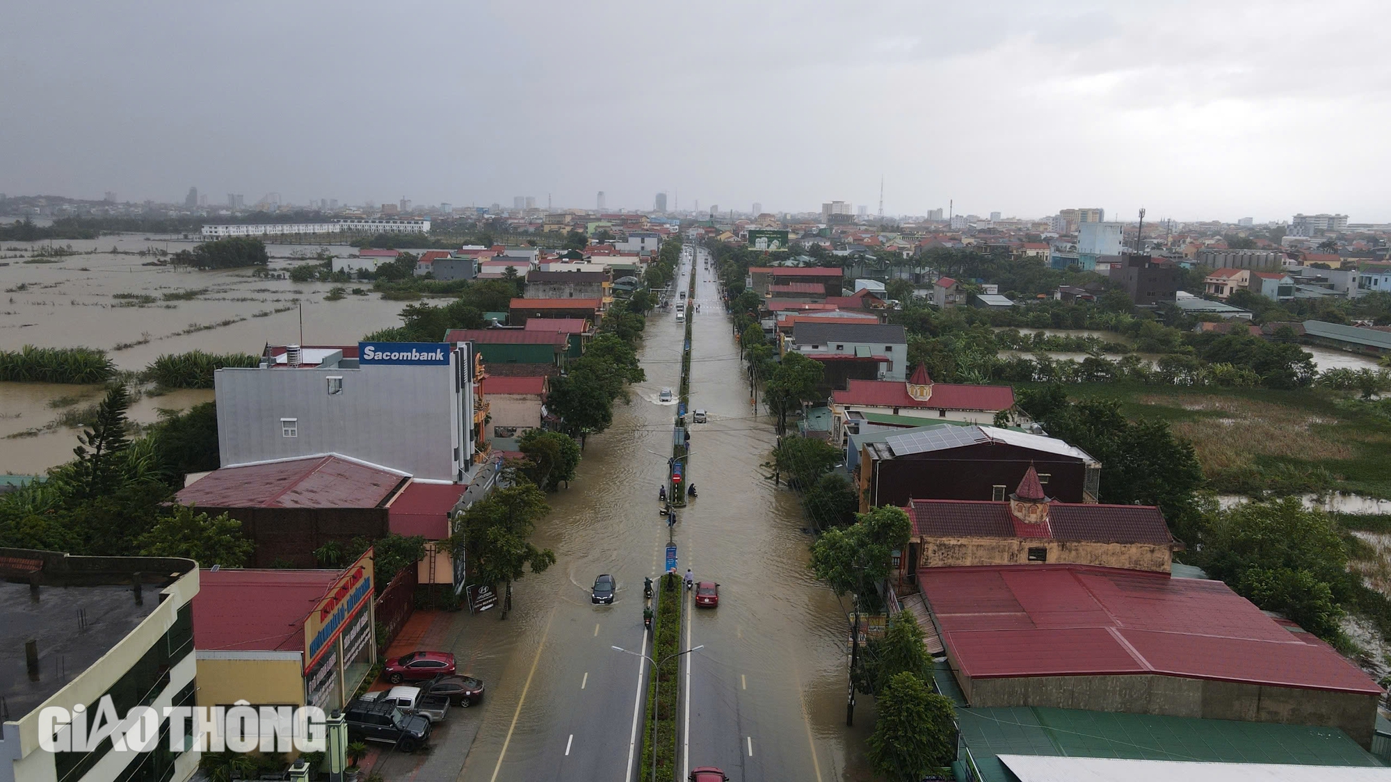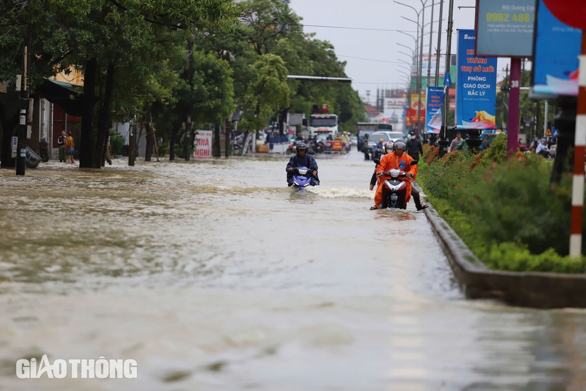 Tại TP Đồng Hới, ở phường Bắc Lý còn một đoạn ngập. Địa bàn phường Phú Hải, ngập từ cầu Nhật Lệ 2 đến cổng chào thành phố, xe gầm cao có thể di chuyển.