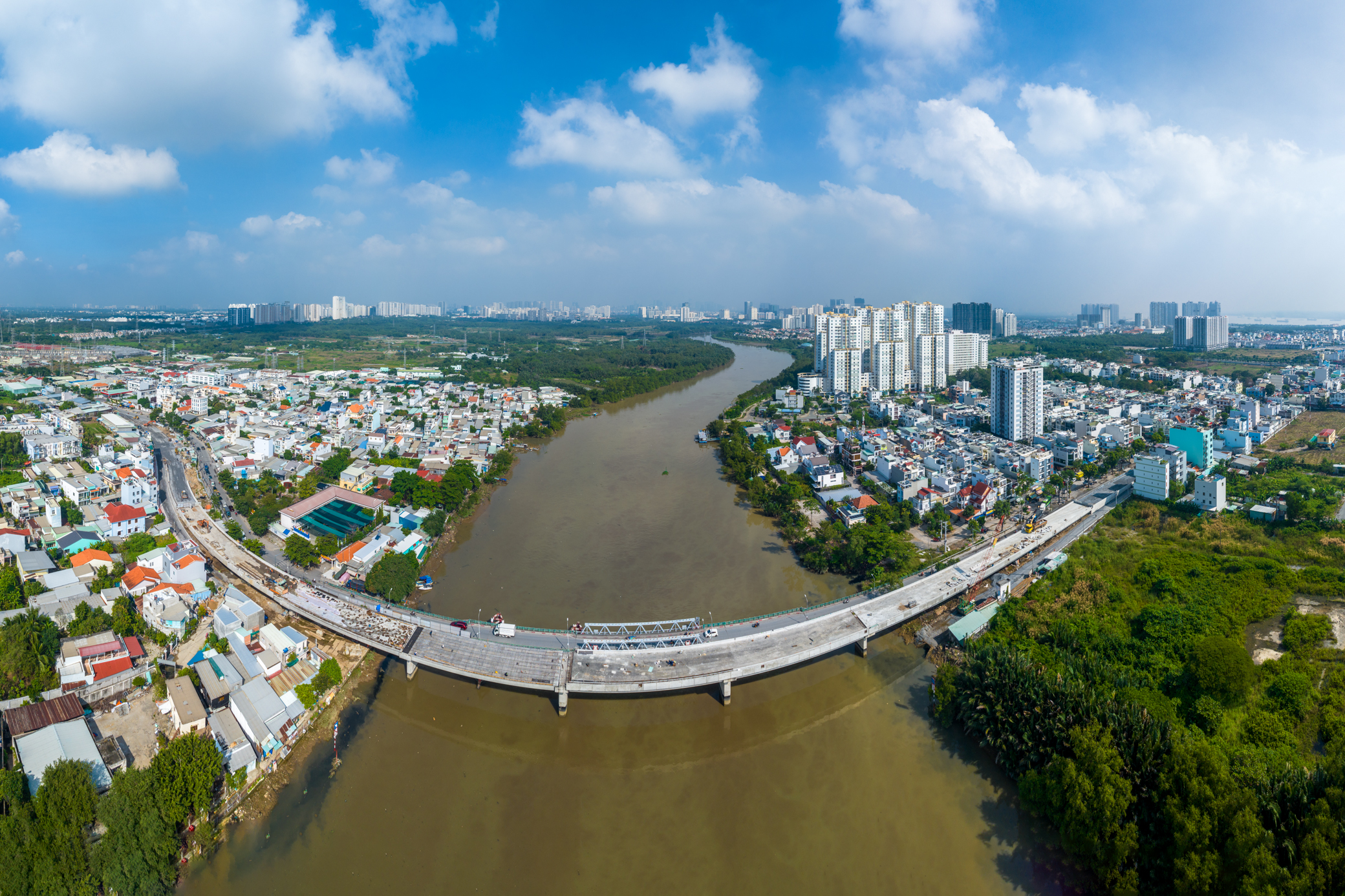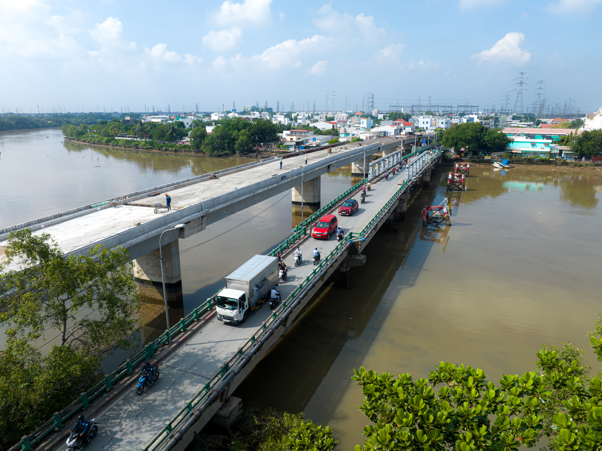 Đối với hệ thống đường dẫn, 97% công việc lắp đặt cống thoát nước đã được hoàn thành. Nhà thầu cũng đã xử lý xong nền đường và tường chắn ở phía huyện Nhà Bè, đồng thời tiếp tục thi công phần còn lại ở quận 7