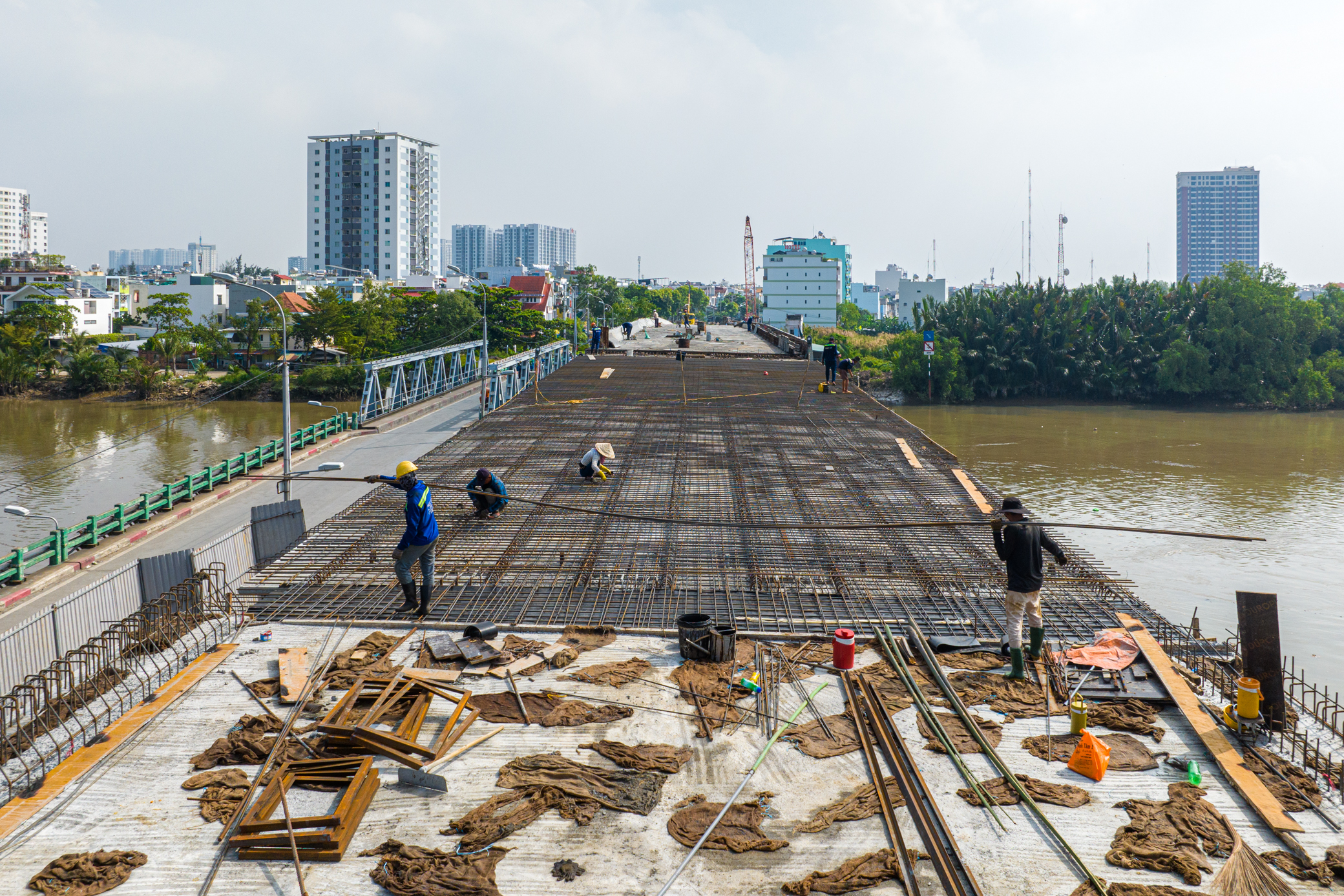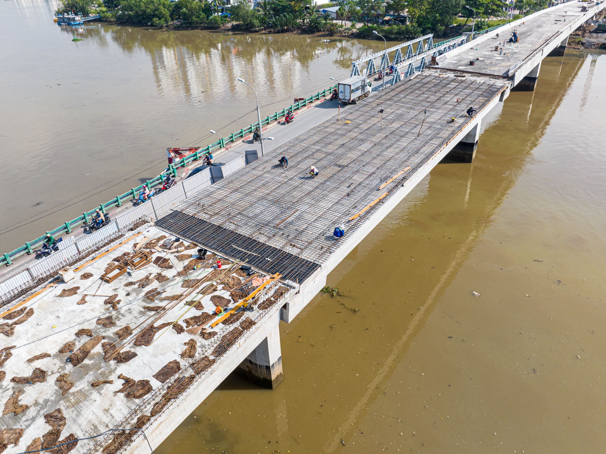 Với mặt bằng đã hoàn tất, tiến độ xây dựng cầu được đẩy mạnh. Hiện tại, dự án đã hoàn thành các mố trụ và lắp dầm. Nhà thầu đang tiếp tục thi công phần bản mặt cầu.