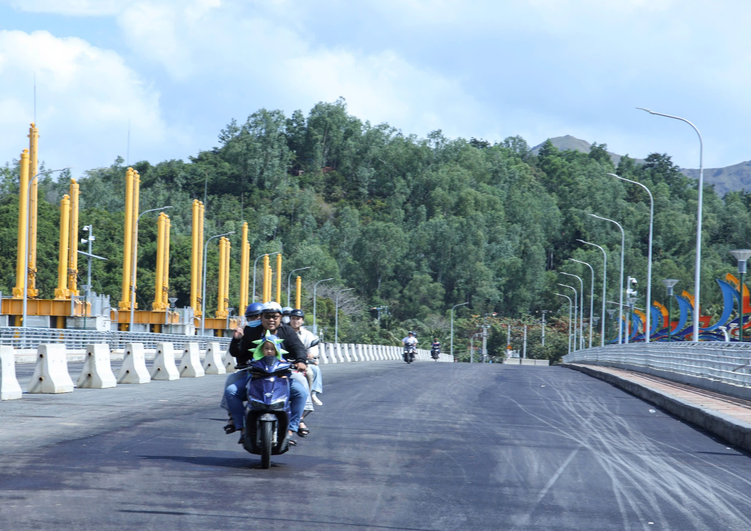 Cầu vượt sông dài 400m, gồm 9 nhịp, rộng 26m, thiết kế hai chiều xe chạy và lề đi bộ hai bên, mỗi bên rộng 1,75m. Hiện, phần thượng tầng, đường dẫn hai đầu cầu, hạ tầng kỹ thuật và hệ thống tự động giám sát, điều khiển, thu thập dữ liệu đang được hoàn thiện, đạt khoảng 97%.