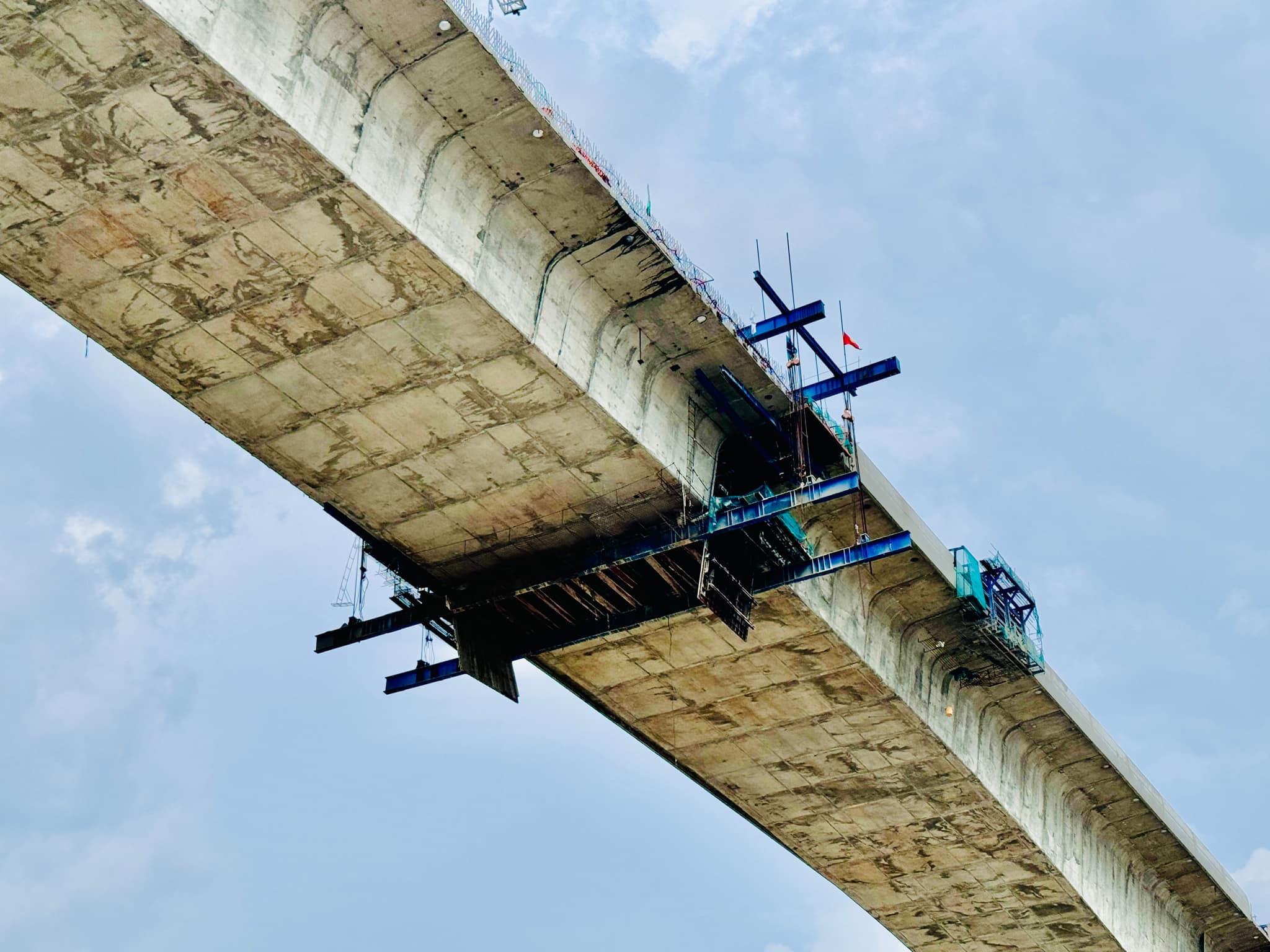 Trong hôm nay, các đốt sẽ được đổ bê tông, nối liền với nhau (Trong ảnh, đốt nối hai nhịp chính được hợp long sau một năm thi công).