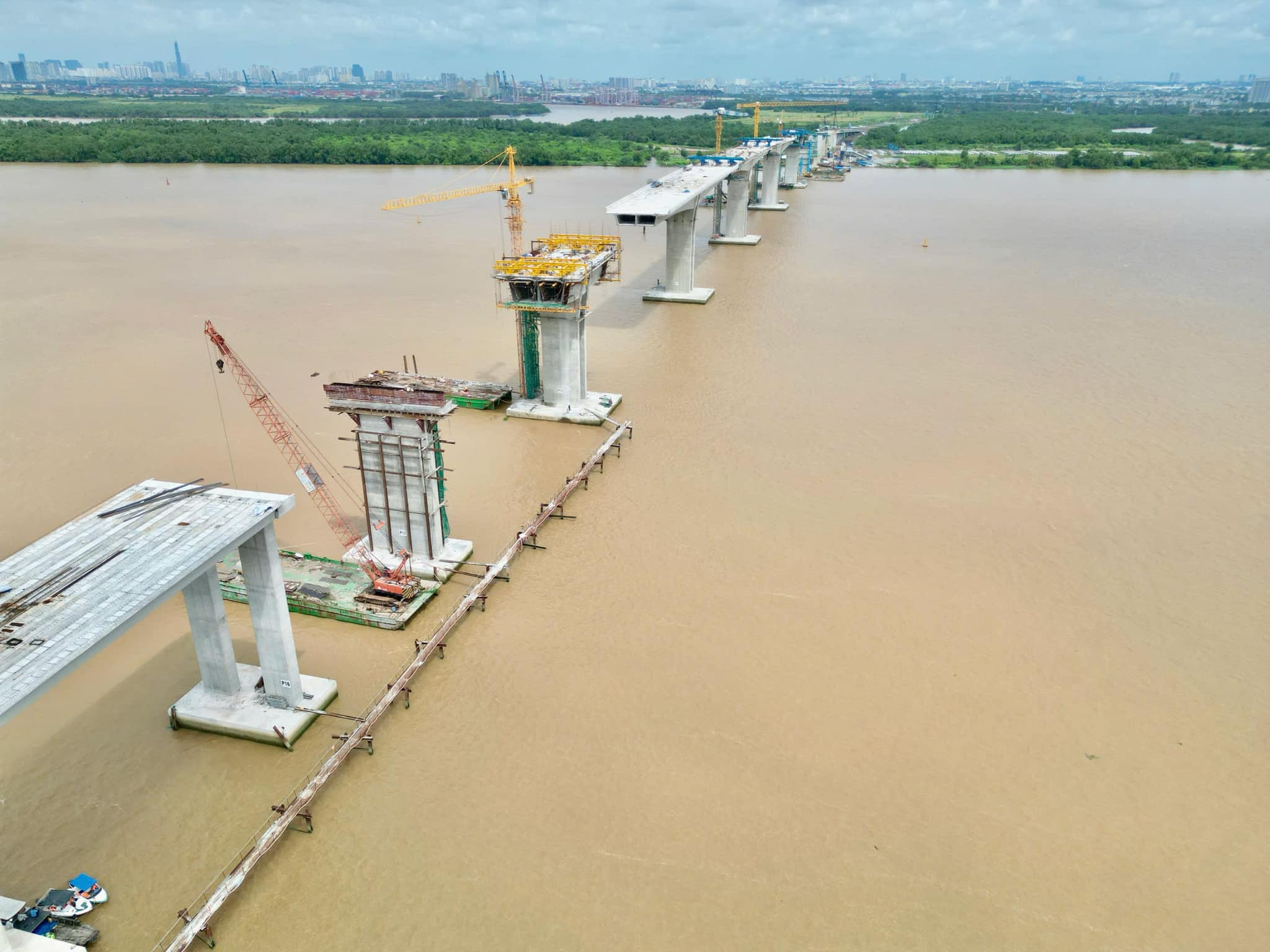 Chiều 12/9, hai nhịp cầu chính đầu tiên của cầu Nhơn Trạch chính thức được hợp long, nối các trụ P19 - P20 và P20 - P21 lại với nhau. Đây là cây cầu lớn nhất của dự án thành phần 1A thuộc dự án đầu tư xây dựng đoạn Tân Vạn - Nhơn Trạch giai đoạn 1, đường Vành đai 3 TP.HCM.