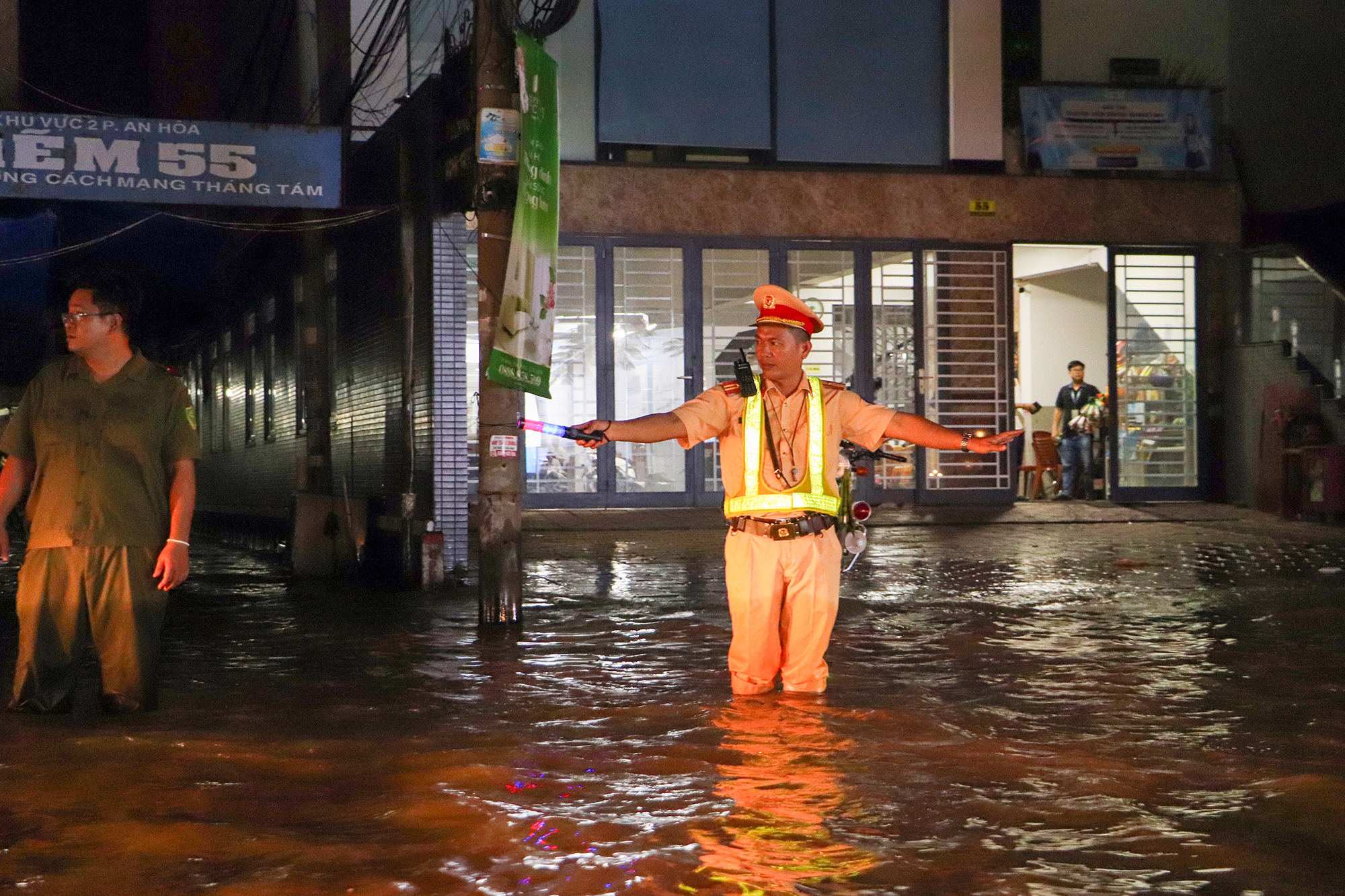 Trước tình hình đó, Đội CSGT số 1 (Phòng CSGT Công an TP Cần Thơ) đã triển khai lực lượng lội nước phân luồng, hướng dẫn giao thông, cảnh báo các điểm ngập sâu và hỗ trợ người dân đi theo tuyến đường an toàn hơn.