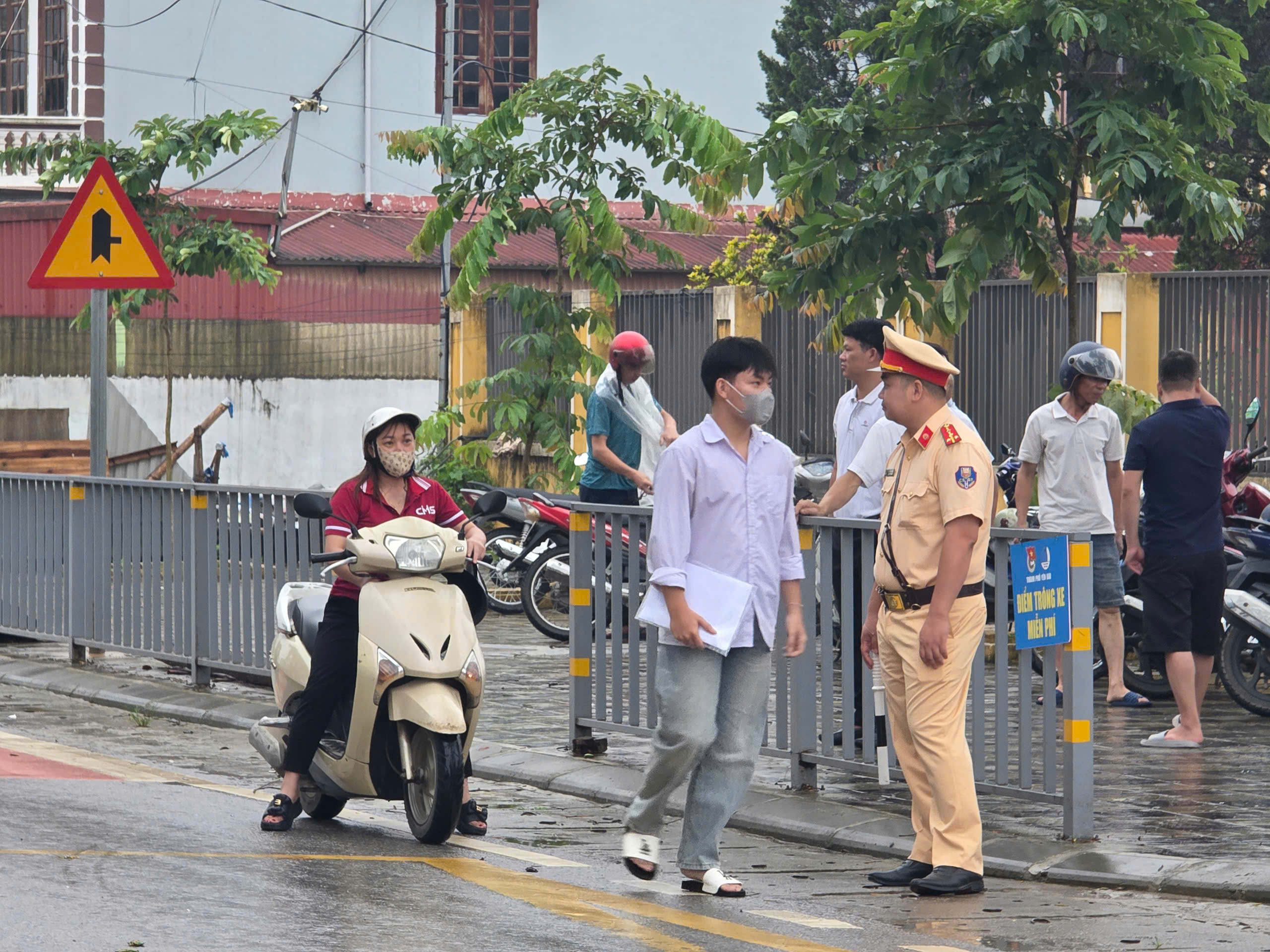 Tại Nghệ An, từ 6h sáng, cổng các trường THPT Huỳnh Thúc Kháng, chuyên Phan Bội Châu (ở TP Vinh), rất đông cán bộ, chiến sĩ Hội Phụ nữ Phòng CSGT và Đoàn Thanh niên Công an tỉnh Nghệ An đã có mặt. Các cán bộ, chiến sĩ đã tập trung điều tiết, phân luồng giao thông trước cổng trường để giao thông luôn thông suốt, an toàn.