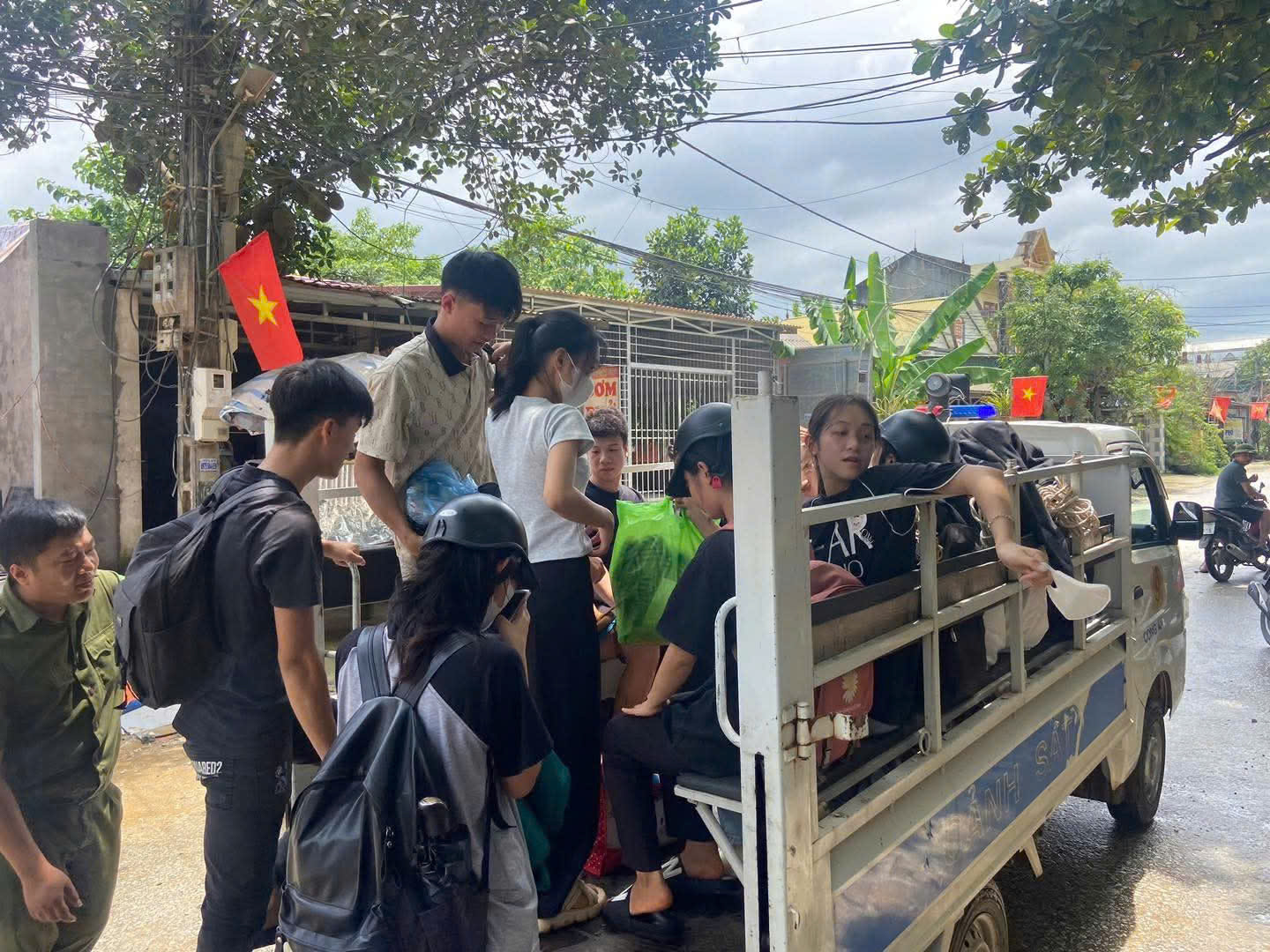 Để hỗ trợ các thí sinh, đoàn thanh niên và lực lượng Công an xã Mường Lai, huyện Lục Yên huy động nhân lực cõng các thí sinh quãng đường hơn 200m. Sau đó, dùng xe chuyên dụng chở các em qua khu vực ngập úng để đảm bảo an toàn đến các điểm thi ngày 25/6.