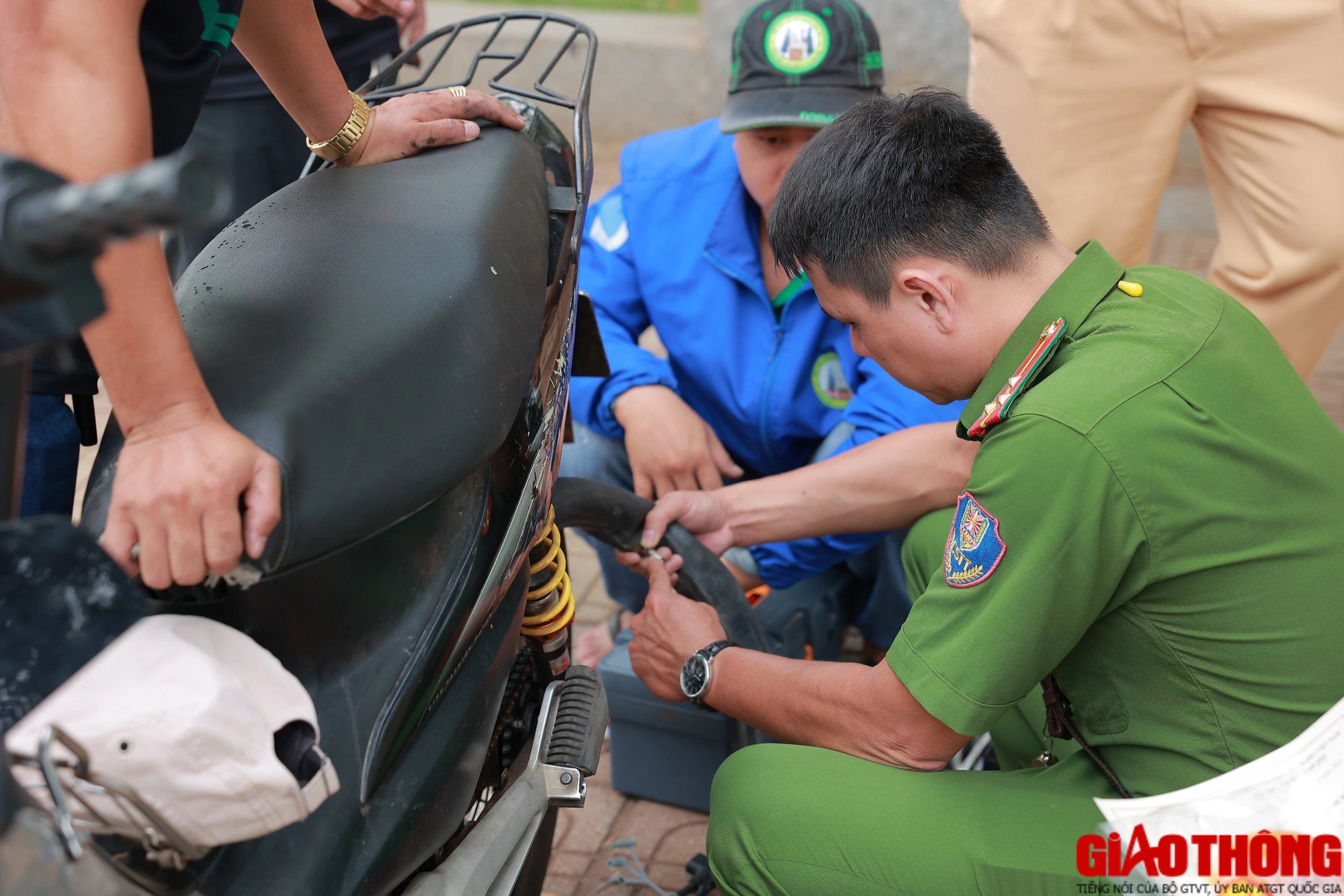CSGT còn hỗ trợ bà con vá xe trên đường khi gặp sự cố.
