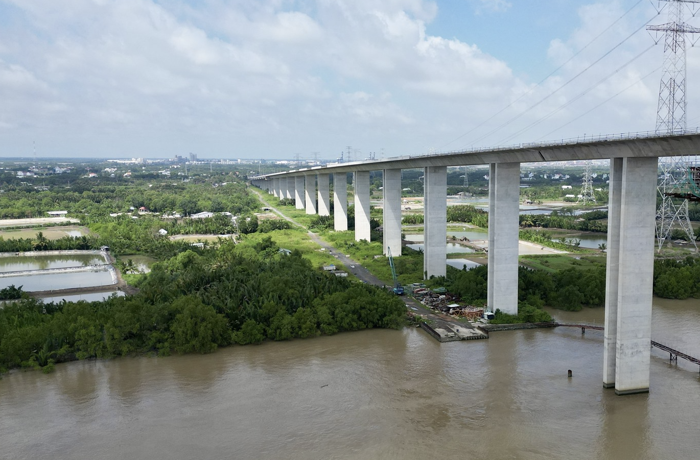 Trong khi đó, gói thầu J3 - cầu Phước Khánh bắc qua sông Lòng Tàu nối TP.HCM và Đồng Nai đã hoàn thành cầu dẫn, trụ tháp với khoảng 80% khối lượng công việc. Cũng dừng thi công hơn 3 năm, đến nay gói thầu này đang mời thầu lại. Ảnh: H.Chánh.