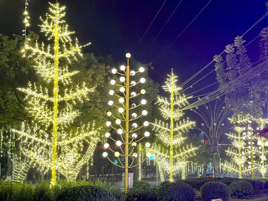Hệ thống đèn lead cũng được bố trí hai bên tuyến đường trung tâm thị trấn Yên Bình.