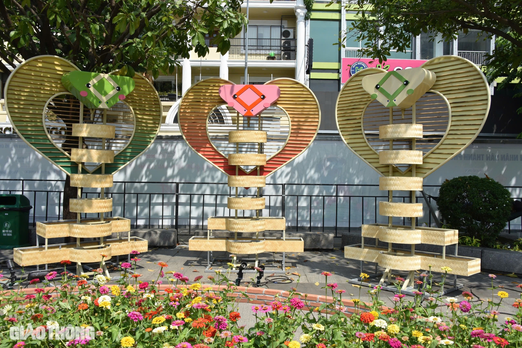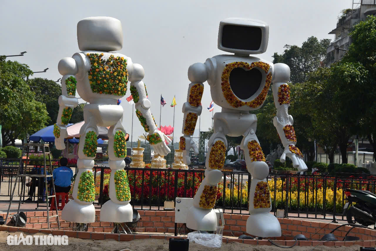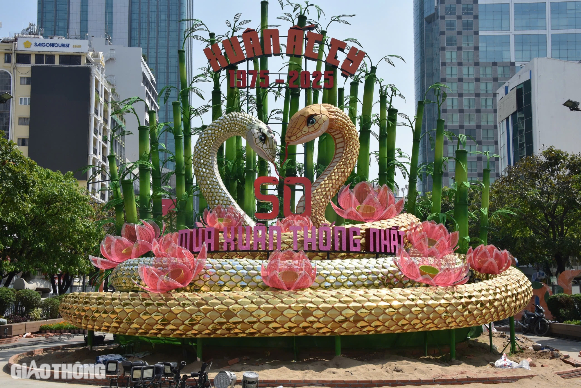 Những ngày cận Tết, công tác chuẩn bị, trang trí tại đường hoa Nguyễn Huệ rất gấp rút, khẩn trương. Cặp đôi linh vật của đường hoa Nguyễn Huệ tết Ất Tỵ 2025 có tên Kim Tỵ và Ngân Tỵ đã được đặt trước bùng binh Cây Liễu (giao lộ Nguyễn Huệ - Lê Lợi).