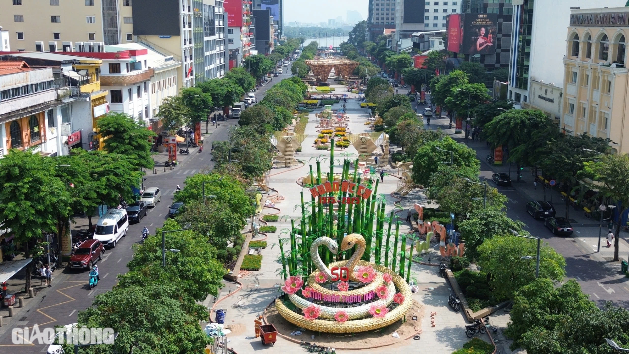 Là điểm nhấn của TP.HCM trong dịp chào đón năm mới, đường hoa Nguyễn Huệ tết Ất Tỵ 2025 có chủ đề “Non sông gấm hoa, vui xuân thái hòa” được bài trí công phu, bài bản với ba phân đoạn “Kết đoàn”, “Chuyển mình” và “Phát triển”, thể hiện những chặng đường lịch sử của dân tộc Việt Nam vượt qua mọi gian nan, hy sinh, mất mát, vẫn hát vang khúc hát kết đoàn giành độc lập - thống nhất đất nước - chuyển mình phát triển bền vững.