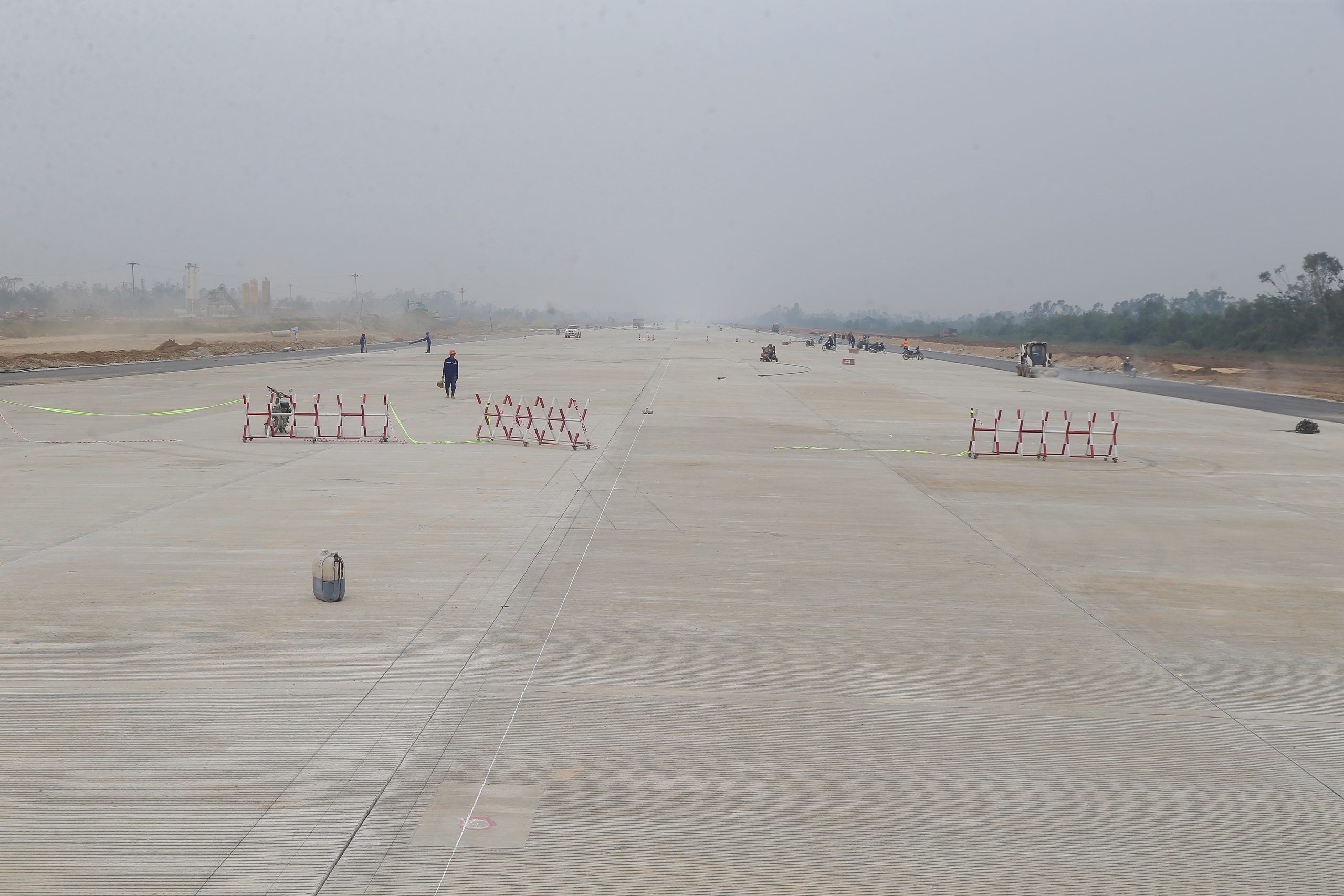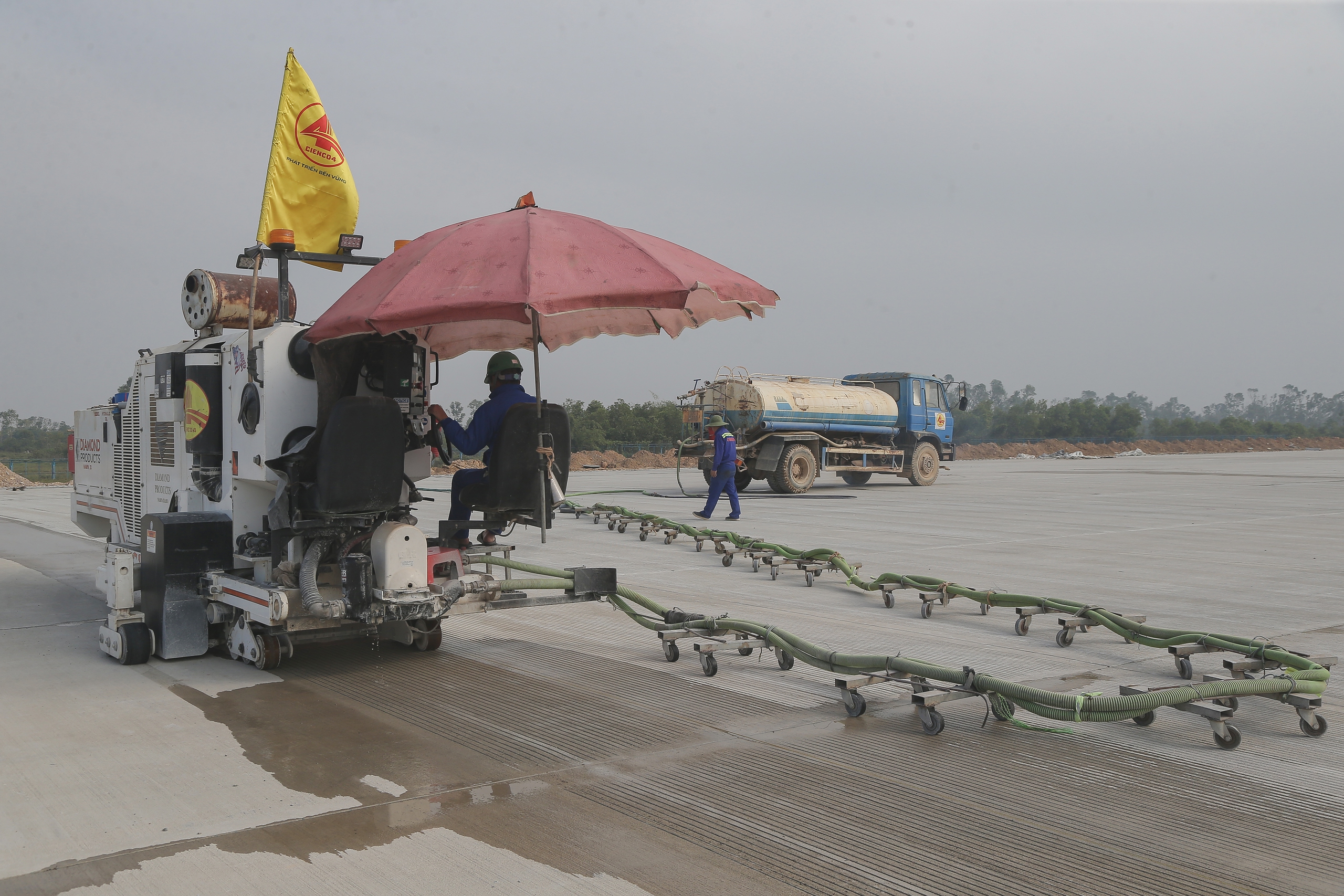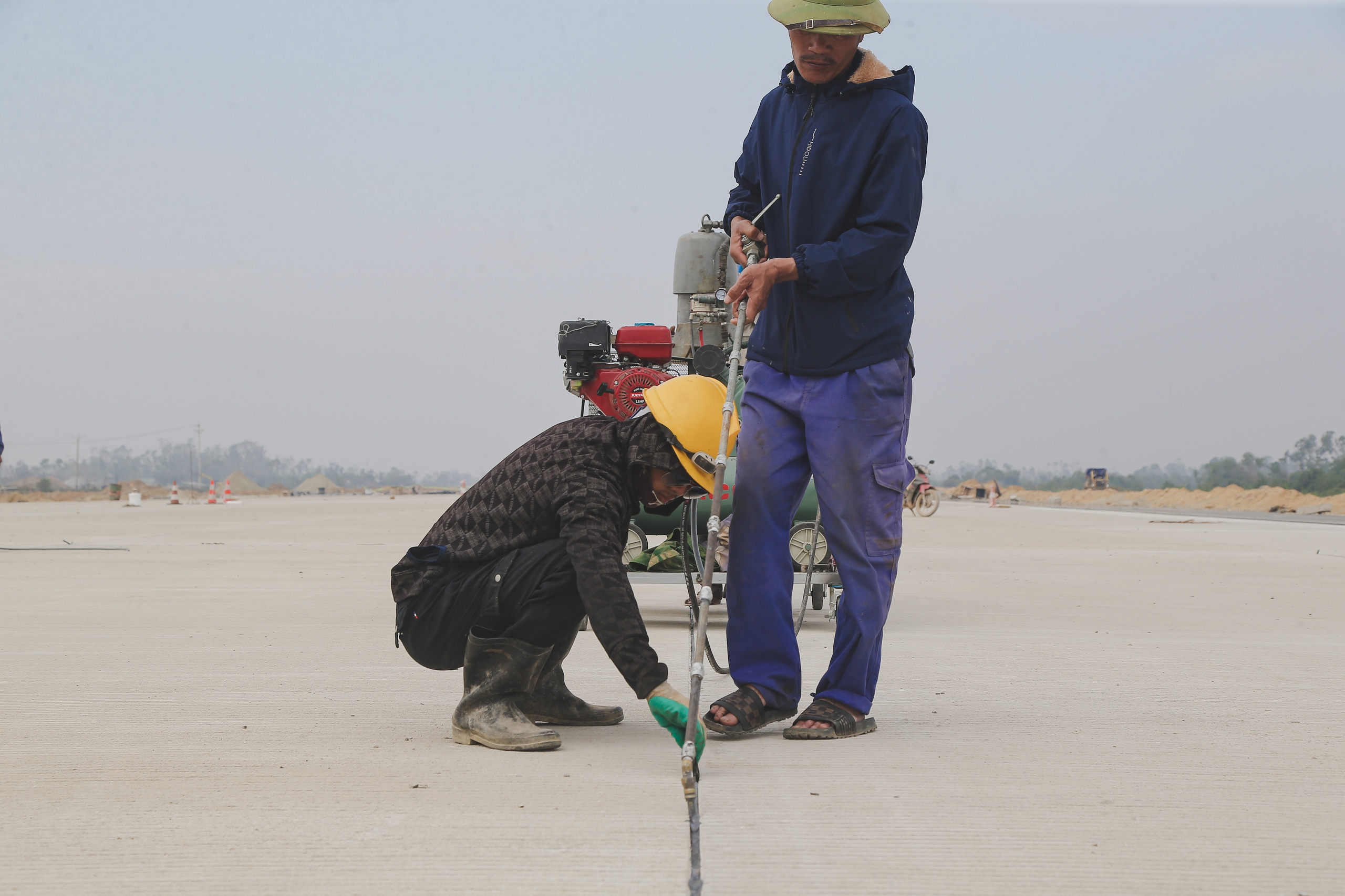 Các hạng mục đường băng cất hạ cánh, đường lă đã hoàn thành. Hiện các công nhân đang thi công các hạng mục phụ như: Cắt rãnh tạo nhám, trám khe co giãn và sơn vạch kẻ đường...