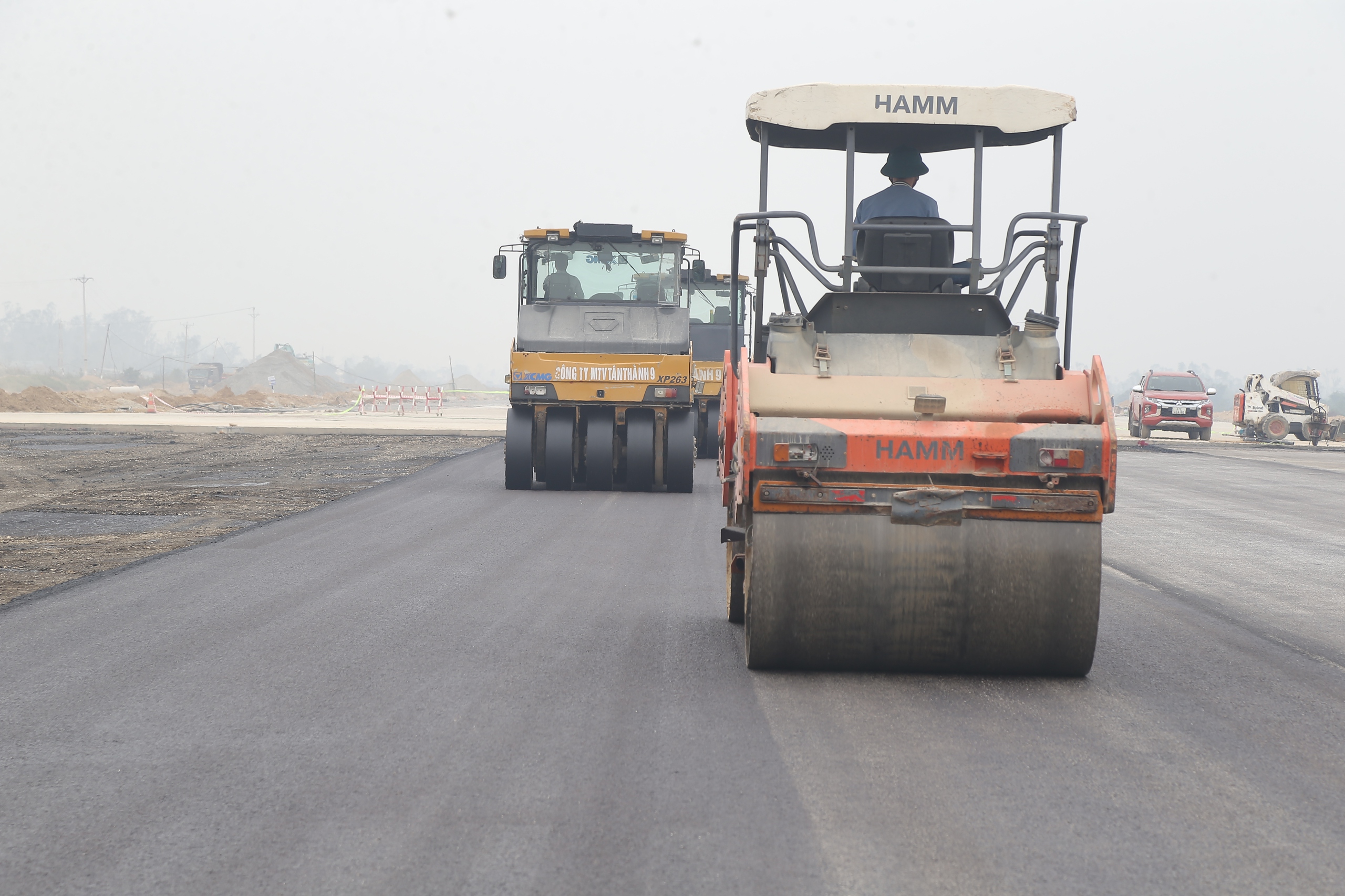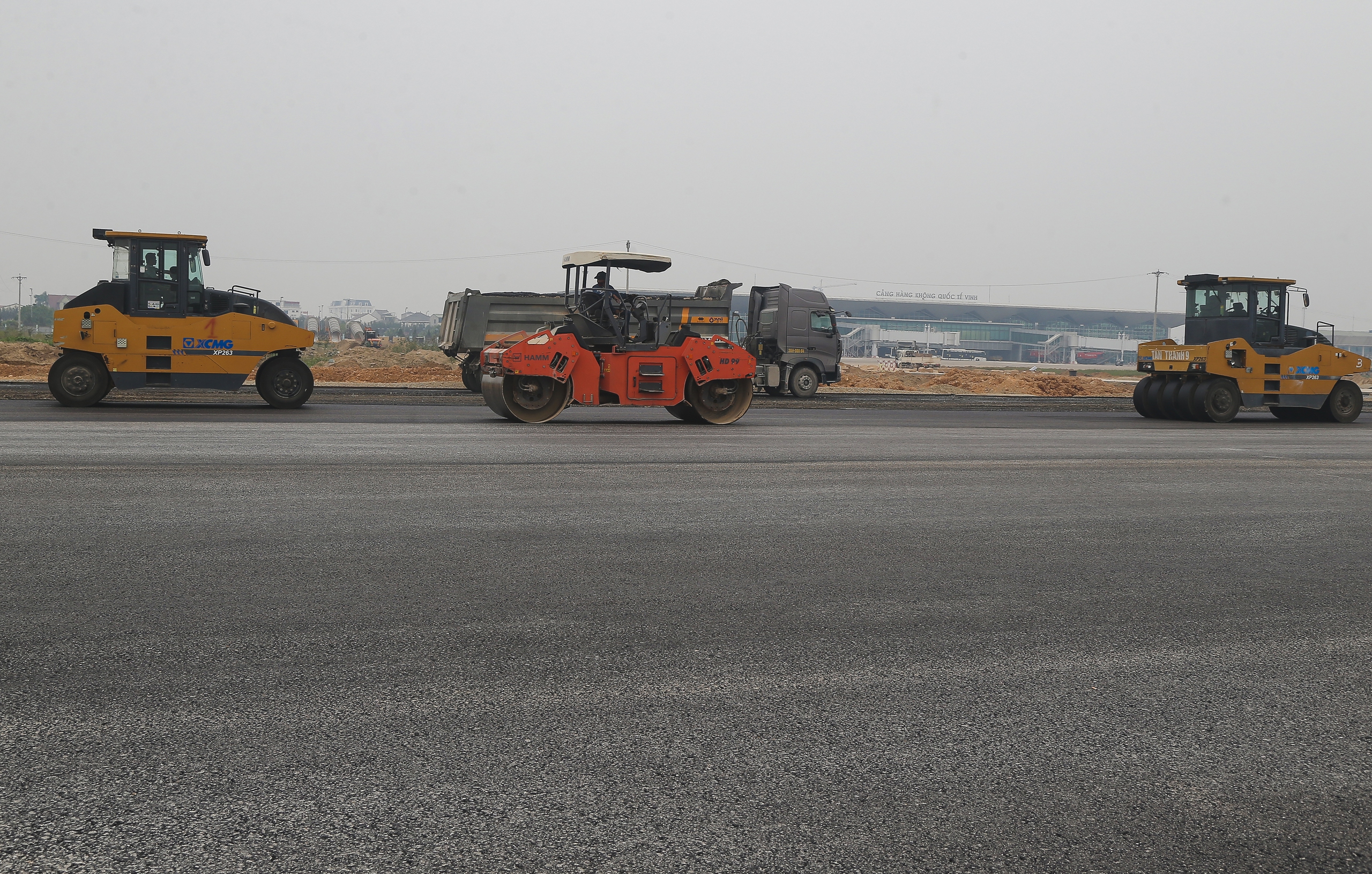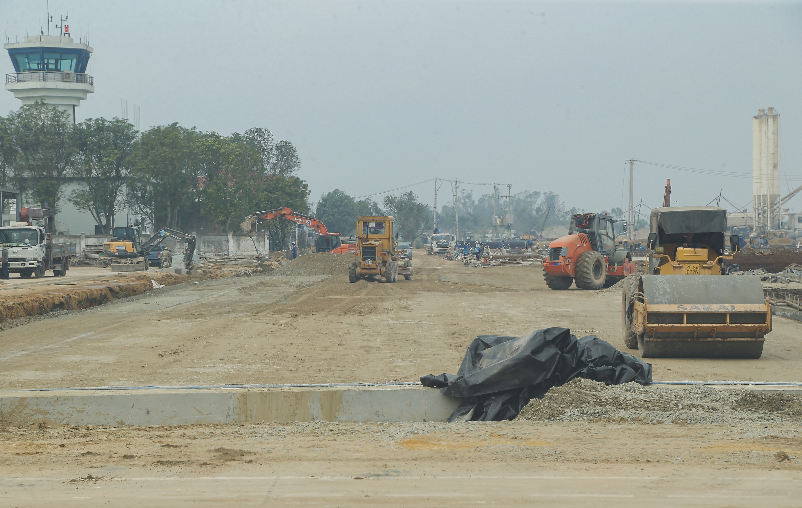 Các hạng mục đường băng cất hạ cánh, đường lă đã hoàn thành. Hiện các công nhân đang thi công các hạng mục phụ như: Cắt rãnh tạo nhám, trám khe co giãn và sơn vạch kẻ đường...