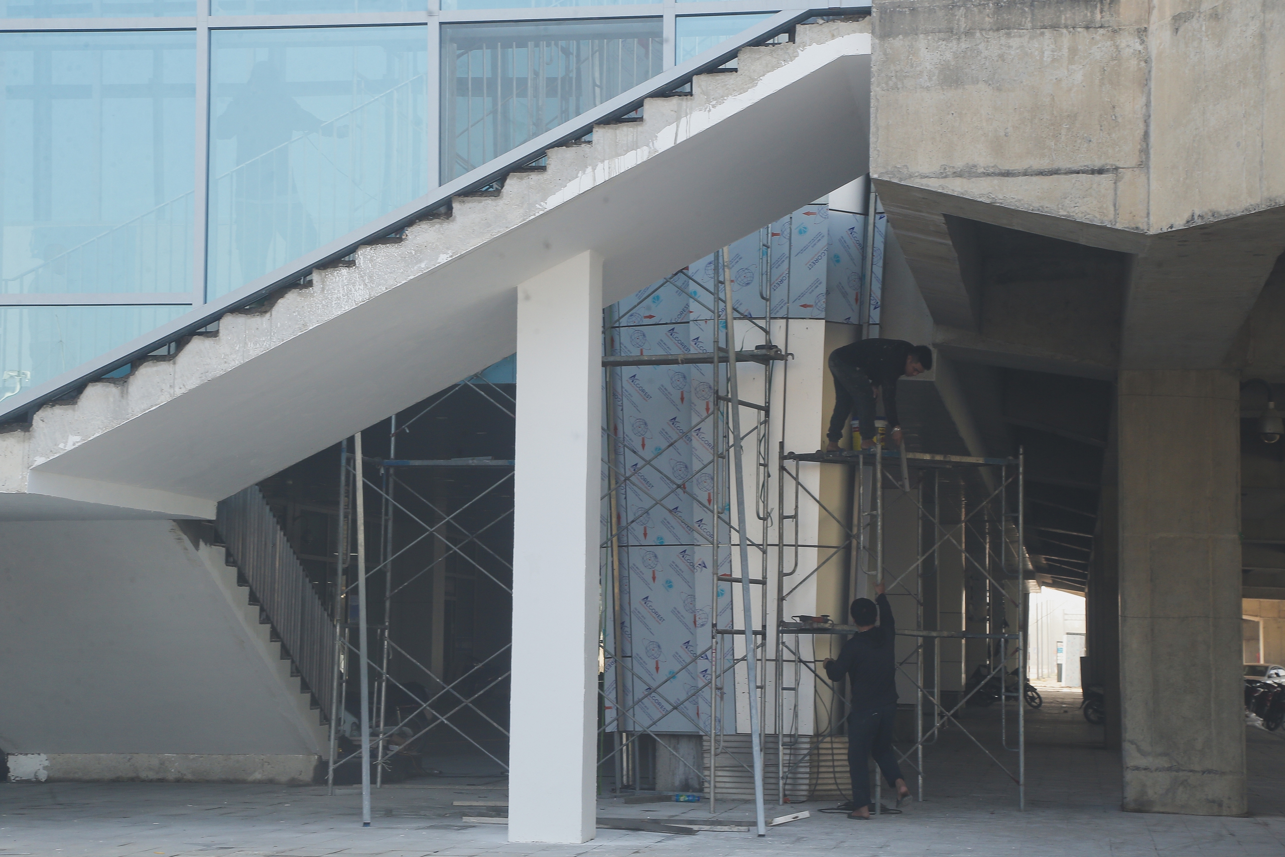 Ở hạng mục cải tạo nâng cấp nhà ga hành khách, đến nay cũng đã cơ bản hoàn thành. Hiện các công nhân đang hoàn thiện những tấm ốp tường cuối cùng, vệ sinh, đánh bóng nội thất bên trong.
