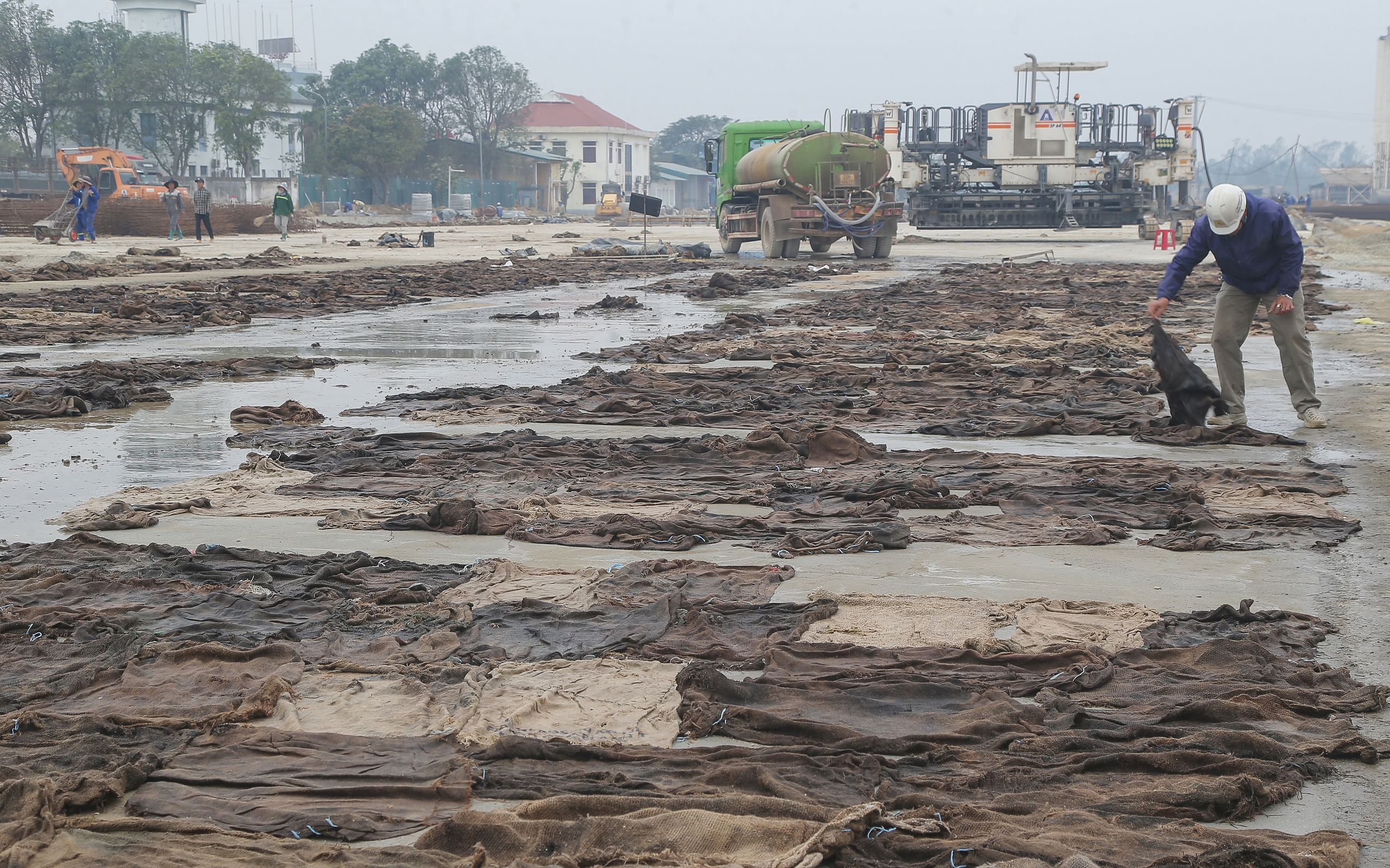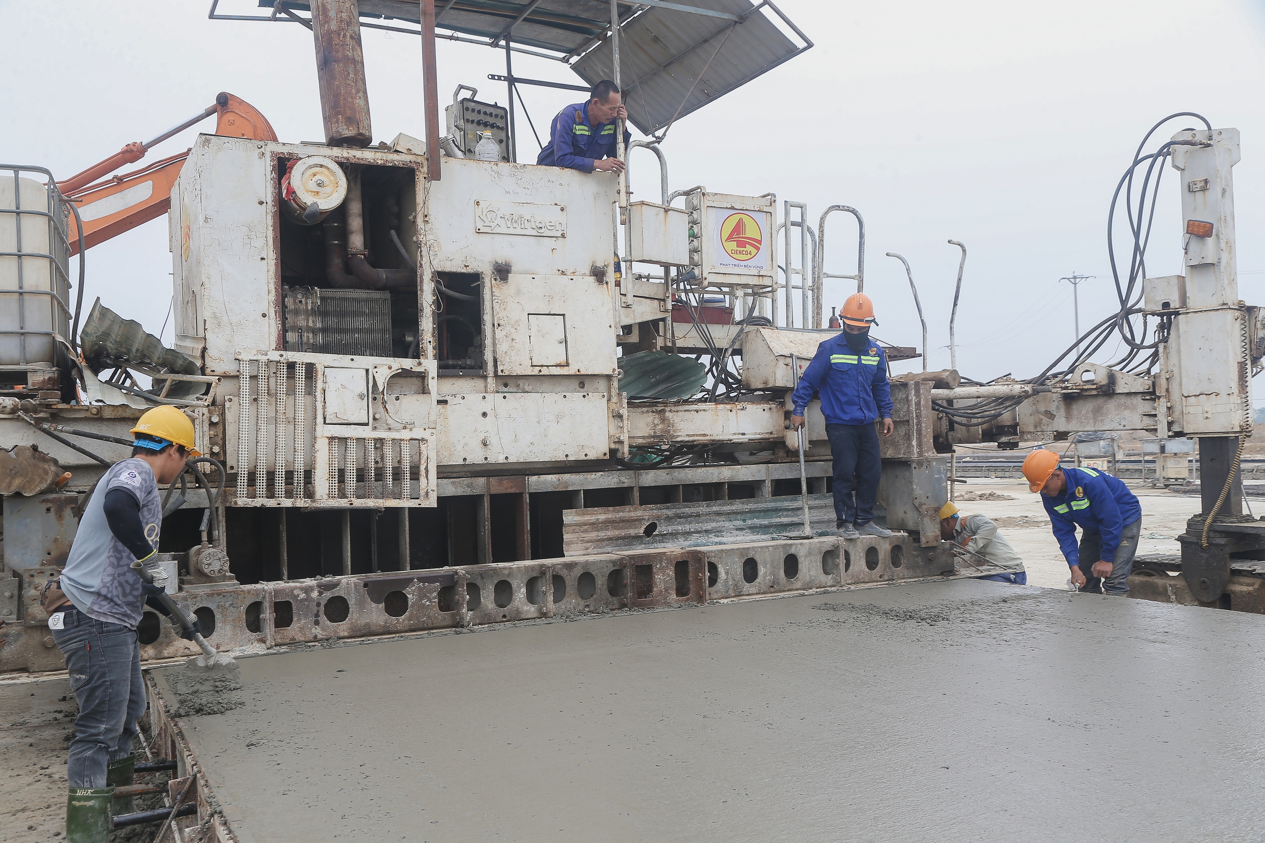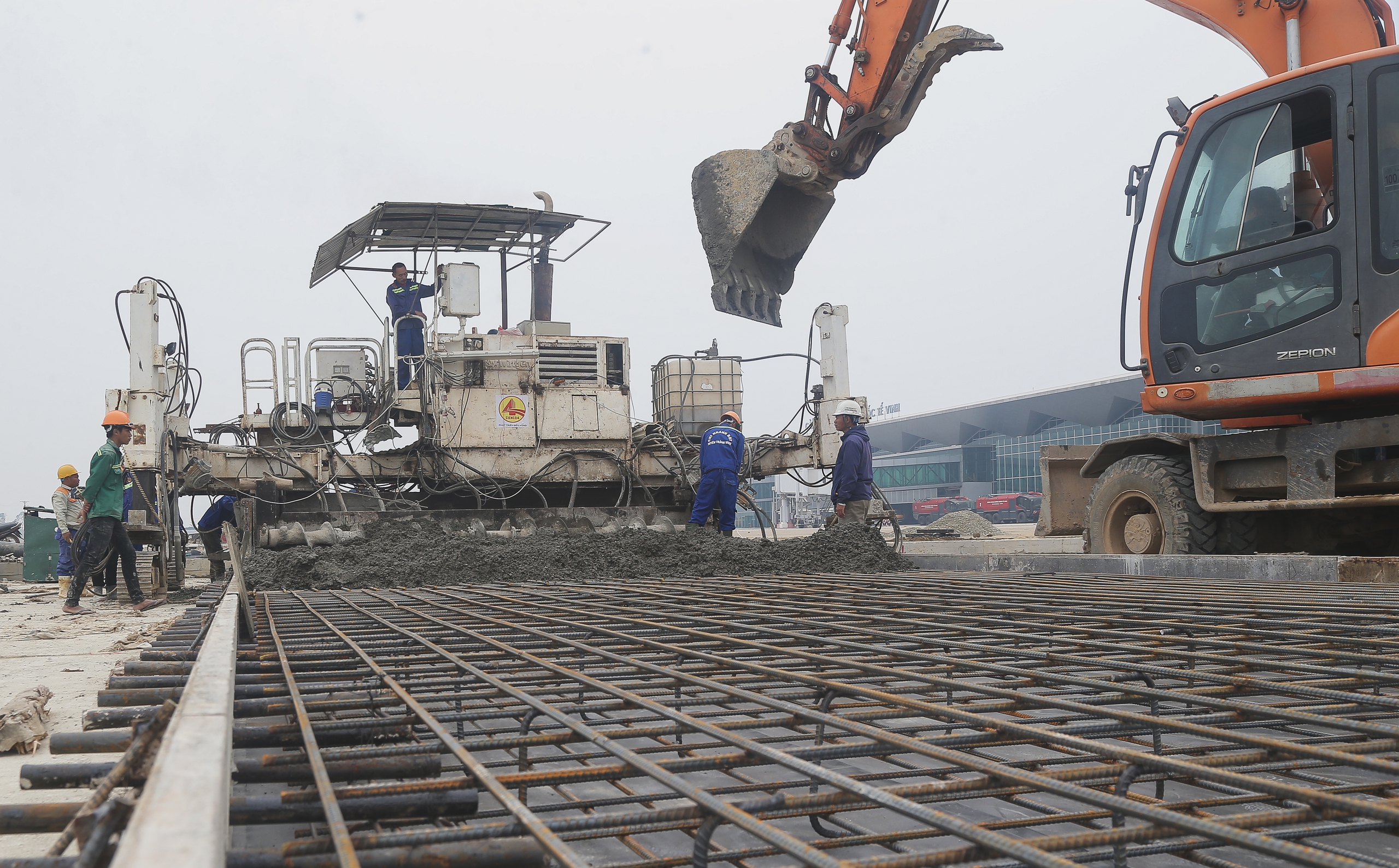 Trong khi đó, bãi đỗ tàu bay do bàn giao mặt bằng muộn hơn nên hiện 2 dây chuyền (80 người) đang hoàn thiện bê tông cốt thép lớp trên. Trong thời gian đưa vào khai thác, khu vực này sẽ được rào lại để thi công, không ảnh hưởng đến an toàn bay.