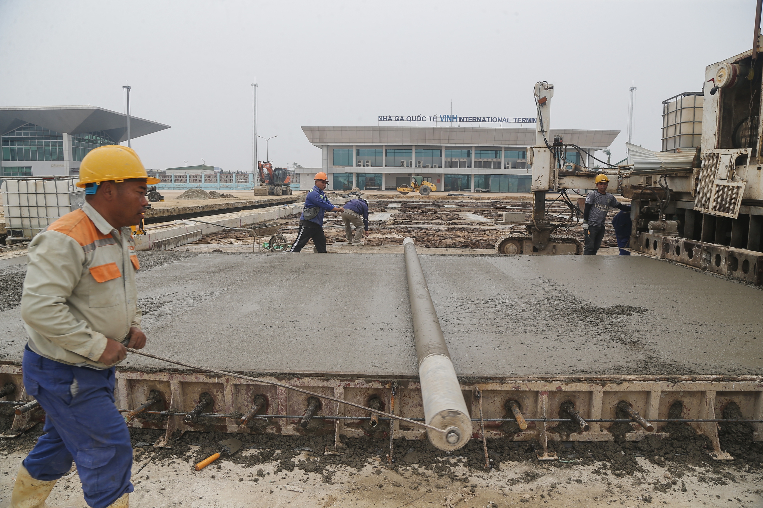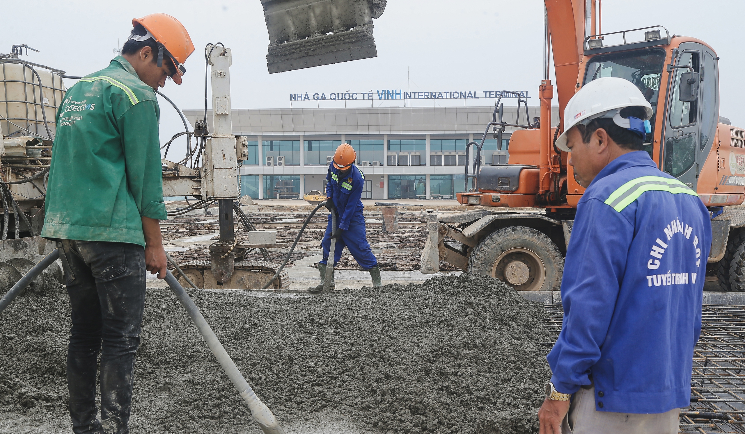Những ngày này, tại dự án cải tạo, nâng cấp Cảng hàng không quốc tế Vinh (Nghệ An) hàng trăm công nhân cùng nhiều máy móc, thiết bị hiện đại đang chạy đua để đưa dự án về đích.