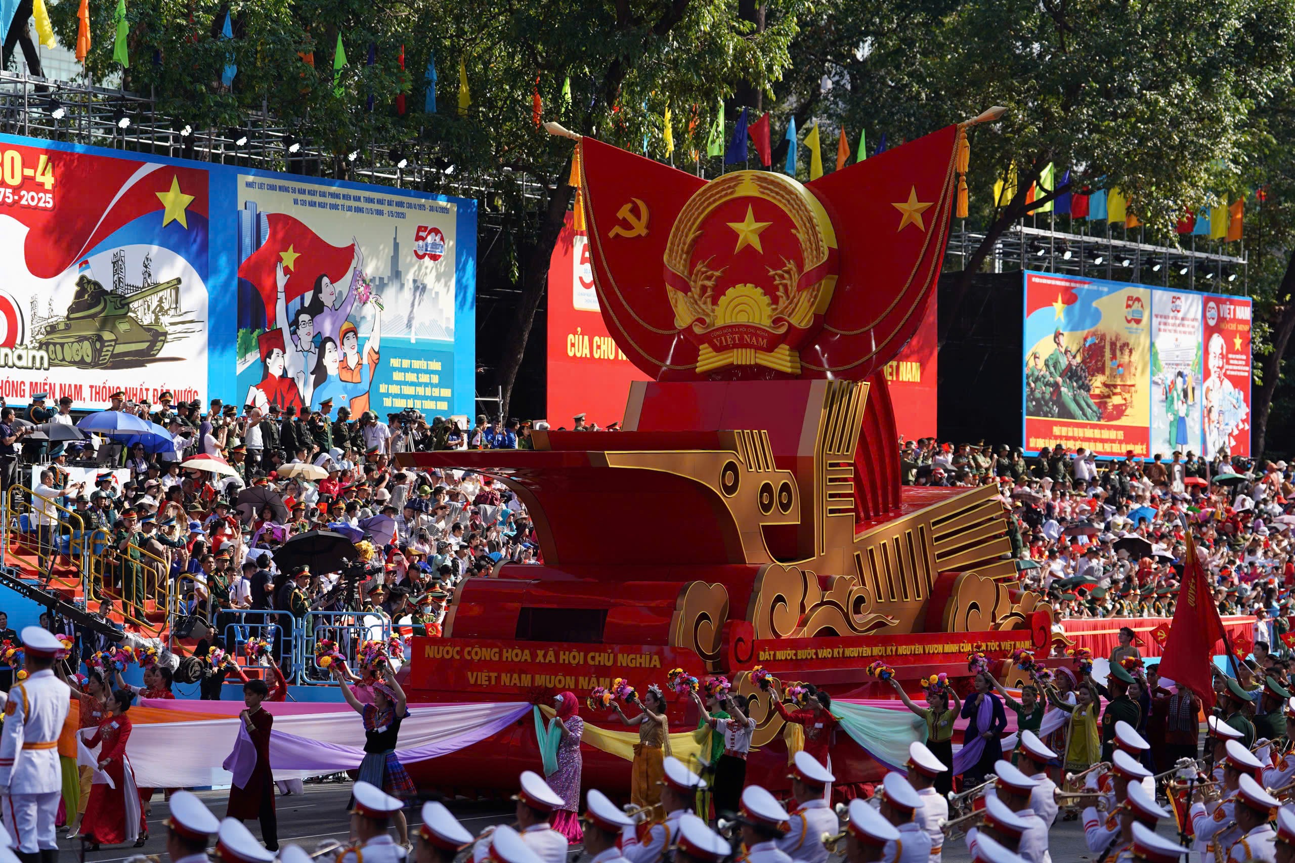 Tham gia tổng duyệt diễu binh diễu hành cấp Nhà nước chuẩn bị cho kỷ niệm 50 năm Ngày Giải phóng miền Nam, thống nhất đất nước có 56 khối. Trong đó khối xe nghi trượng gồm 4 khối, có 36 khối của quân đội, dân quân tự vệ và công an. Ngoài ra, còn có khối quân đội của Lào, Campuchia và Trung Quốc cùng tham gia. Phần diễu hành có sự tham gia của 12 khối quần chúng.