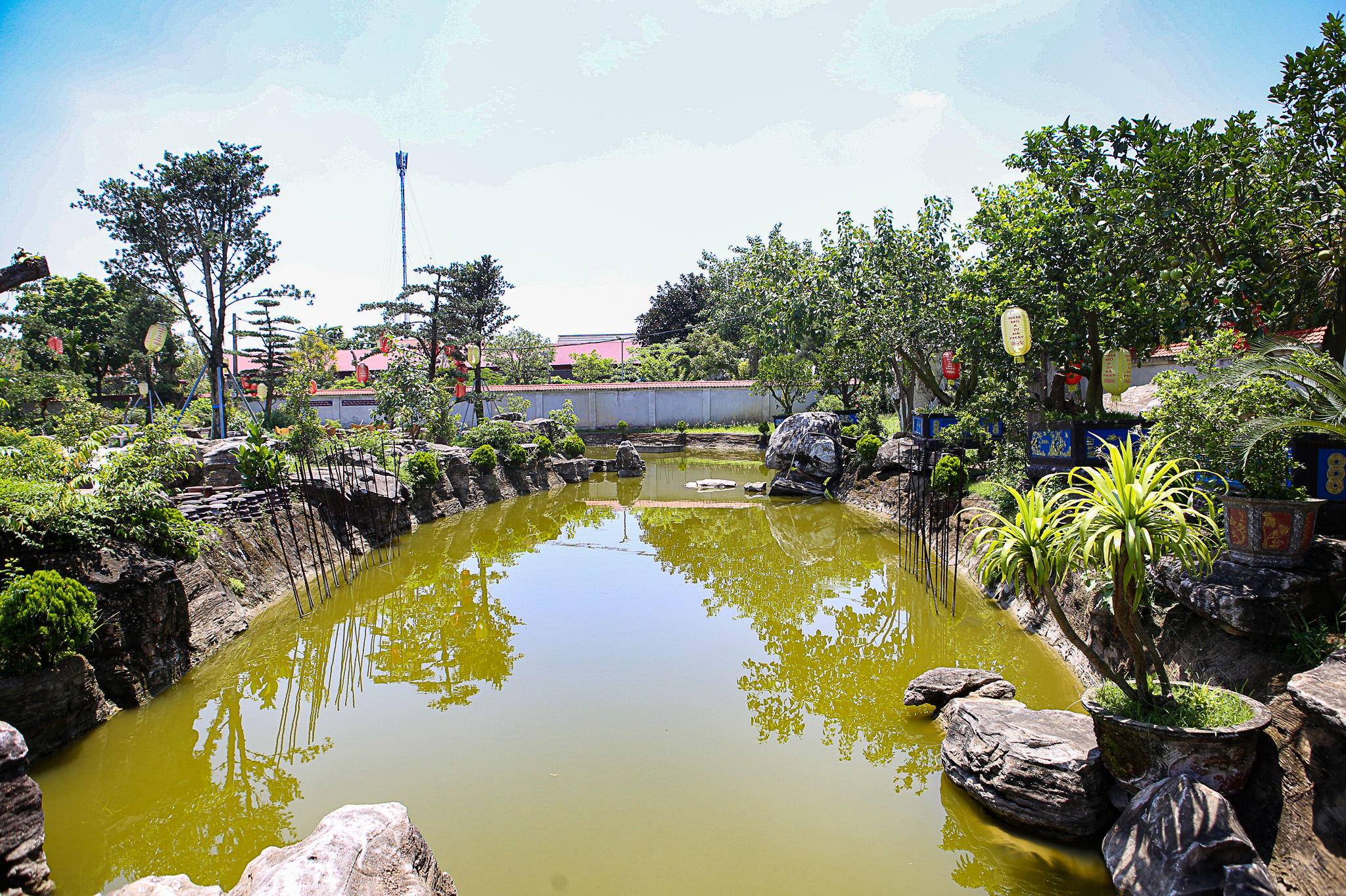 Khu vực tường bao bên ngoài được nhà chùa treo nhiều bài thơ hay của Phật giáo.