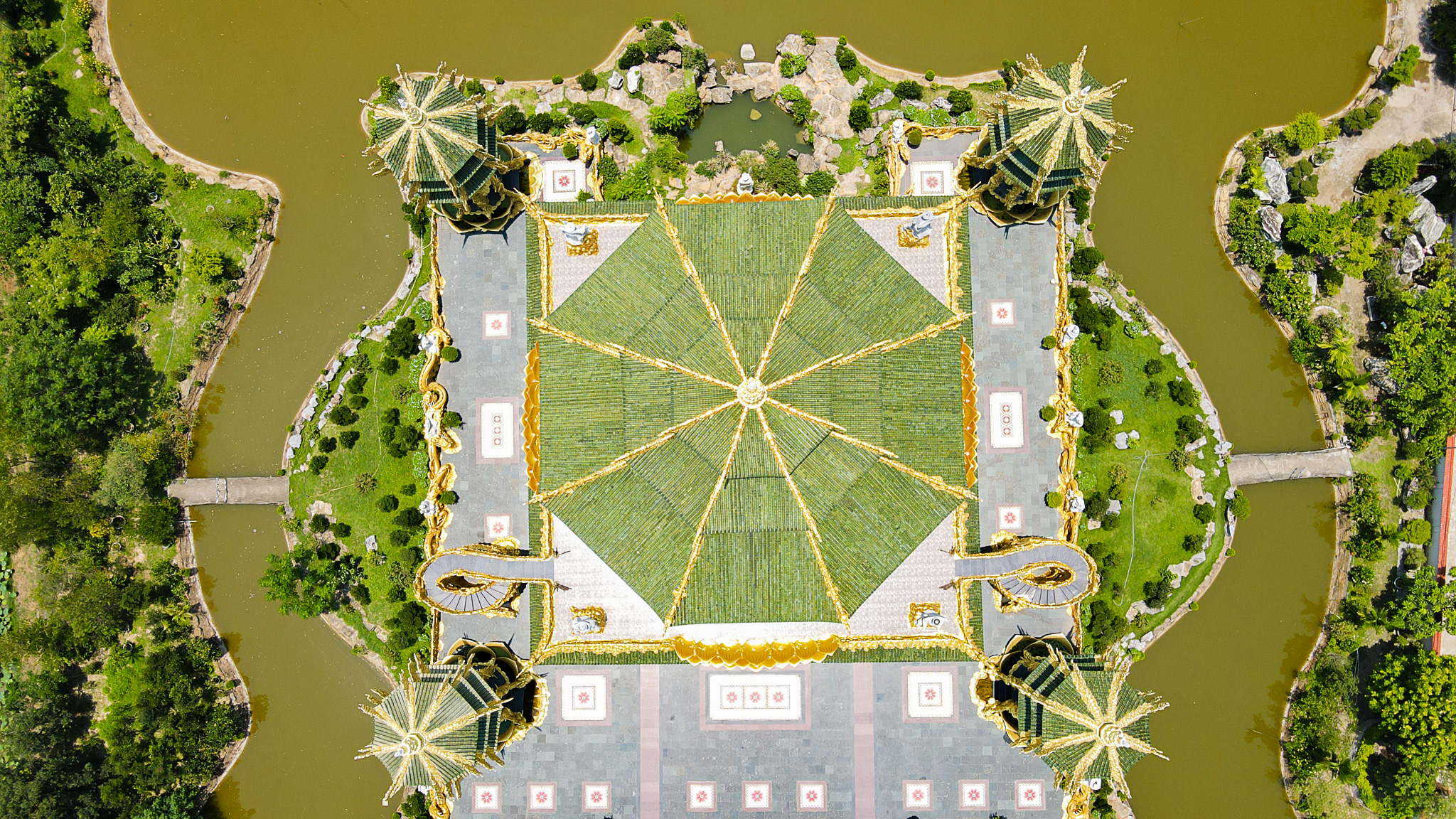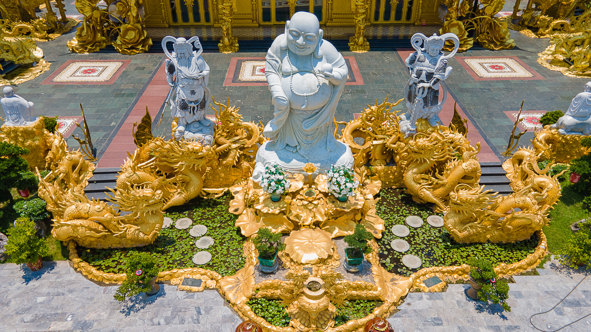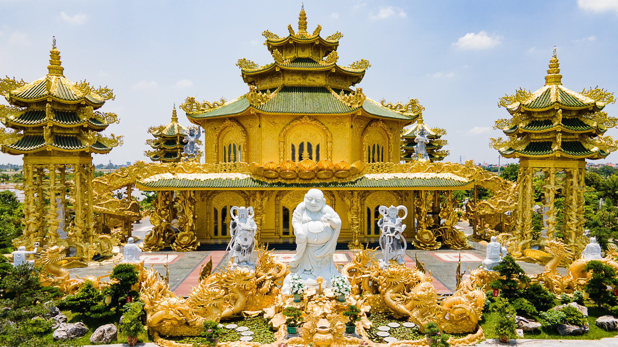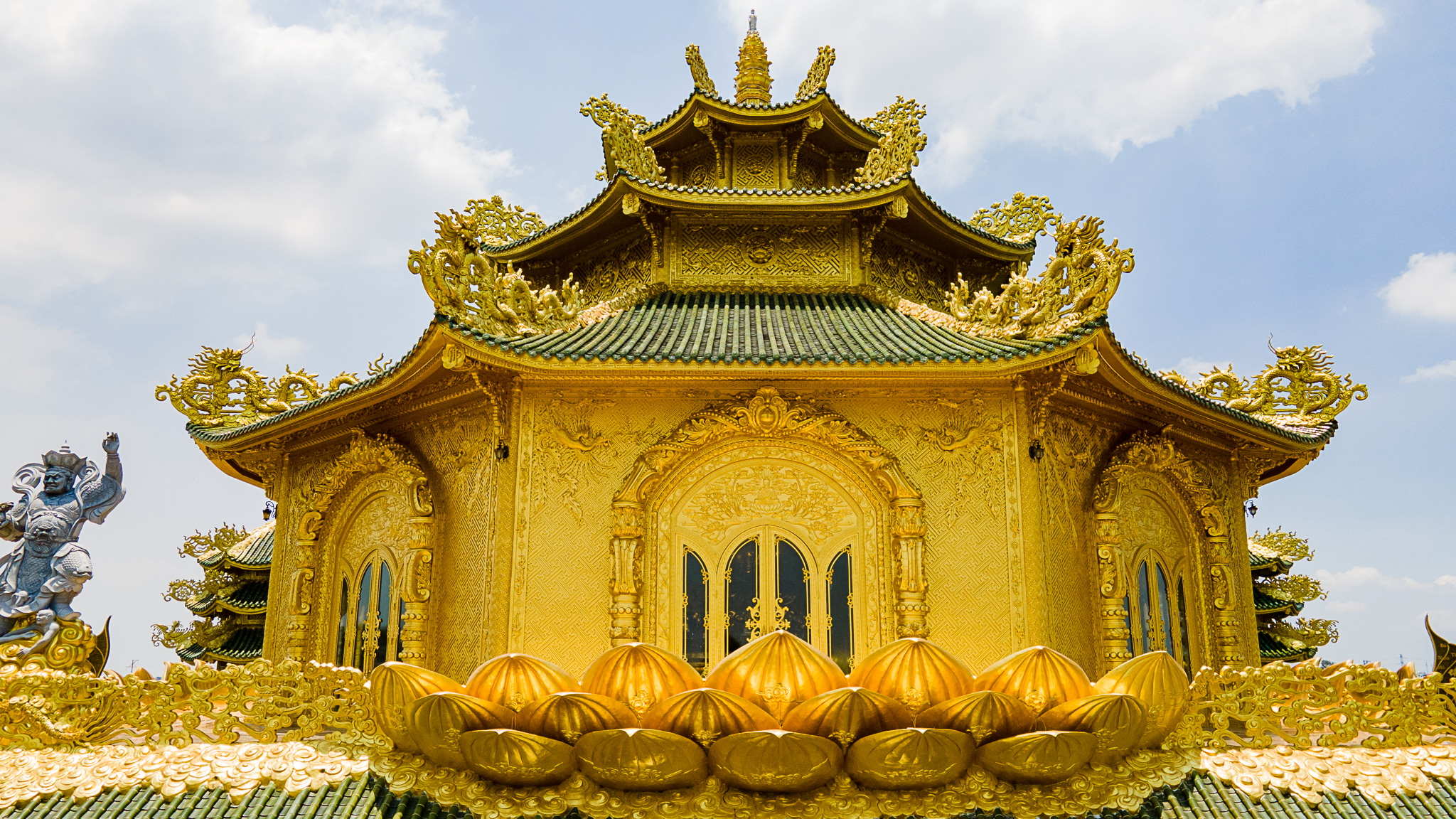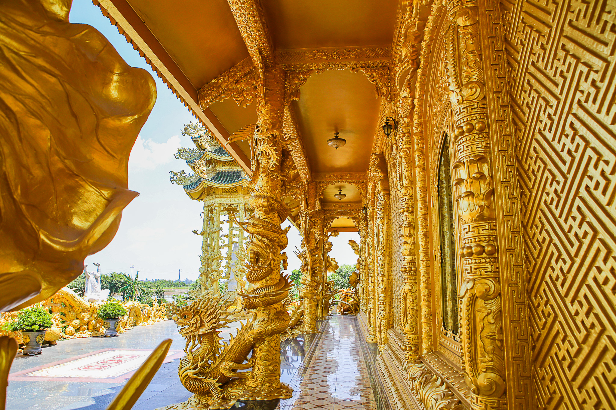 Các công trình kiến trúc trong chùa có 2 màu chủ đạo là xanh ngọc bích của mái và vàng lộng lẫy, được phủ bằng sơn bóng.
