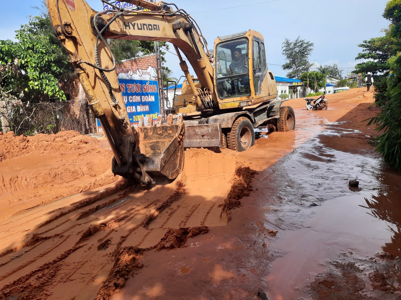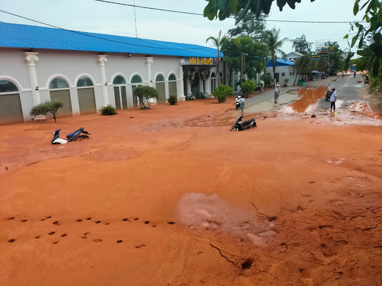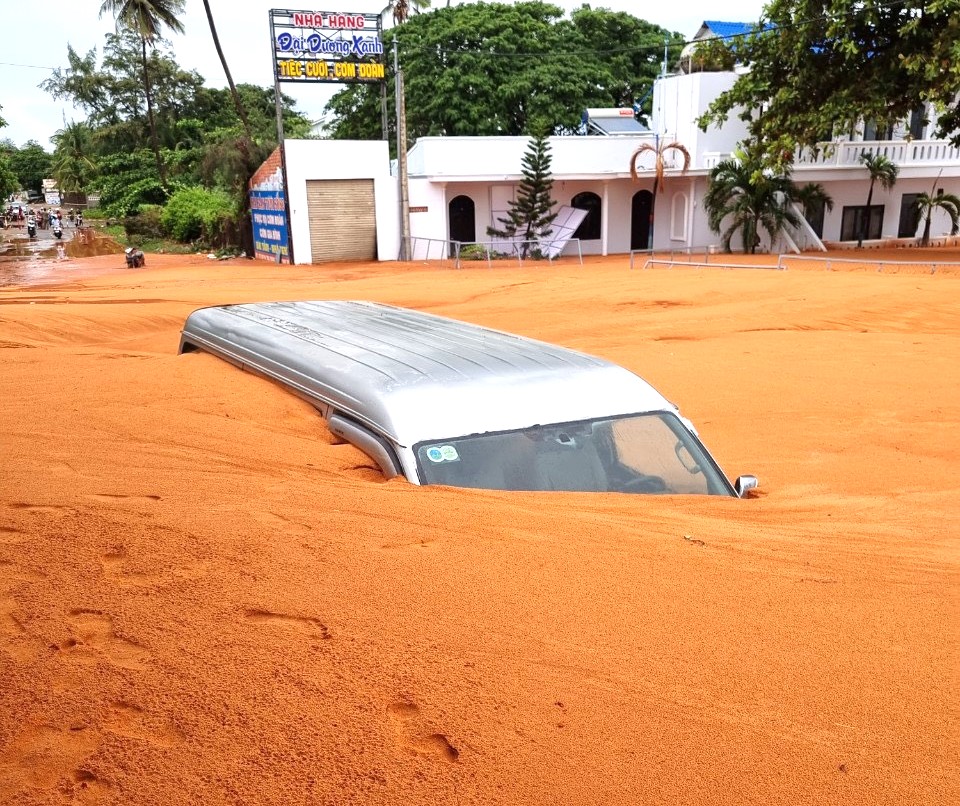 Trước đó, cơn mưa lớn đêm 20/5 đã gây sự cố khiến cát tràn ra đường Huỳnh Thúc Kháng kéo dài một đoạn đường dài gần 500m. Cát đỏ vùi lấp gây hư hỏng nhiều xe máy, gây ách tắc giao thông, xáo trộn cuộc sống người dân trong khu vực.