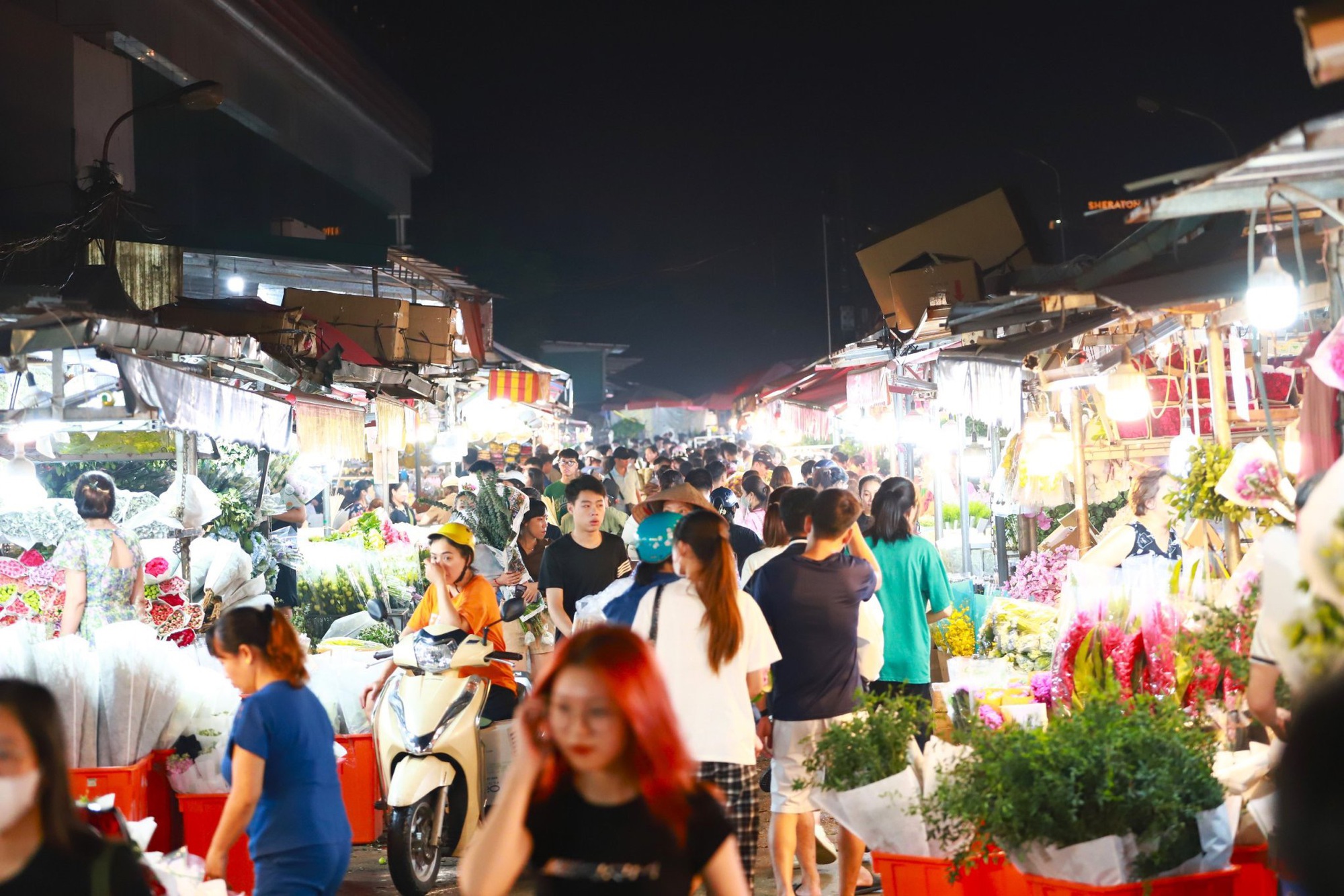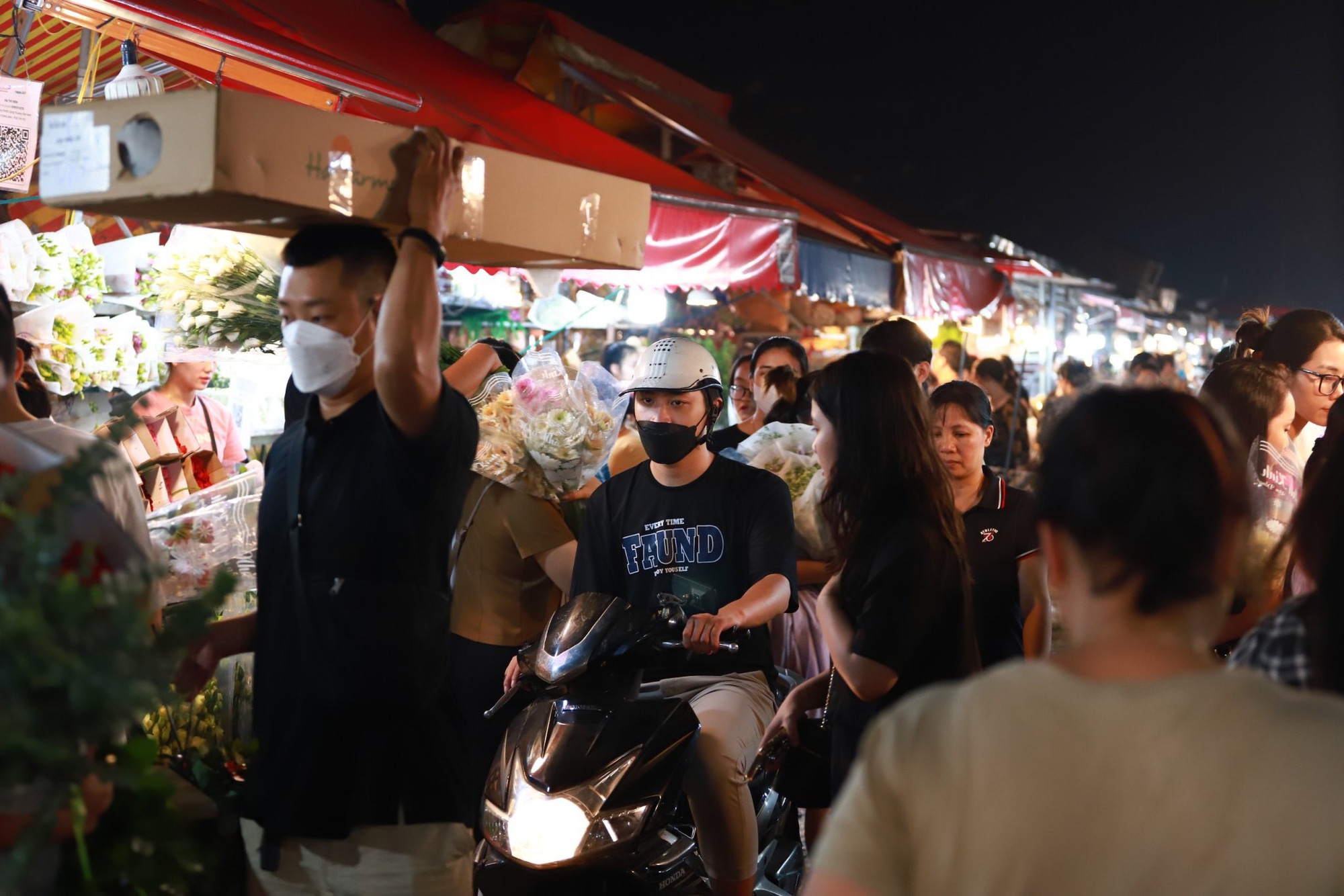 1h ngày 20/10, chợ Quảng An đông nghịt người đến mua hoa. Cảnh nhộn nhịp thường diễn ra ở chợ hoa này sát dịp lễ, Tết.