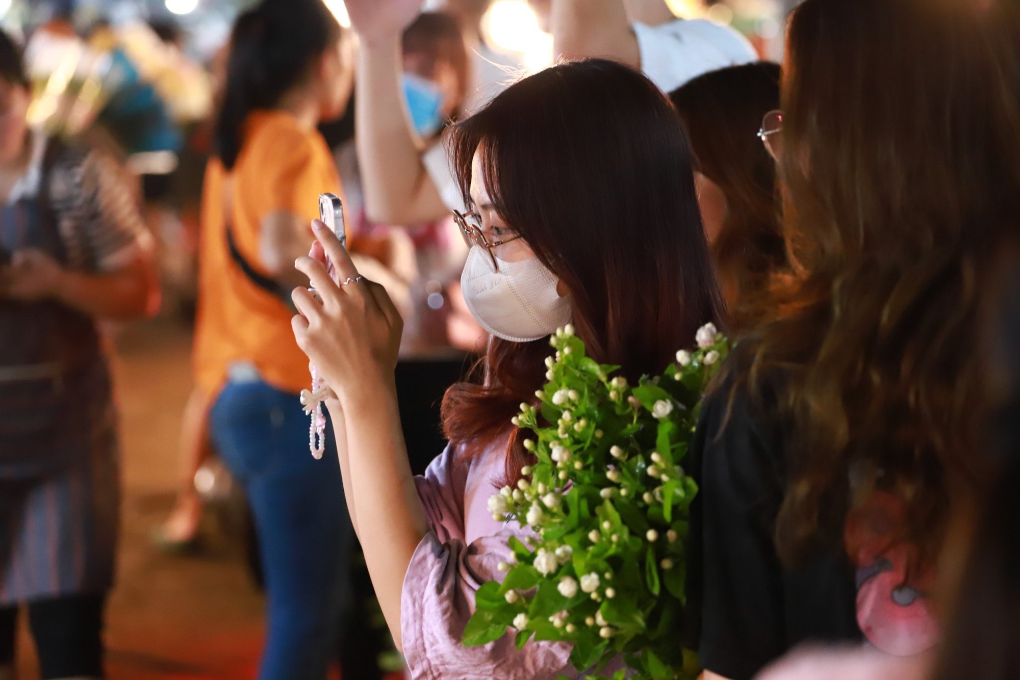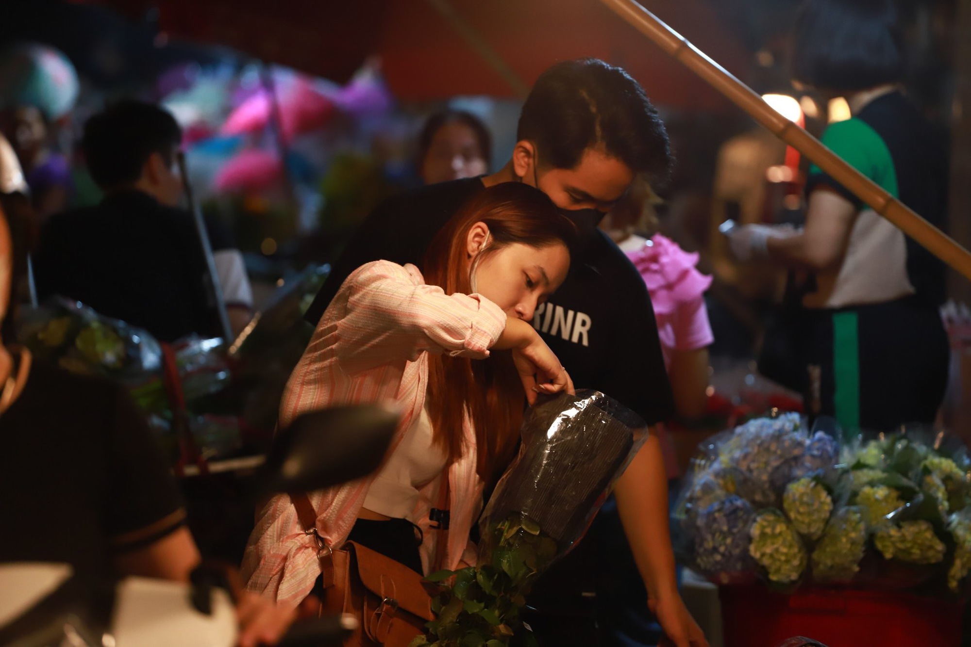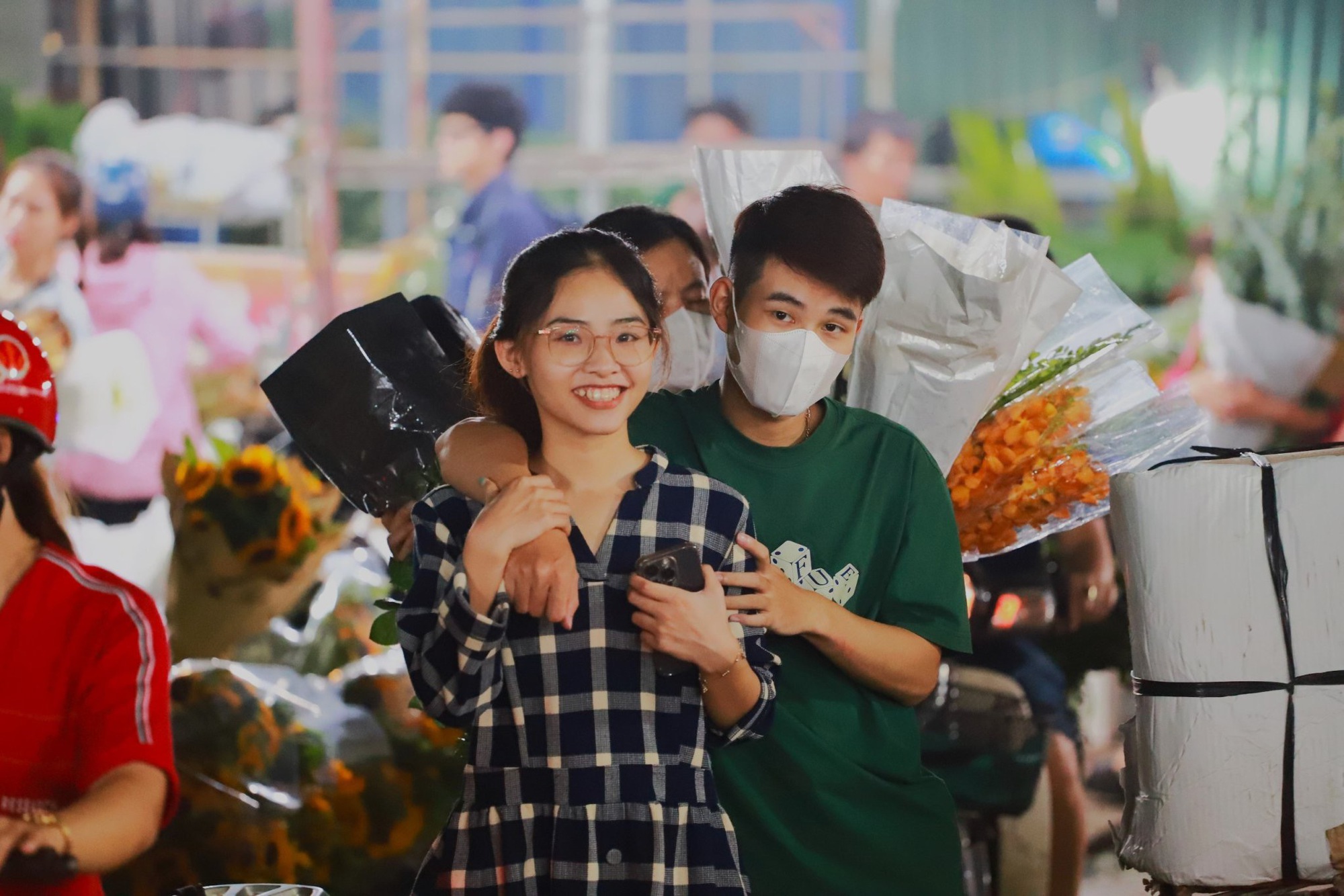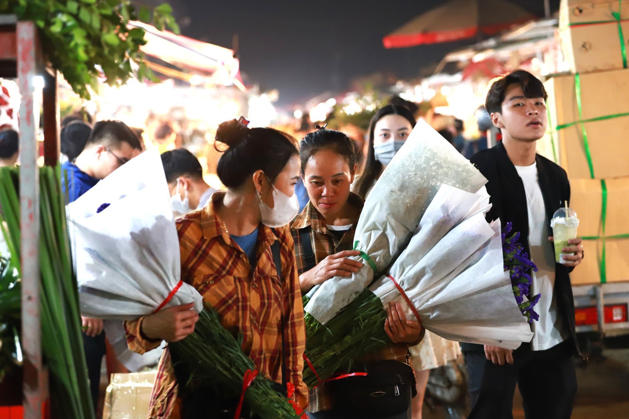 Nhân dịp ngày phụ nữ Việt Nam, tiểu thương tới nhập hoa sỉ đông hơn. Giới trẻ cũng tranh thủ đến đây mua hoa tặng người thân.