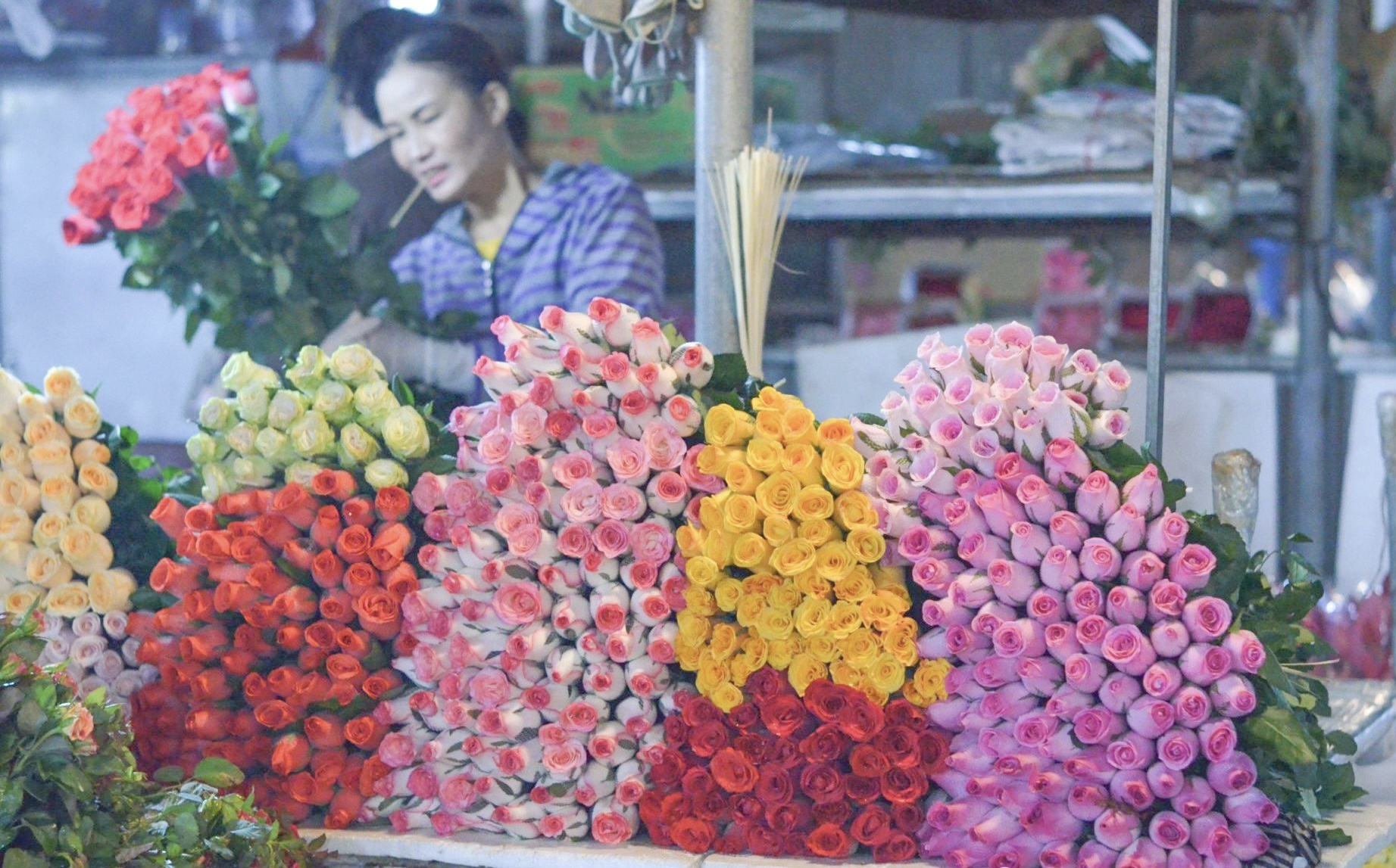 Theo các tiểu thương, hoa hồng vẫn được khách ưa chuộng vì đa dạng chủng loại, màu sắc. Giá hoa hồng sát ngày 20/10 dao động 8.000-10.000 đồng/bông, cao hơn ngày thường khoảng 5.000 đồng mỗi bông.