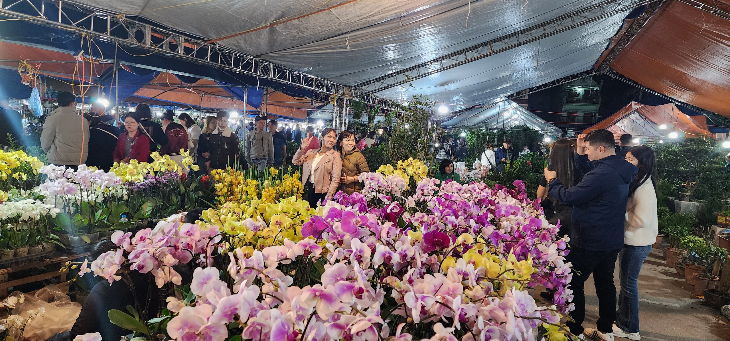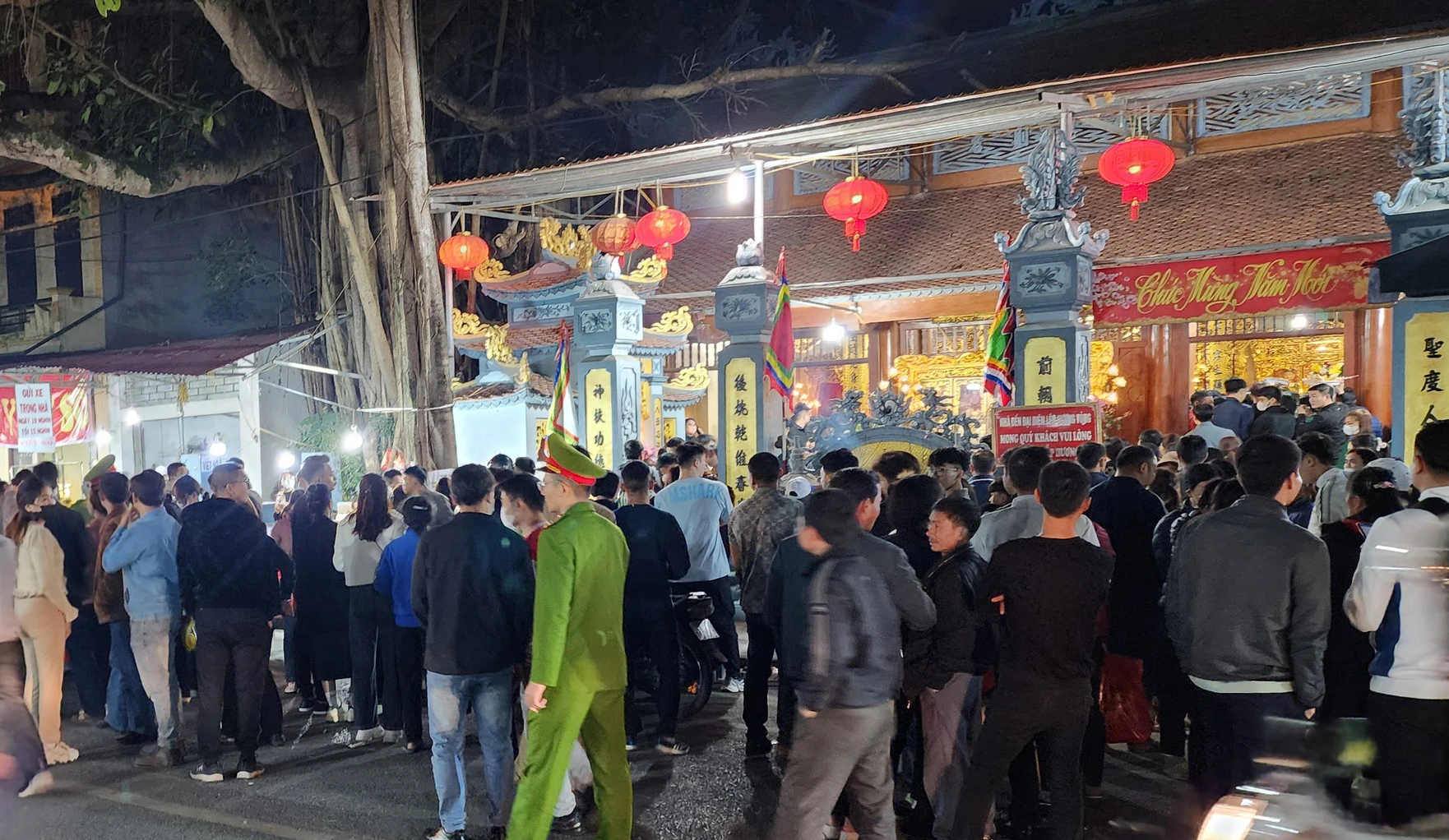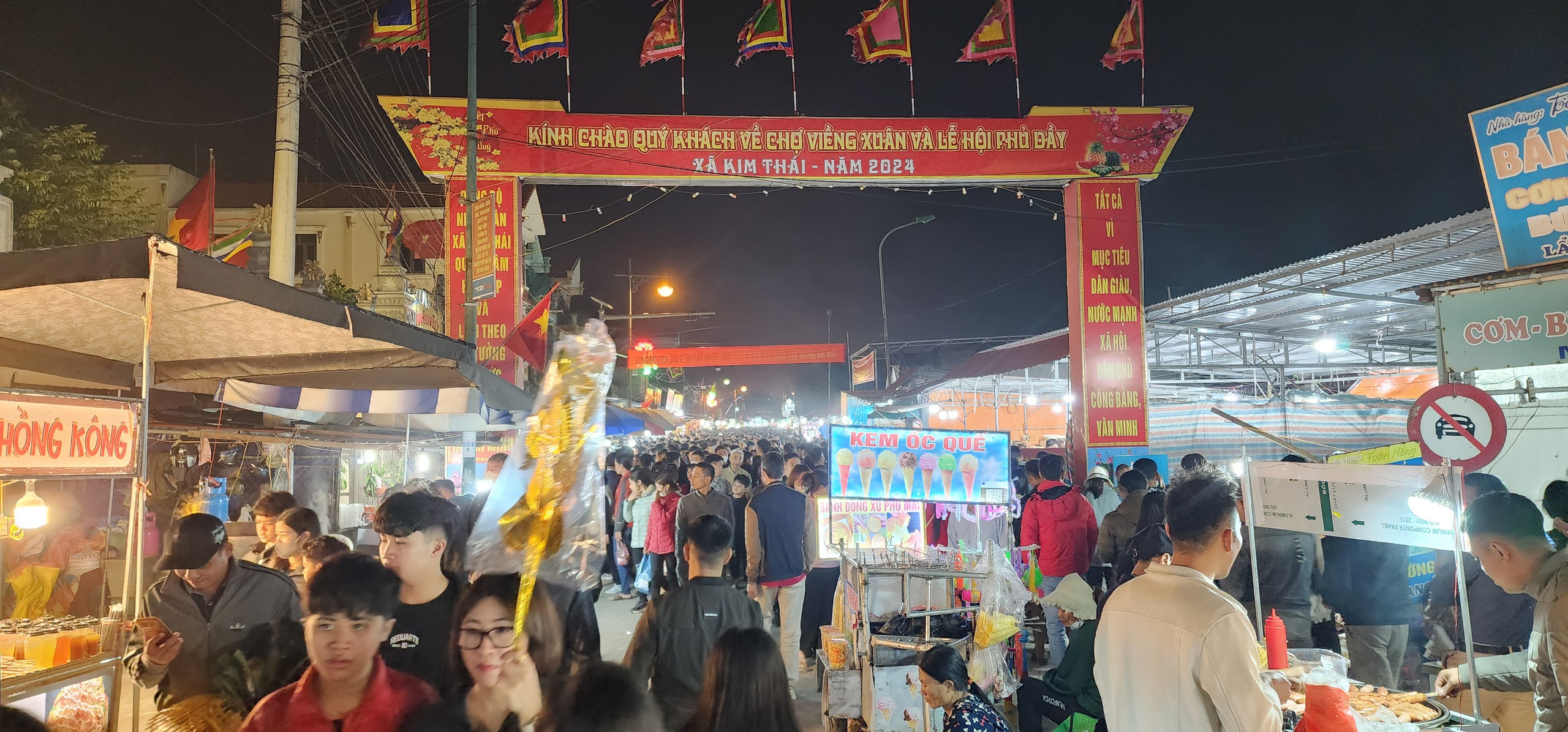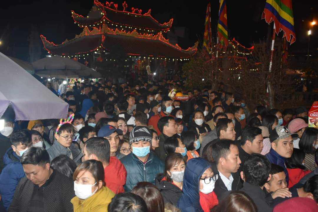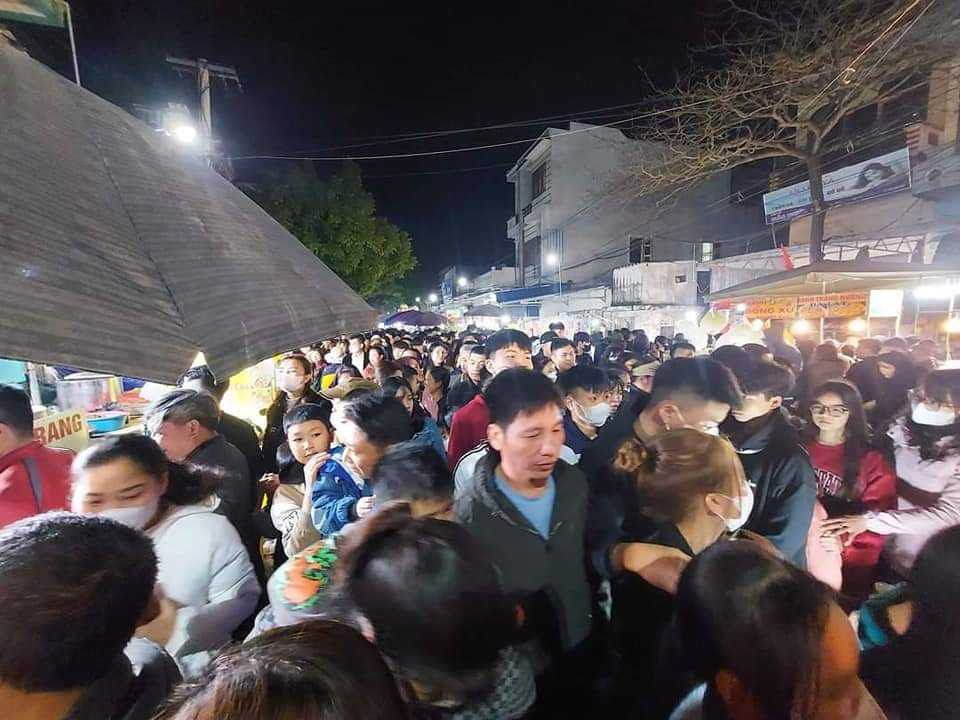 Phiên chợ Viềng (Nam Định) mỗi năm họp một lần vào đêm mùng 7, rạng sáng mùng 8 tháng Giêng. Năm nay, thời tiết thuận lợi, lại đúng vào dịp cuối tuần, nên lượng khách đi chợ Viềng tăng đột biến. Ước tính của cơ quan chức năng tỉnh Nam Định, có khoảng 10 vạn du khách đến chợ Viềng năm nay. Ảnh: Chợ Viềng phủ vào lúc 20h tối 16/2 (mùng 7 tết Giáp Thìn).