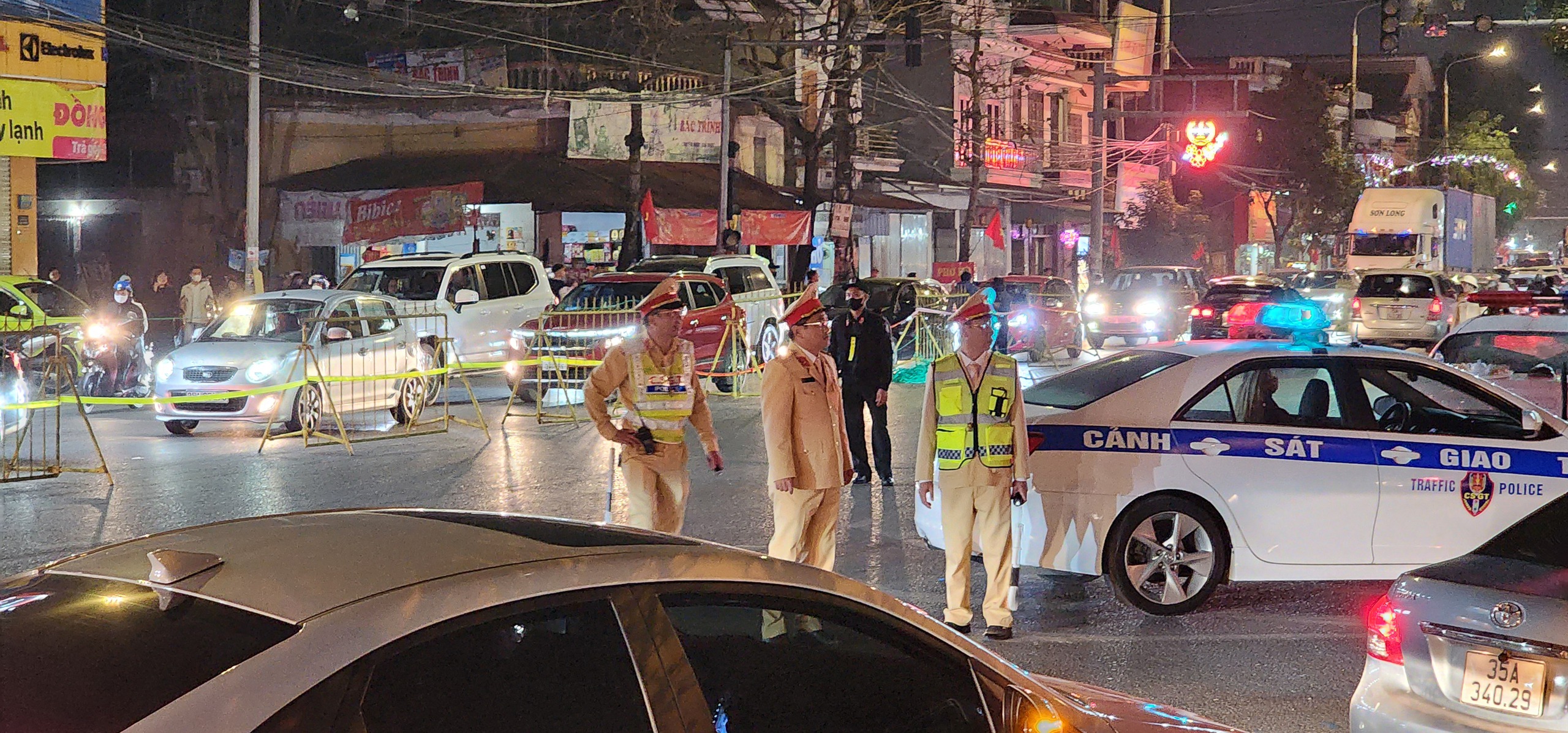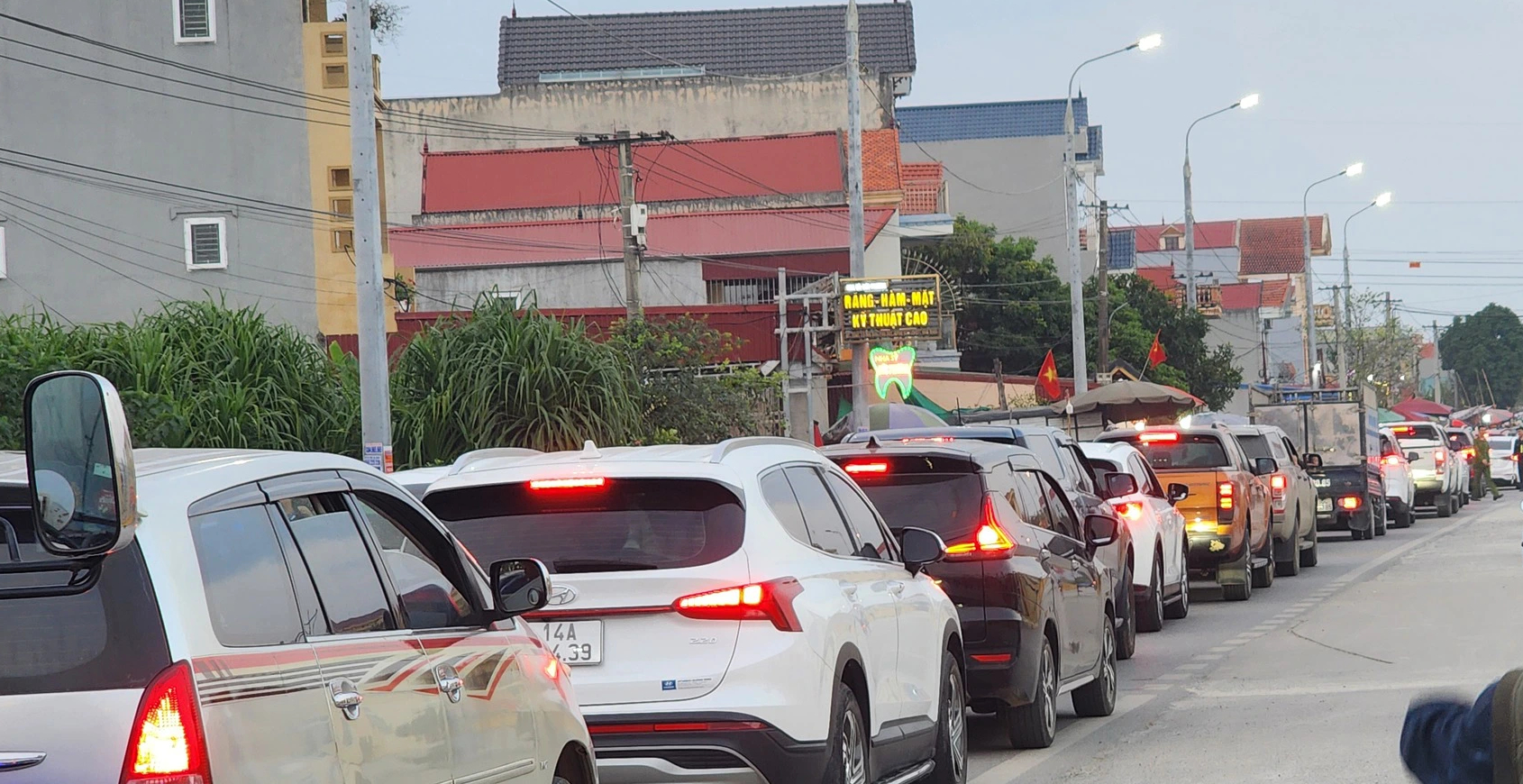 Càng về tối, lượng xe đổ về chợ Viềng càng đông. Dòng xe ùn tắc nối đuôi nhau kéo dài chừng 4-5km.