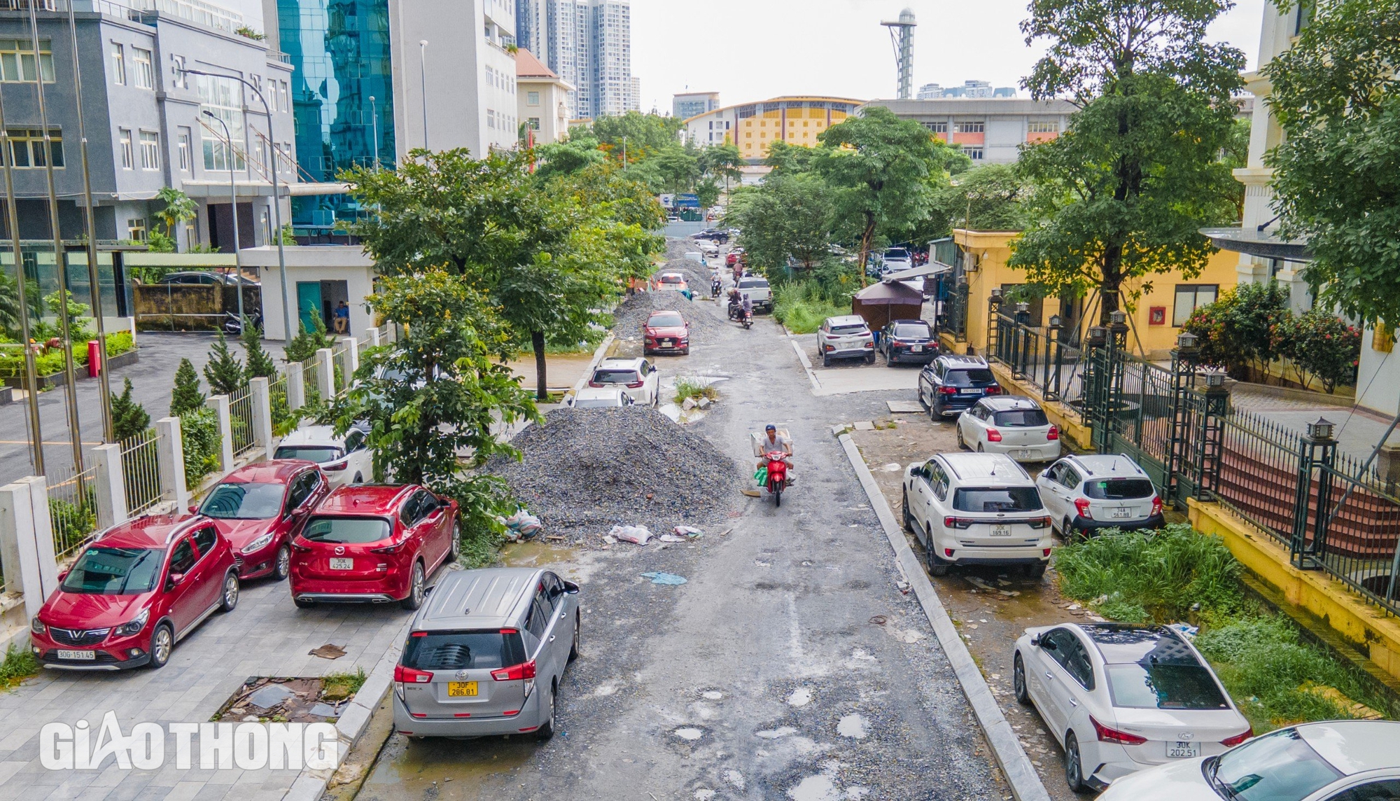 Trong khi khu vực này có nhiều tòa nhà văn phòng, trụ sở cơ quan như Cục Dân số (Bộ Y tế), Liên hiệp các Hội Khoa học và Kỹ thuật Việt Nam... (Trong ảnh đoạn đầu đường Tôn Thất Thuyết đang quây tôn, nhưng nhiều chỗ bị đổ, công trình trong quá trình hoàn thiện nhưng không hề có không có bóng dáng công nhân).