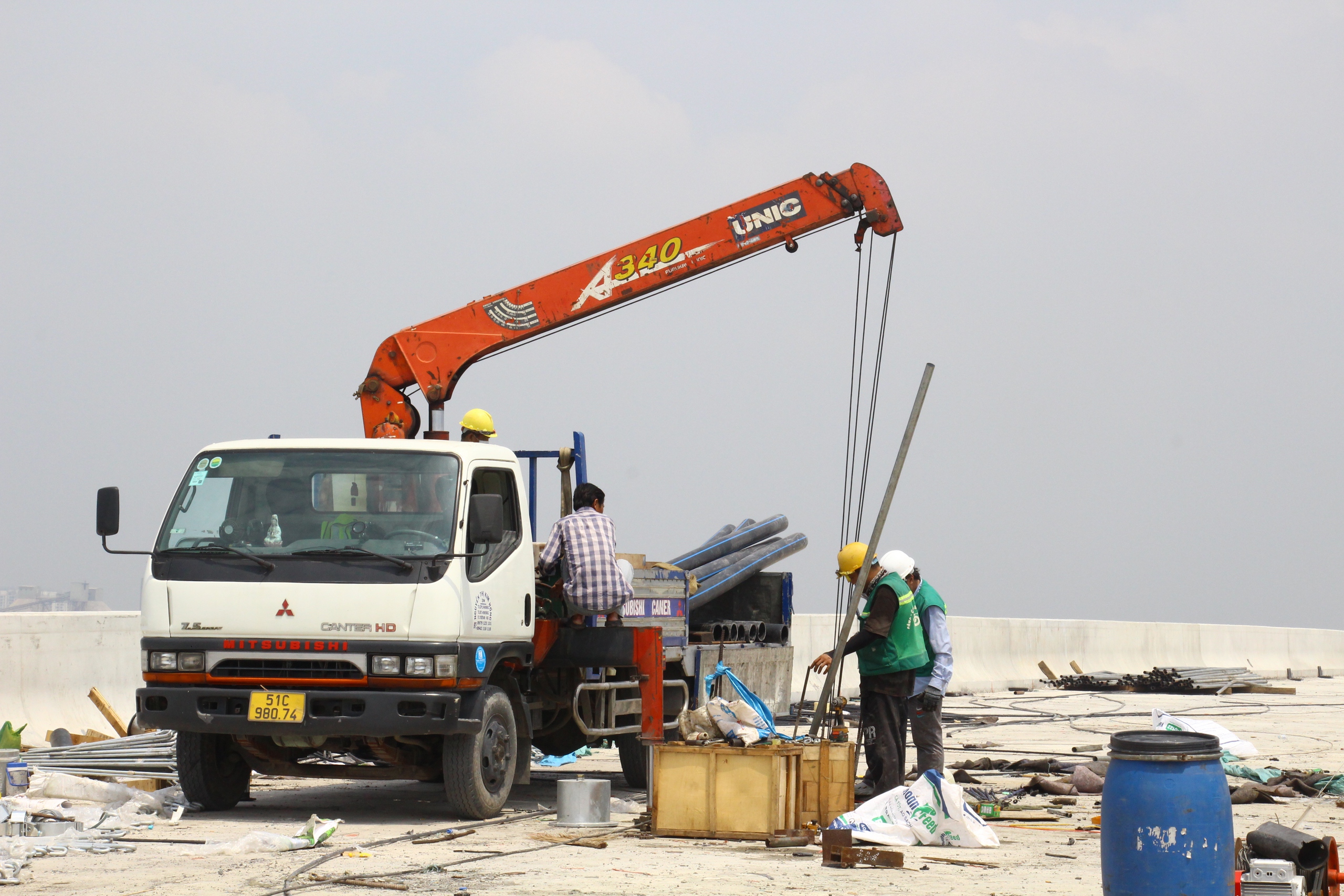 Tương tự ở gói thầu phần đường dẫn phía bờ Đồng Nai và TP.HCM hàng chục phương tiện cơ giới gồm xe ben chở đá, xe lu, máy thảm nhựa… cũng hoạt động rộn ràng từ tờ mờ sáng cho đến đêm khuya. Những đoàn xe nối đuôi nhau chuyên chở vật liệu, những cỗ máy lu lèn, san ủi tới lui liên tục tạo nên bức tranh lao động sôi động, khẩn trương đúng tinh thần "3 ca, 4 kíp".