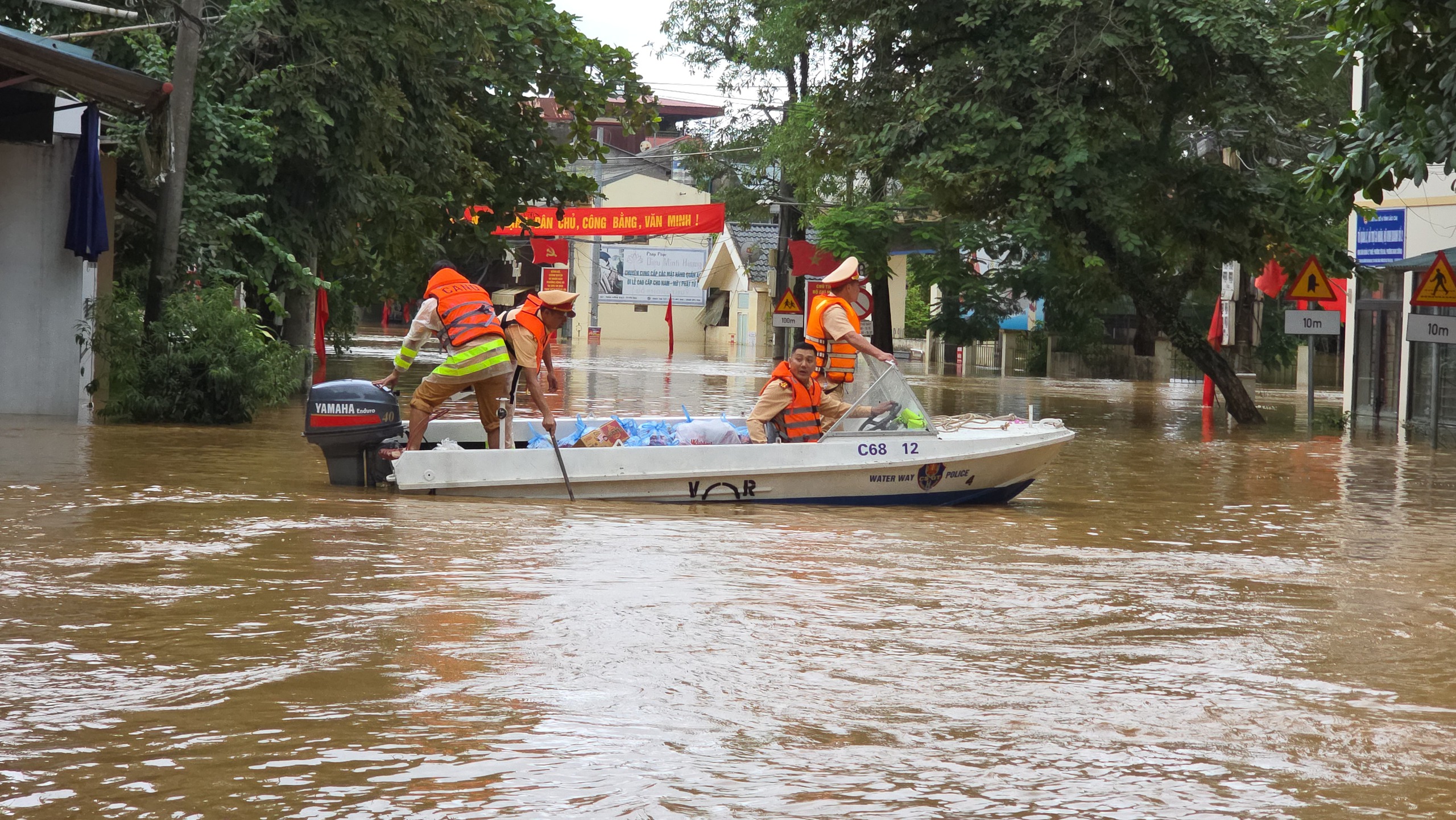 Phòng CSGT Công an tỉnh Lào Cai huy động 230 cán bộ, chiến sỹ tham gia giúp dân ra khỏi vùng lũ. Sau khi nước rút, lực lượng đã chia ra mỗi điểm khoảng 20 cán bộ chiến sỹ giúp dân khắc phục hậu quả bão lũ.