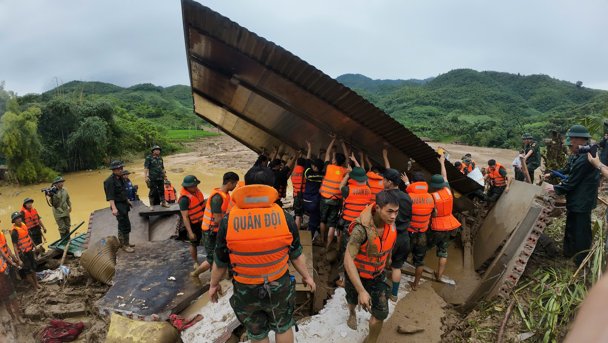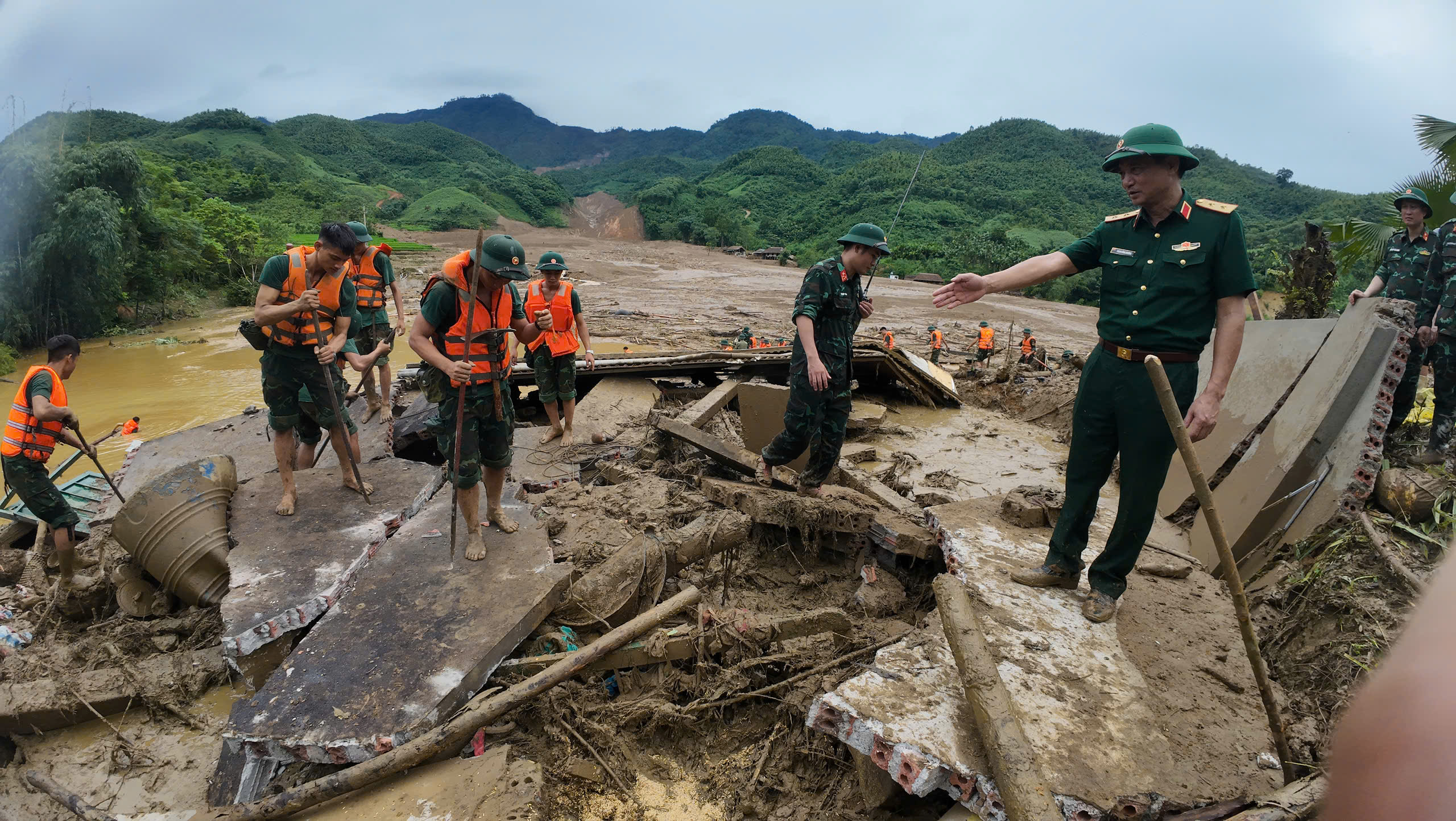 Việc tìm kiếm khá khó khăn do bùn đất lấp dày hàng mét, đồ đạc nhà cửa sập đổ ngổn ngang.