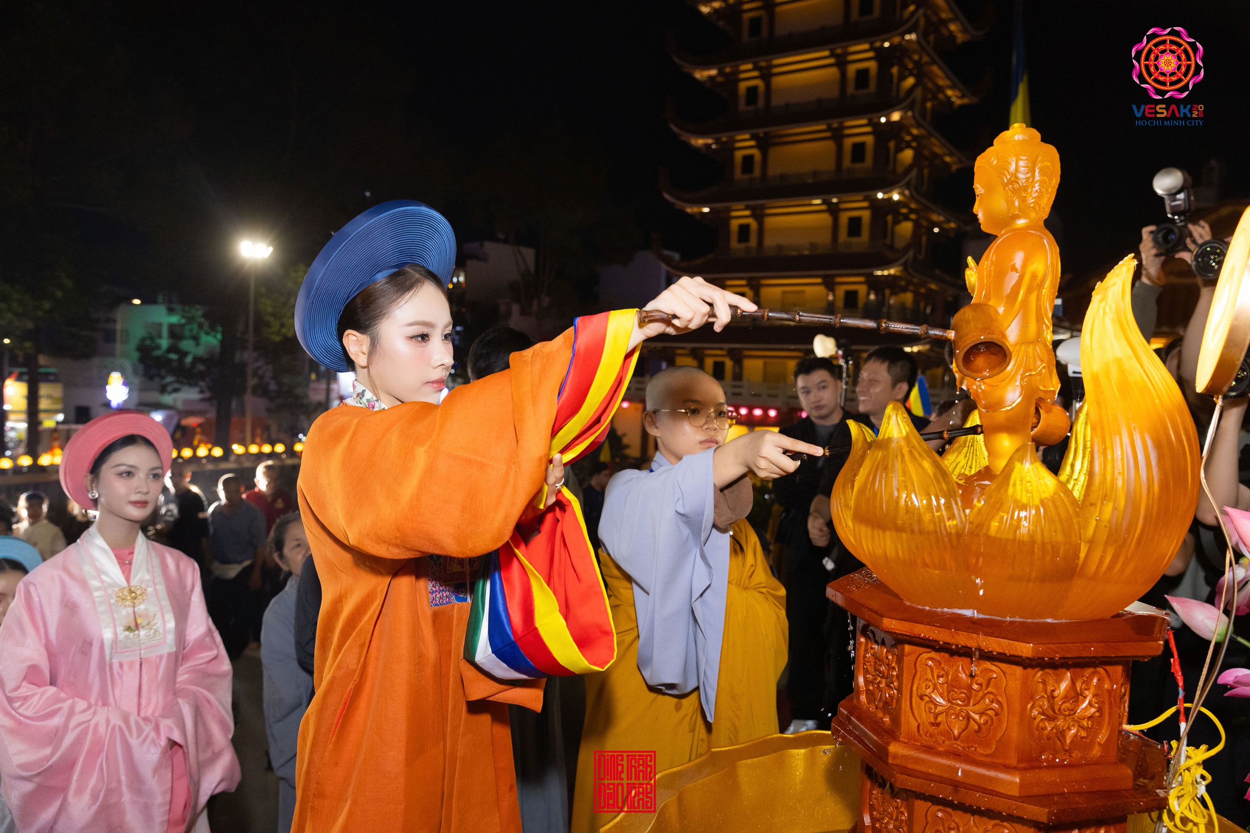Giữa không gian linh thiêng và hàng nghìn phật tử đồng hành, LONA đã thực hiện nghi thức tắm Phật.