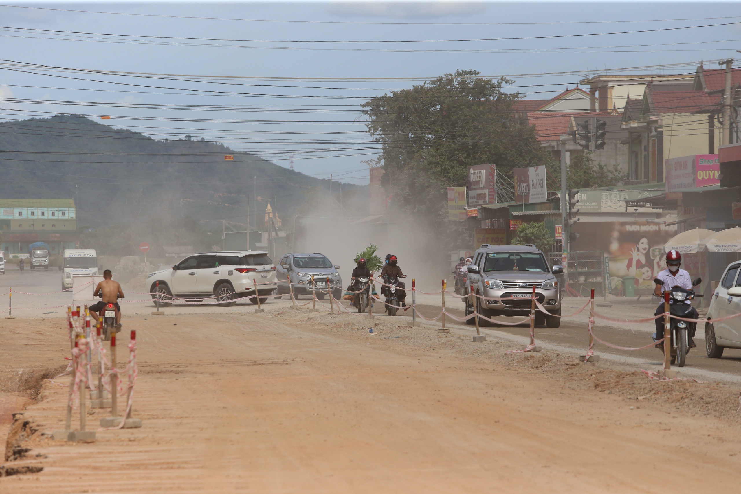 Không những thế, do địa phương không bàn giao được mặt bằng, công trình bị dở dang trong khi phương tiện lưu thông nhiều dẫn đến tình trạng bụi bặm, ảnh hưởng rất lớn đến cuộc sống người dân.